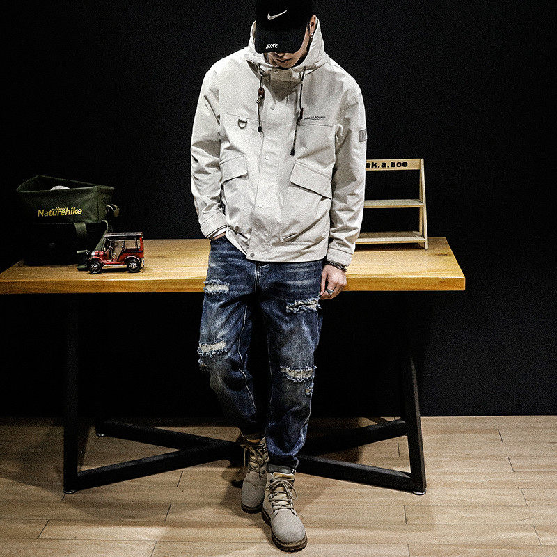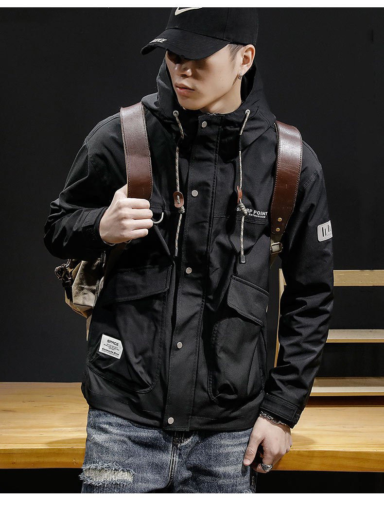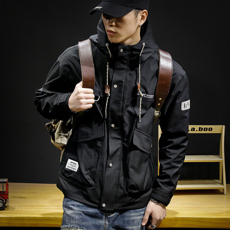 Демисезонная куртка с капюшоном, в американском стиле, оверсайз