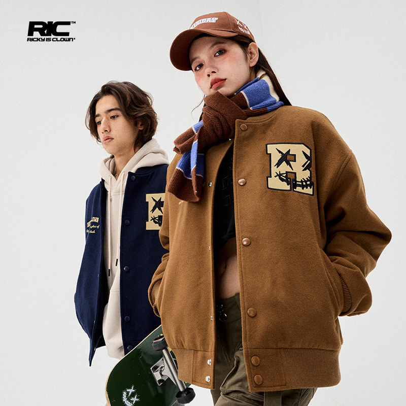 RickyiSclownric Clown, чтобы разорвать смайливое лицо Американская бейсбольная форма мужская 24 зима толщина плюс хлопковая куртка