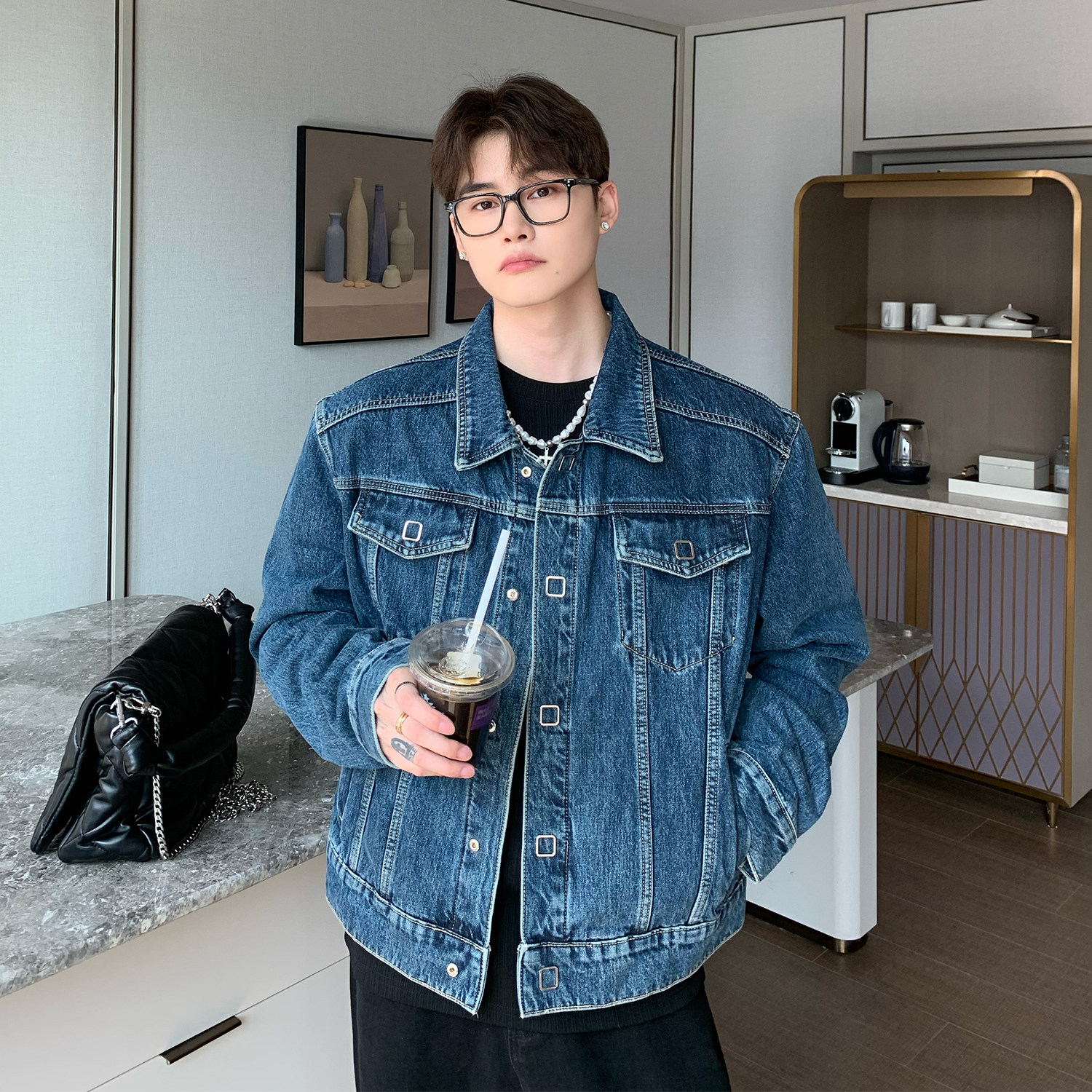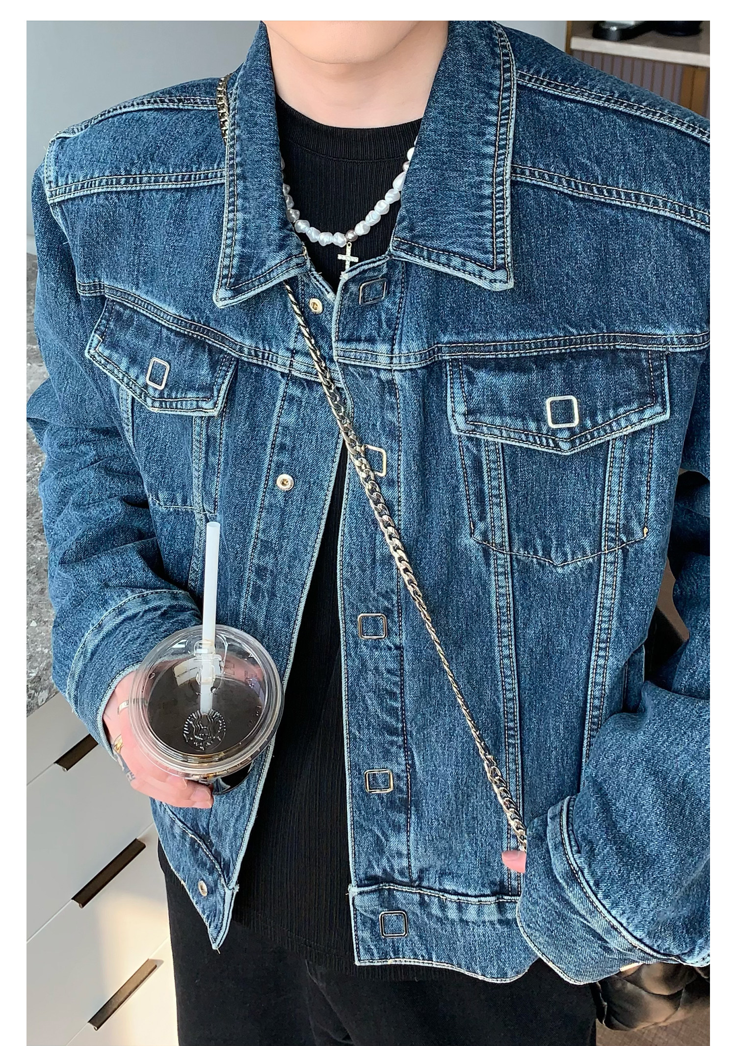 Металлические дизайнерские короткие наплечники, демисезонная ретро джинсовая куртка, тренд сезона, оверсайз