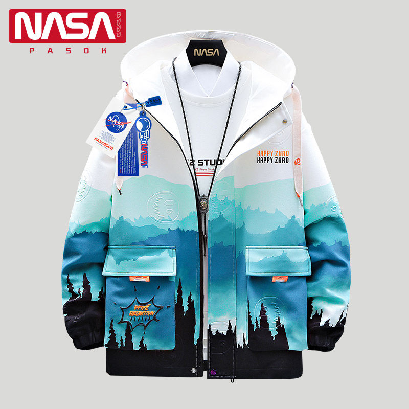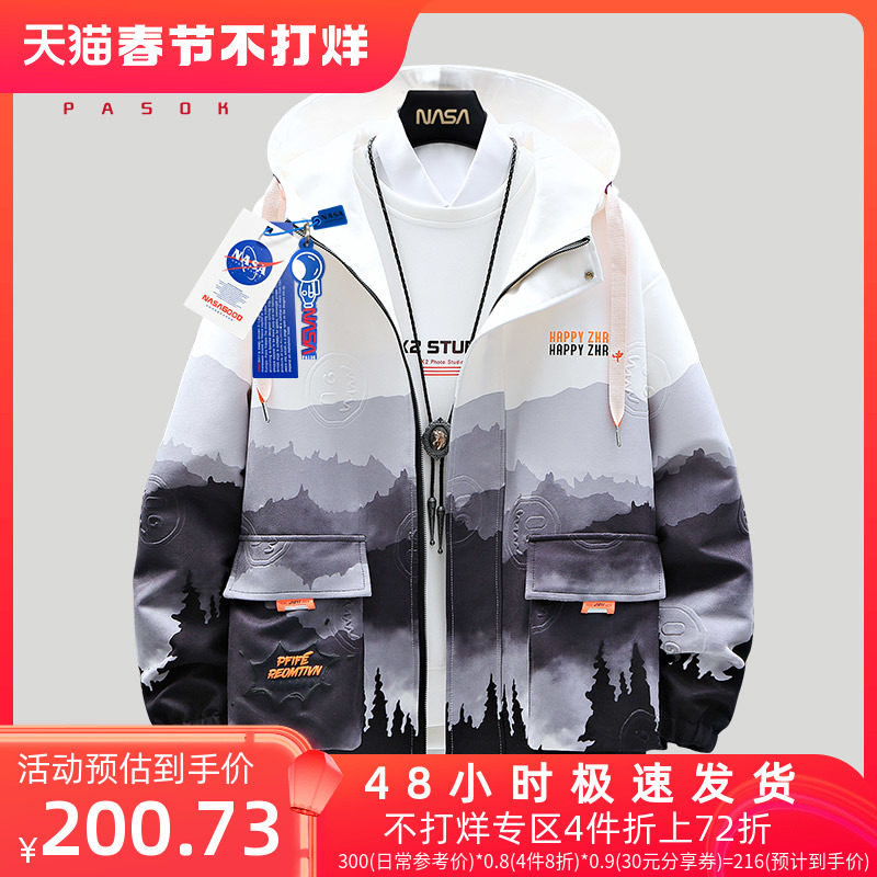 Японская демисезонная куртка с капюшоном для отдыха, градиент, подходит для подростков, большой размер