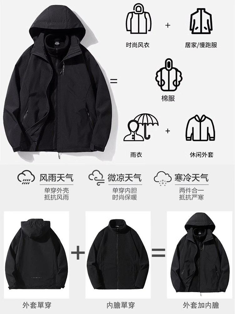 Куртка, съемный бархатный демисезонный вкладыш, «три в одном», в американском стиле