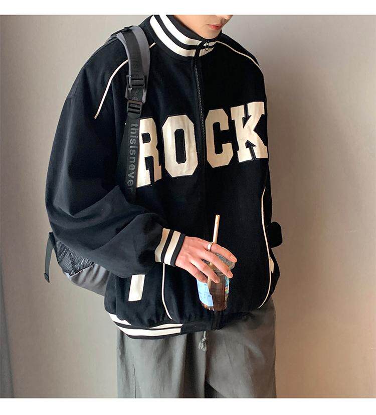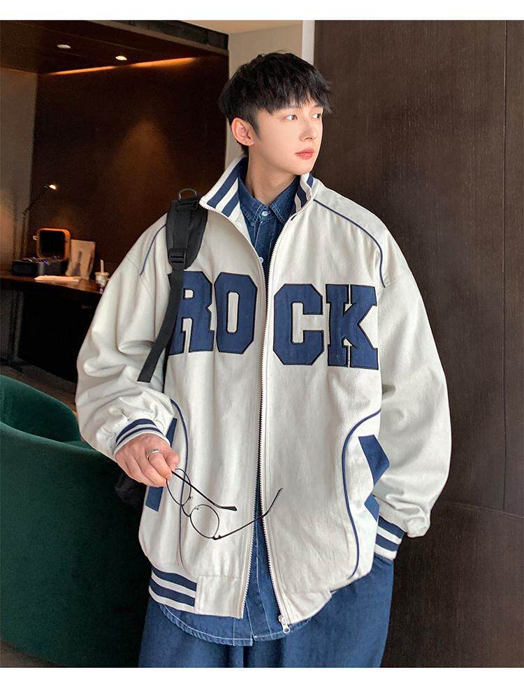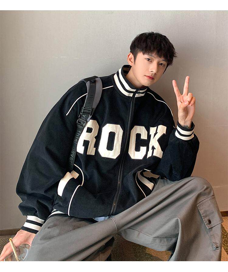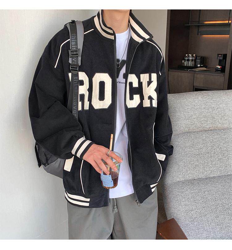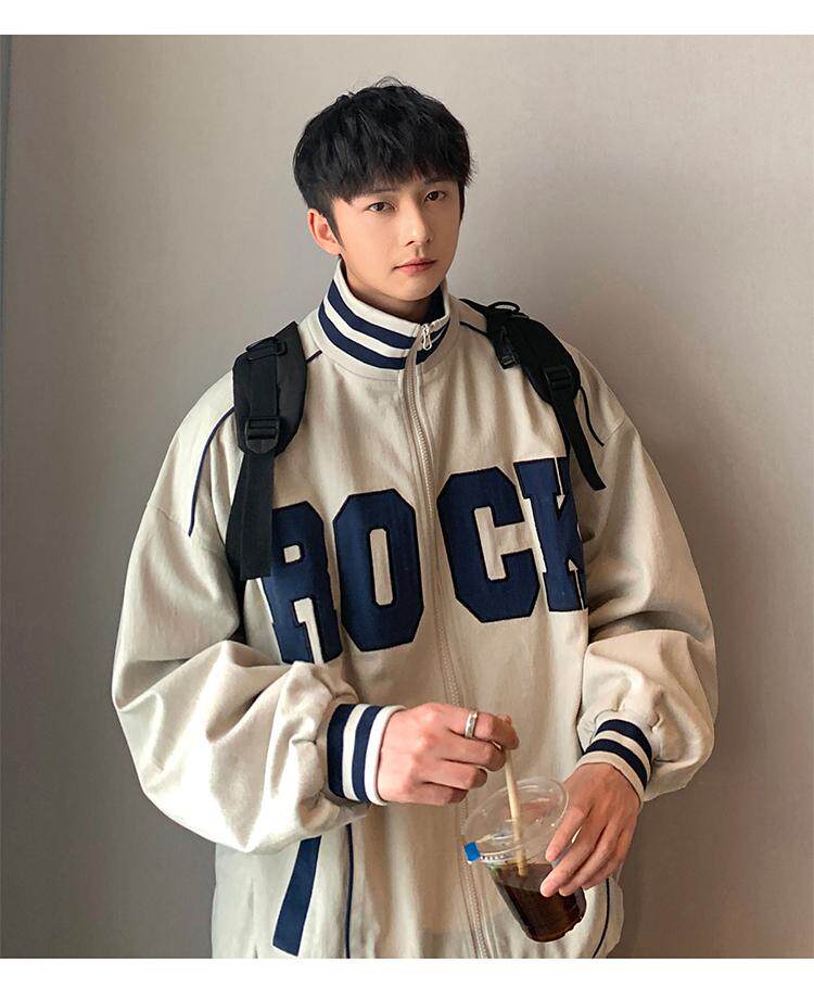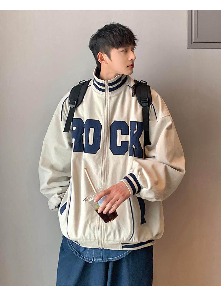 Весна и осенняя модная бренда стенда воротничка мужская хип -хоп красивая куртка с высокой улицей Американская вибрация универсальная одежда
