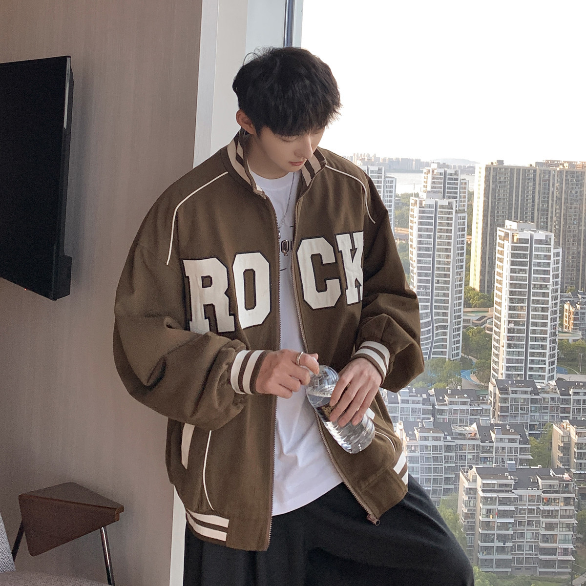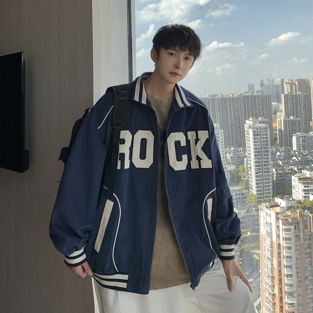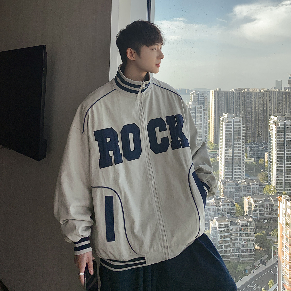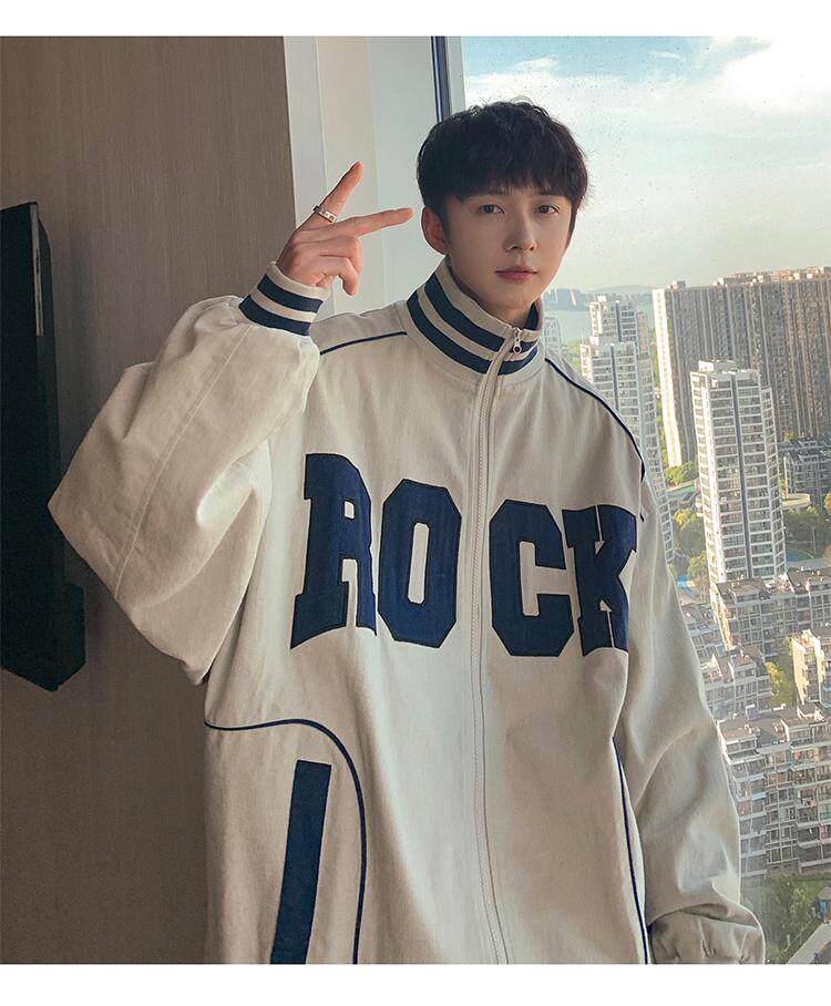 Весна и осенняя модная бренда стенда воротничка мужская хип -хоп красивая куртка с высокой улицей Американская вибрация универсальная одежда