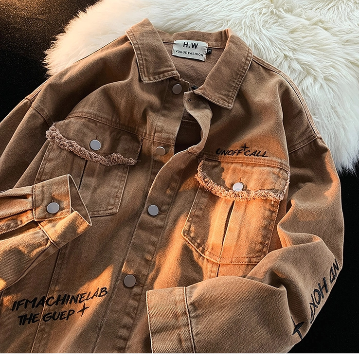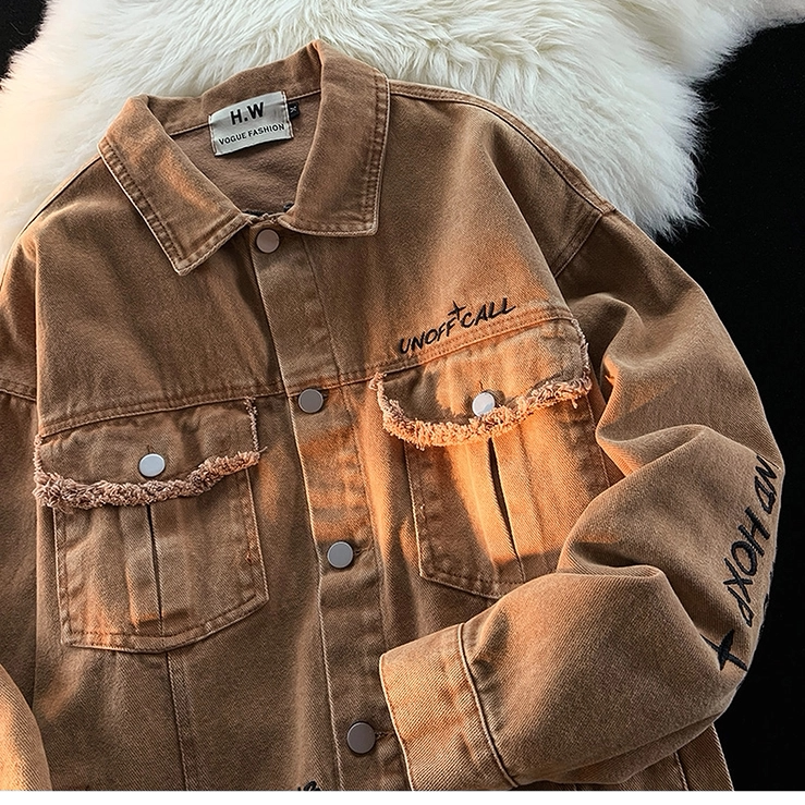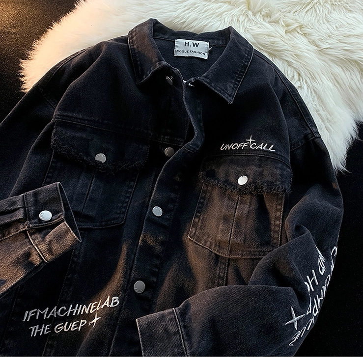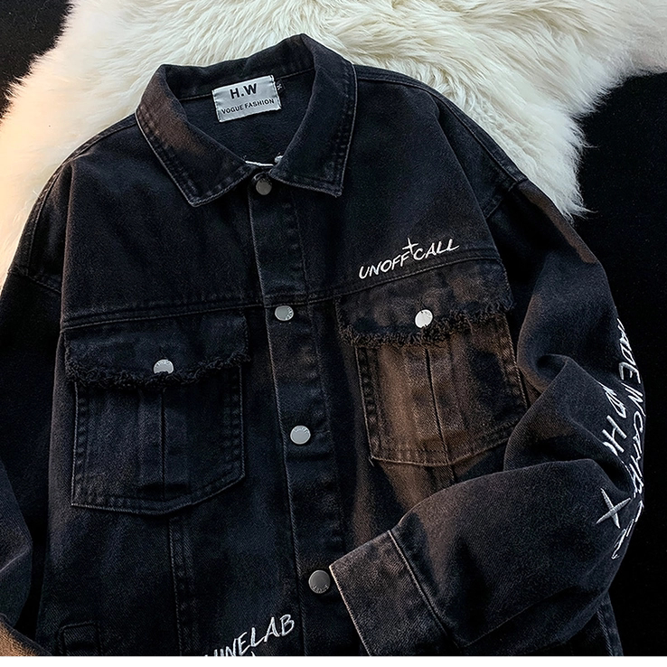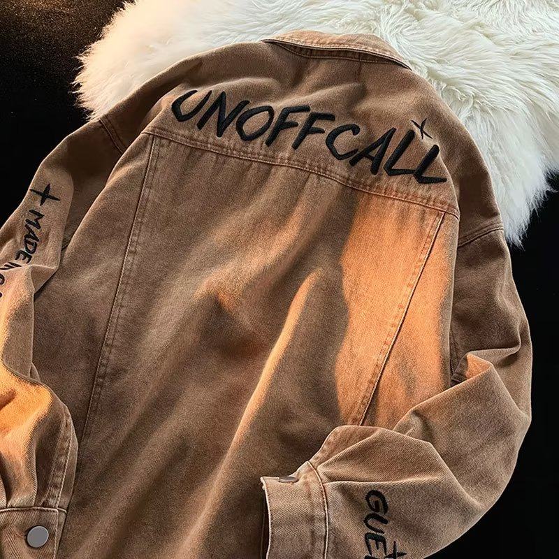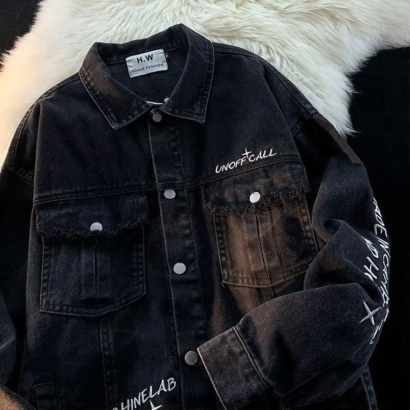 Ретро осенняя джинсовая куртка, в американском стиле, с вышивкой, оверсайз, для влюбленных