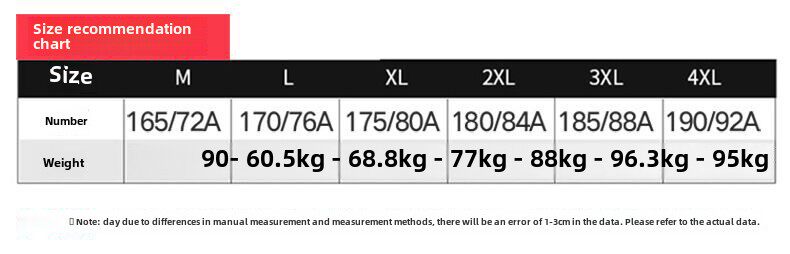 | Размер: | M рекомендуется [90-110 Catties], L Рекомендуется [111-125 Catties], Xl рекомендуется [126-140 Catties], 2xl рекомендуется [141-160 Catties], 3xl рекомендуется [161-175 Catties], 4xl рекомендуется [176-190 Catties] |
