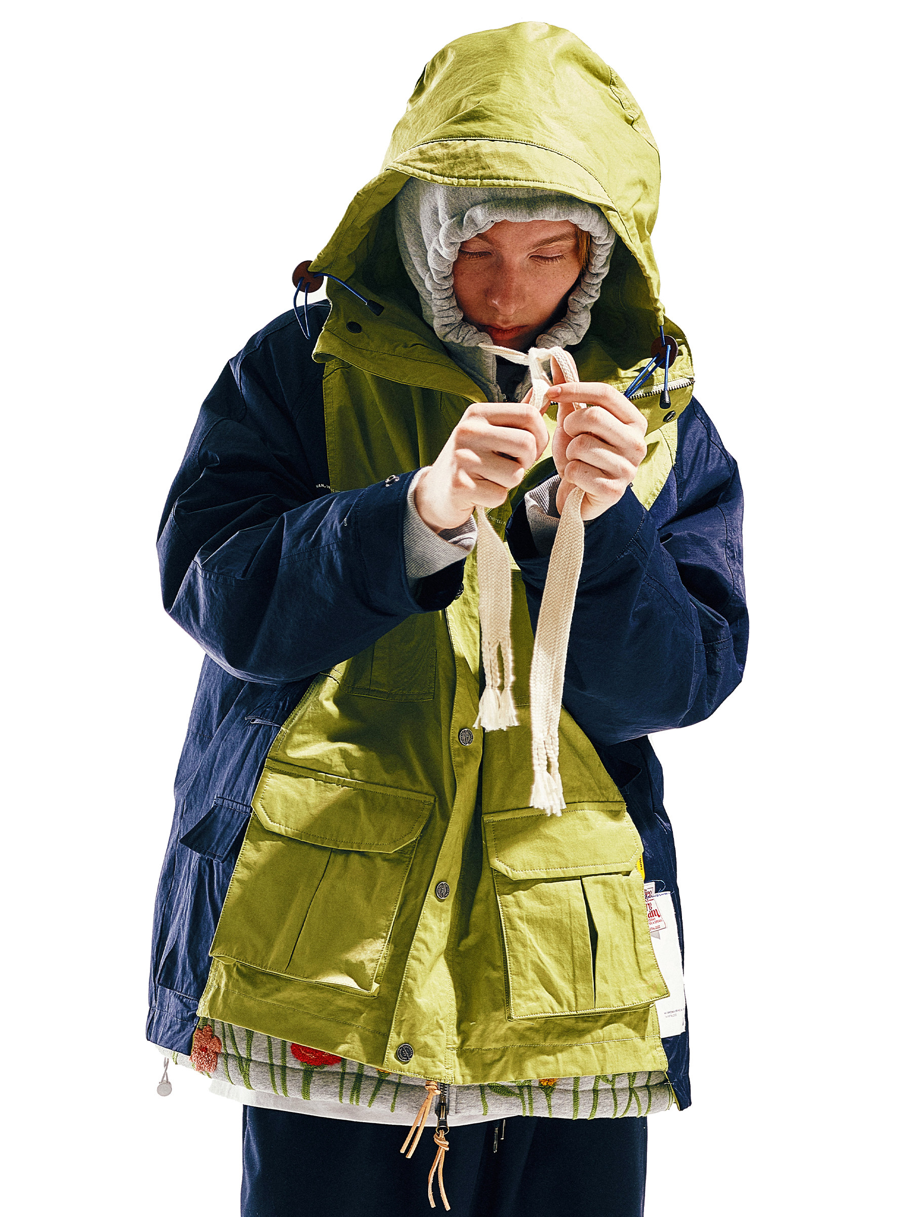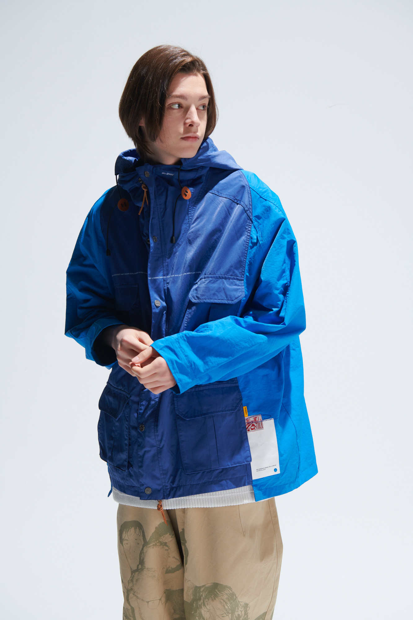 Eafinetal.eafins Контрастные цвета нерегулярные строчки дизайн наружной ветропроницаемой куртка с капюшоном с капюшоном