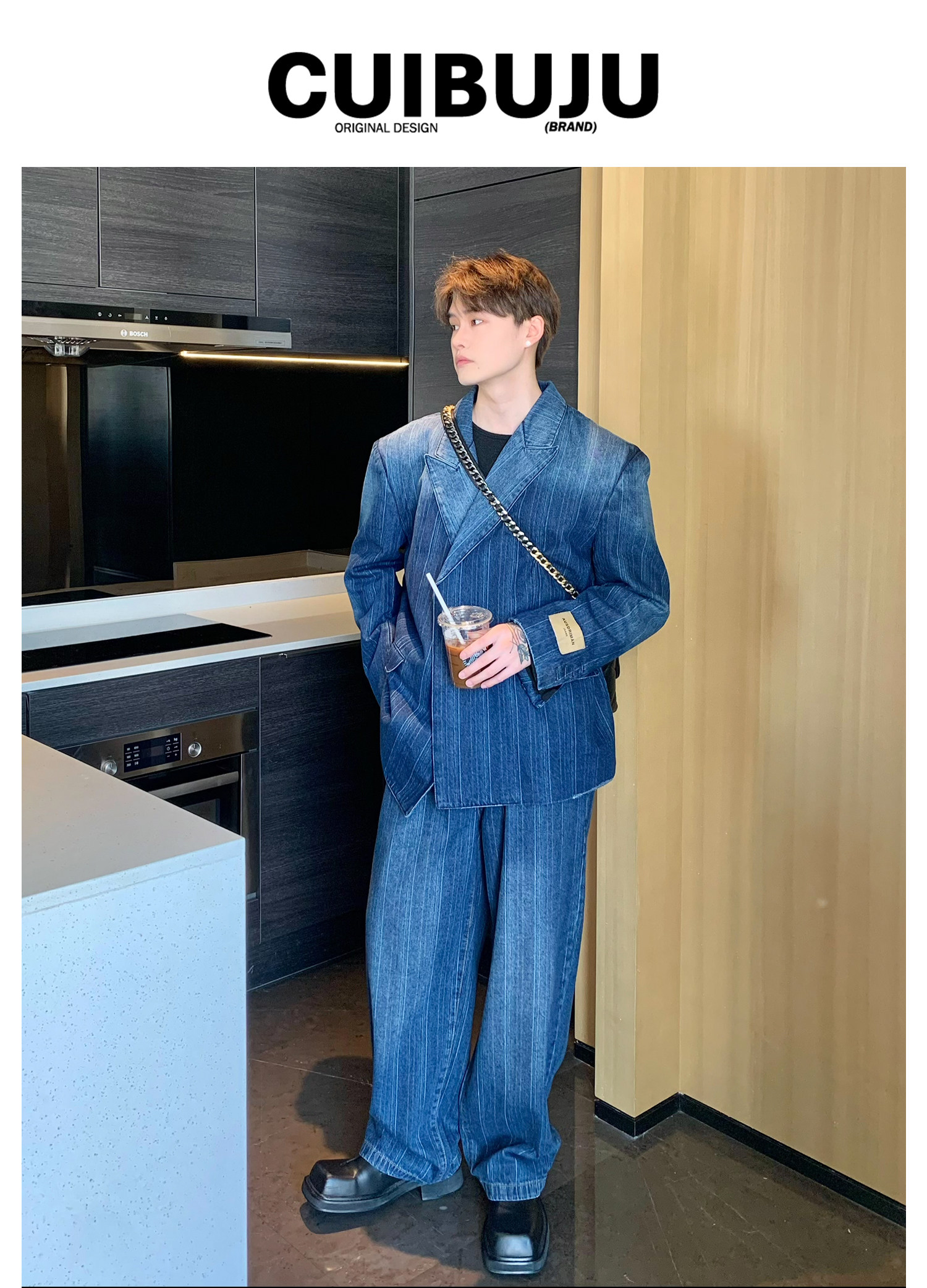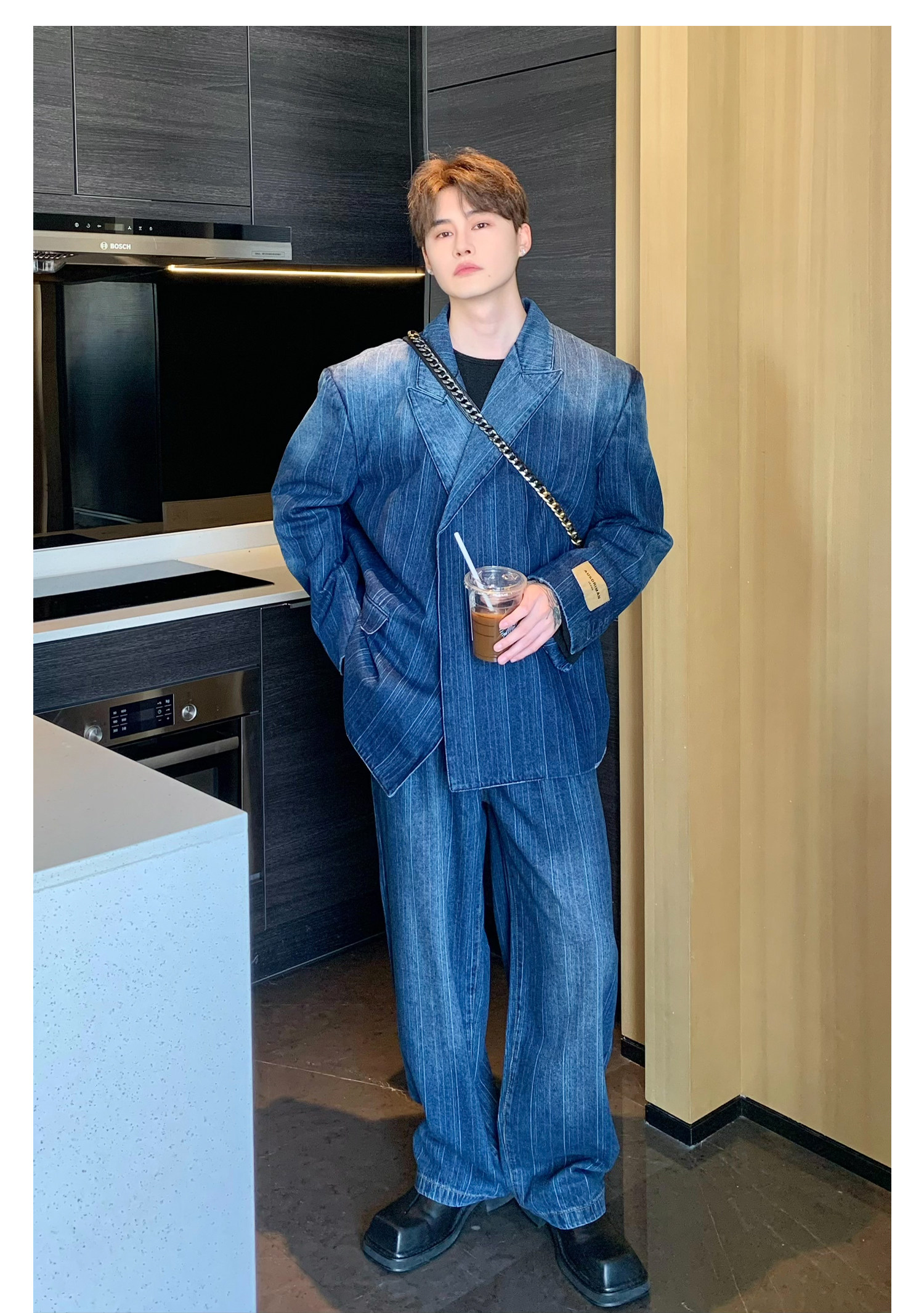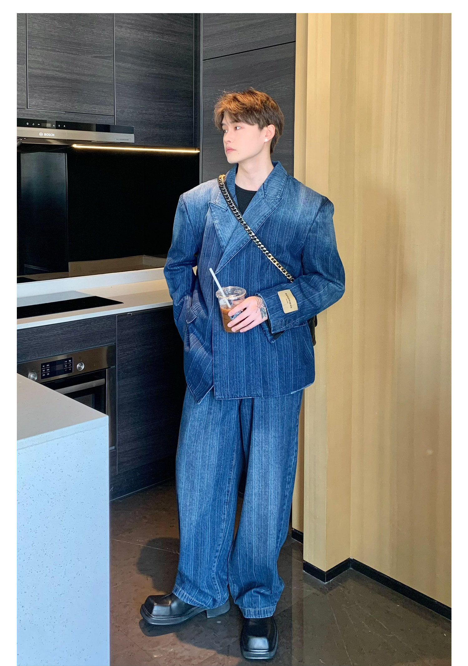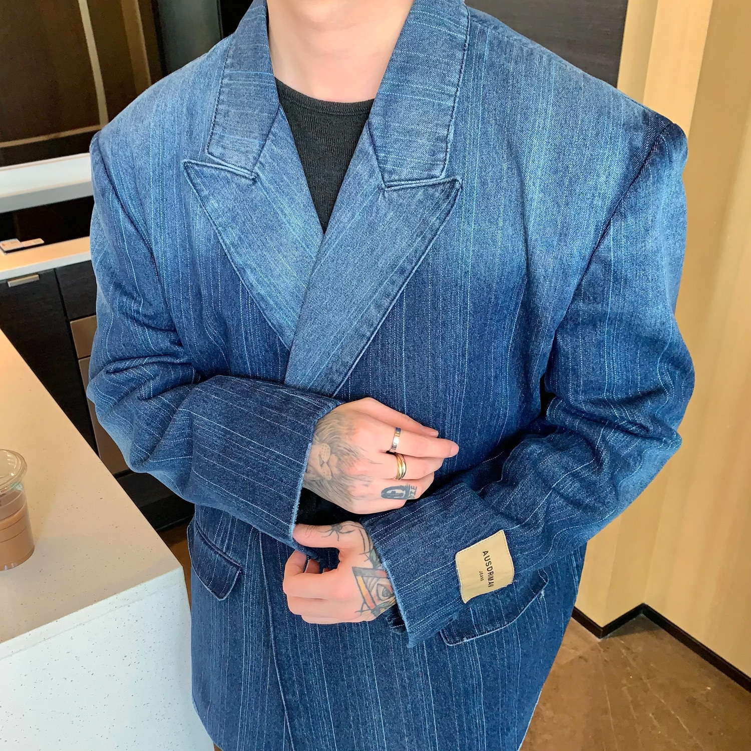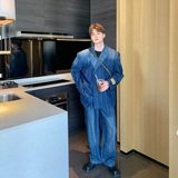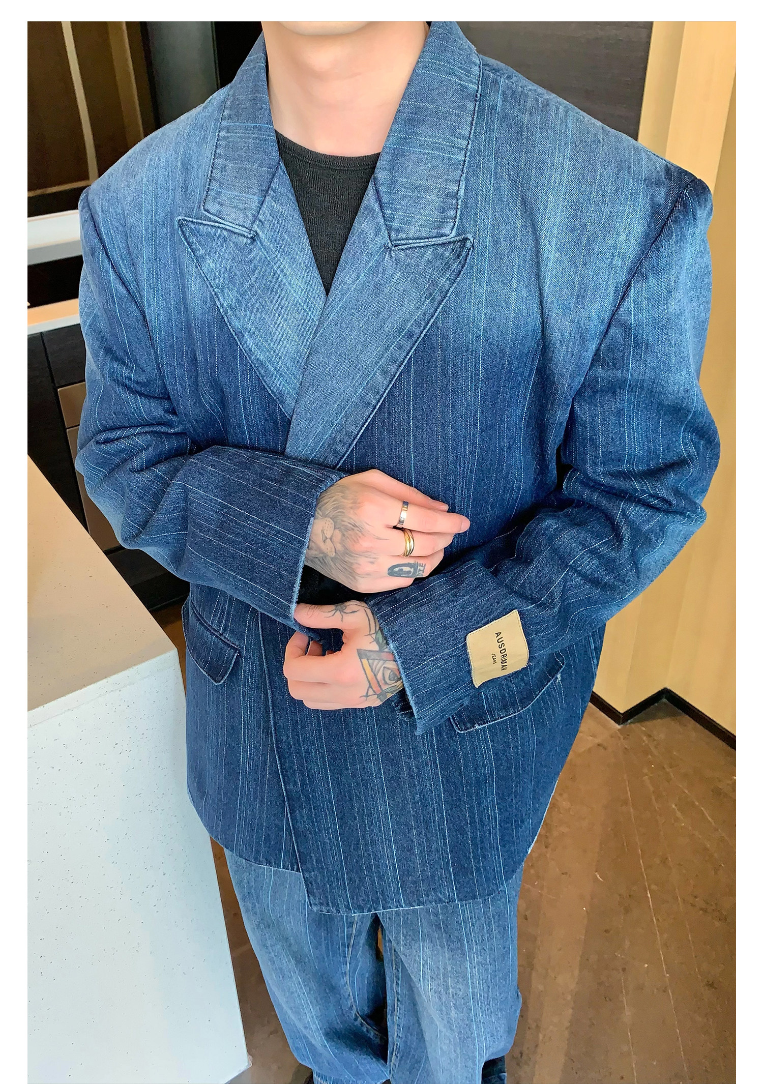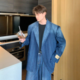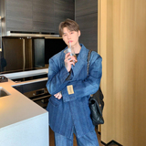 Джинсовые наплечники, демисезонный комплект, ретро брендовый костюм, изысканный стиль, оверсайз