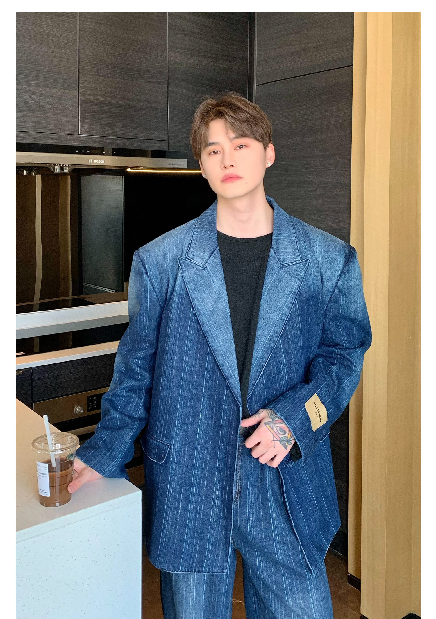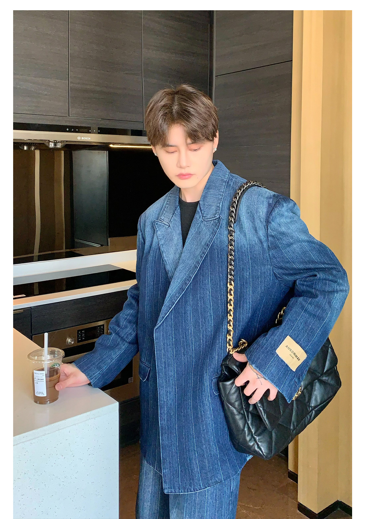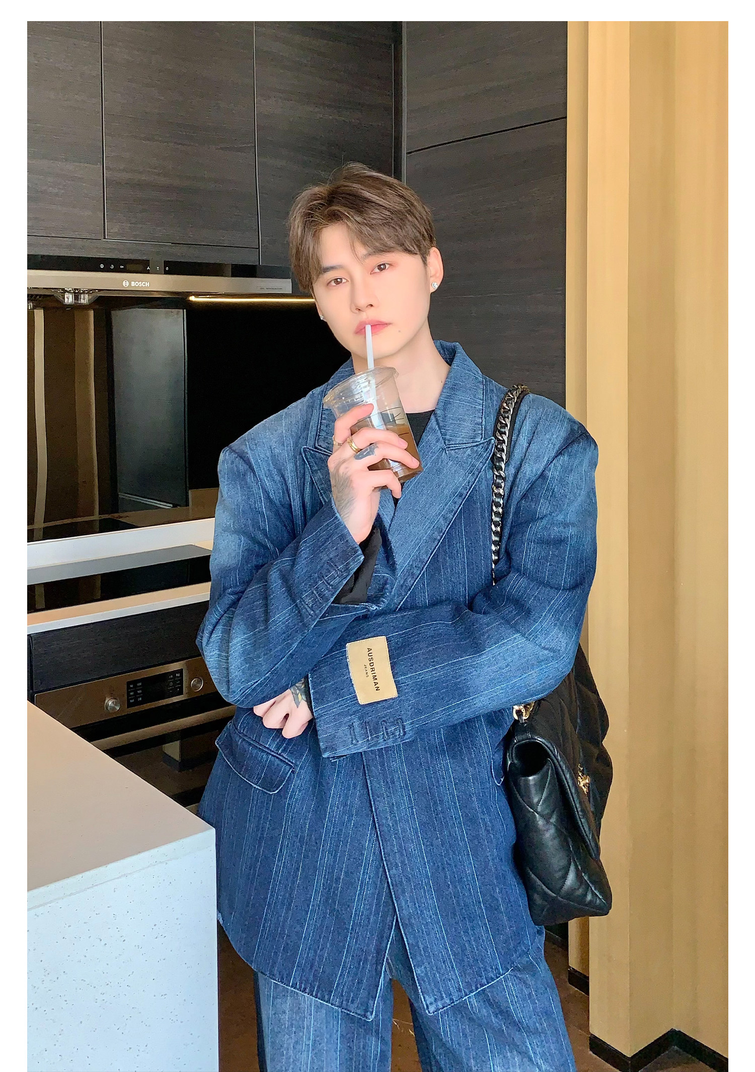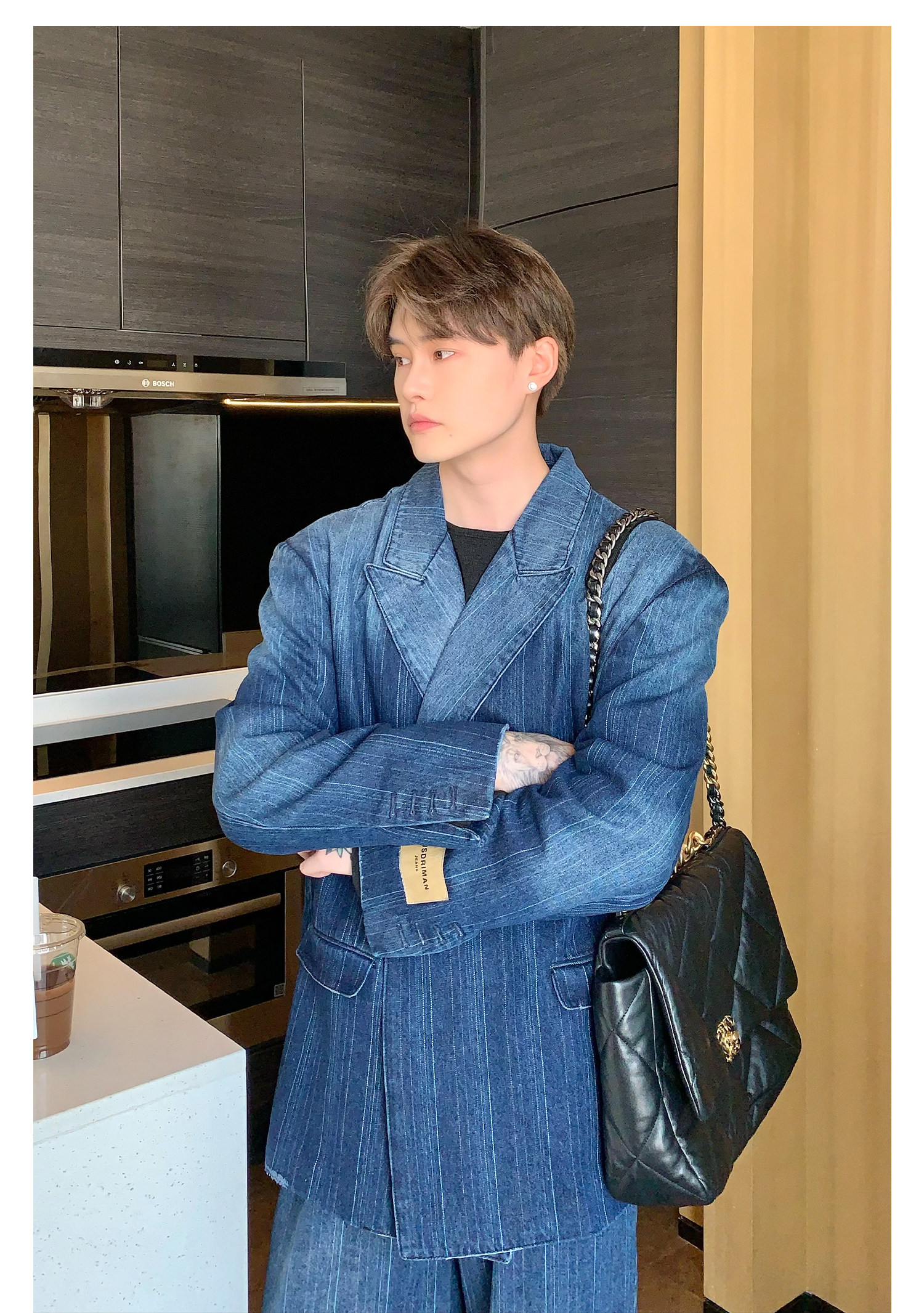 Джинсовые наплечники, демисезонный комплект, ретро брендовый костюм, изысканный стиль, оверсайз