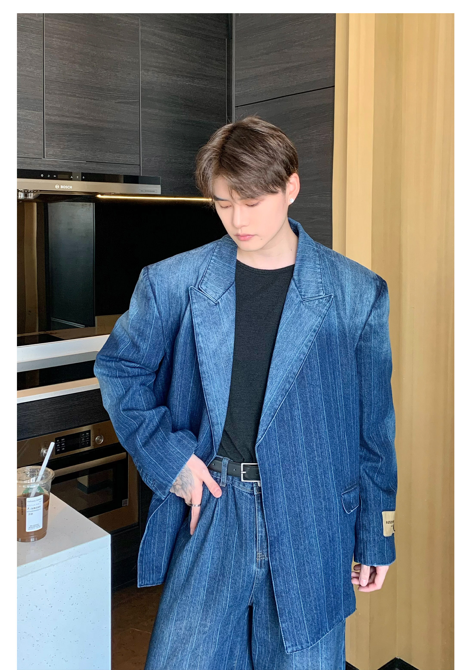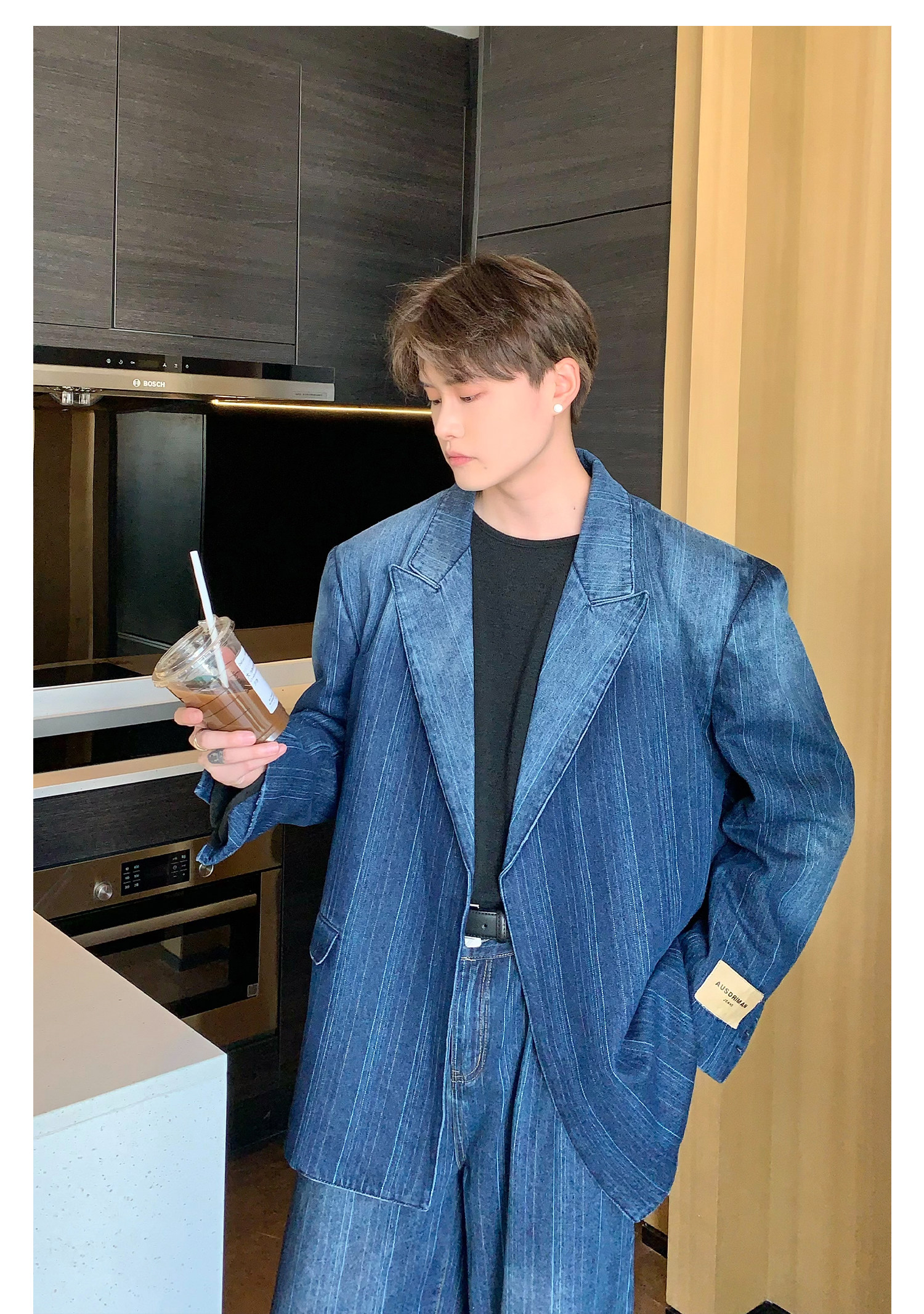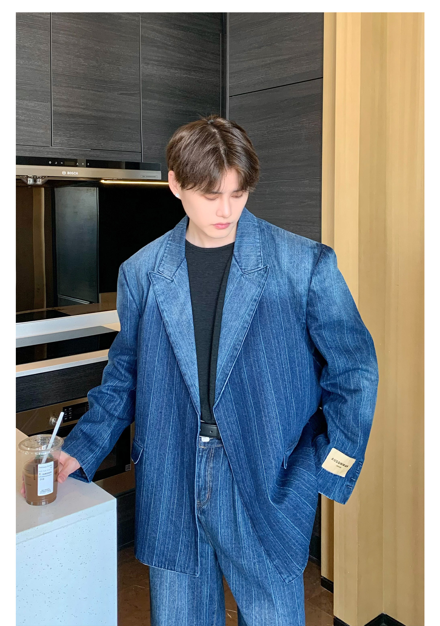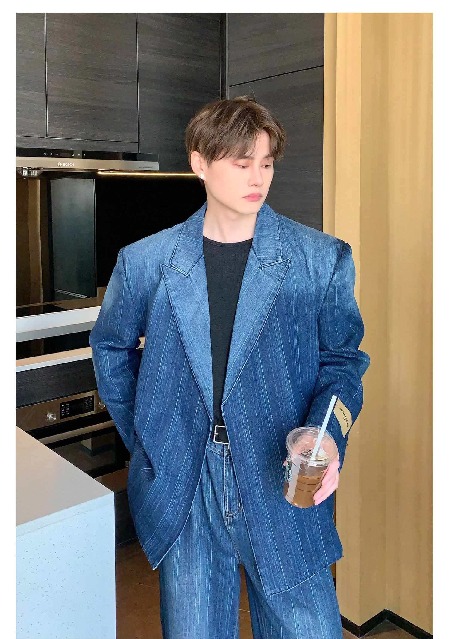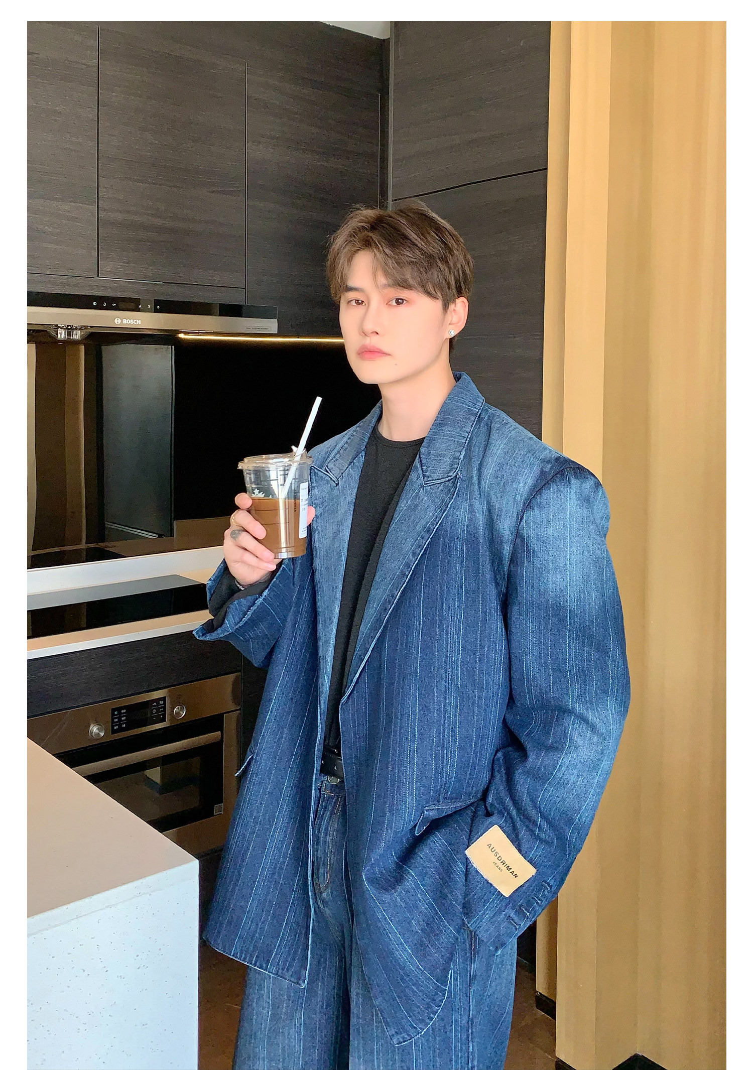 Джинсовые наплечники, демисезонный комплект, ретро брендовый костюм, изысканный стиль, оверсайз