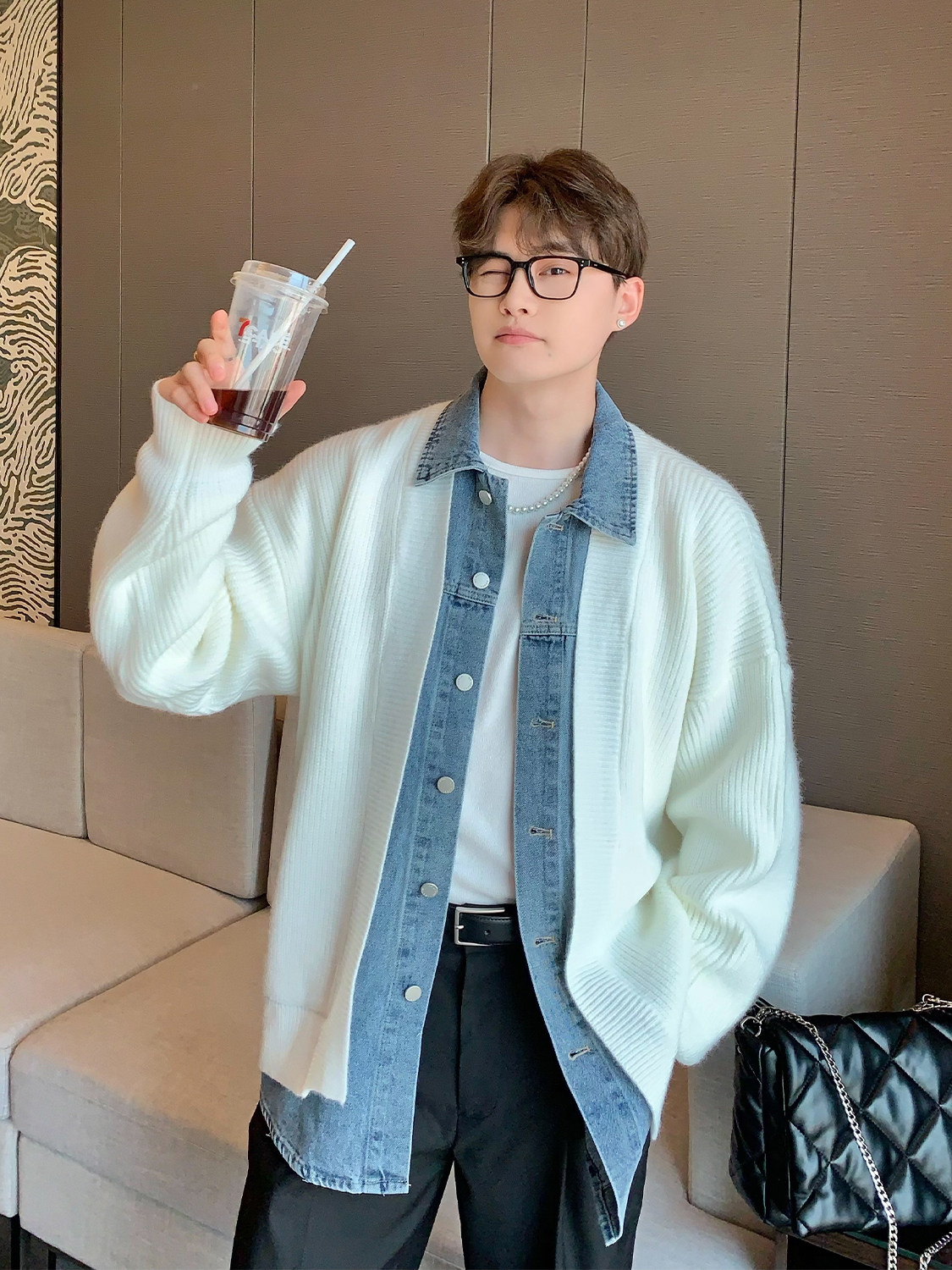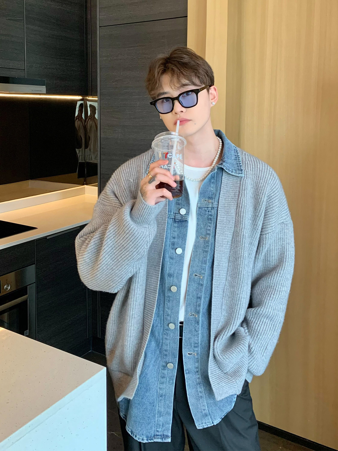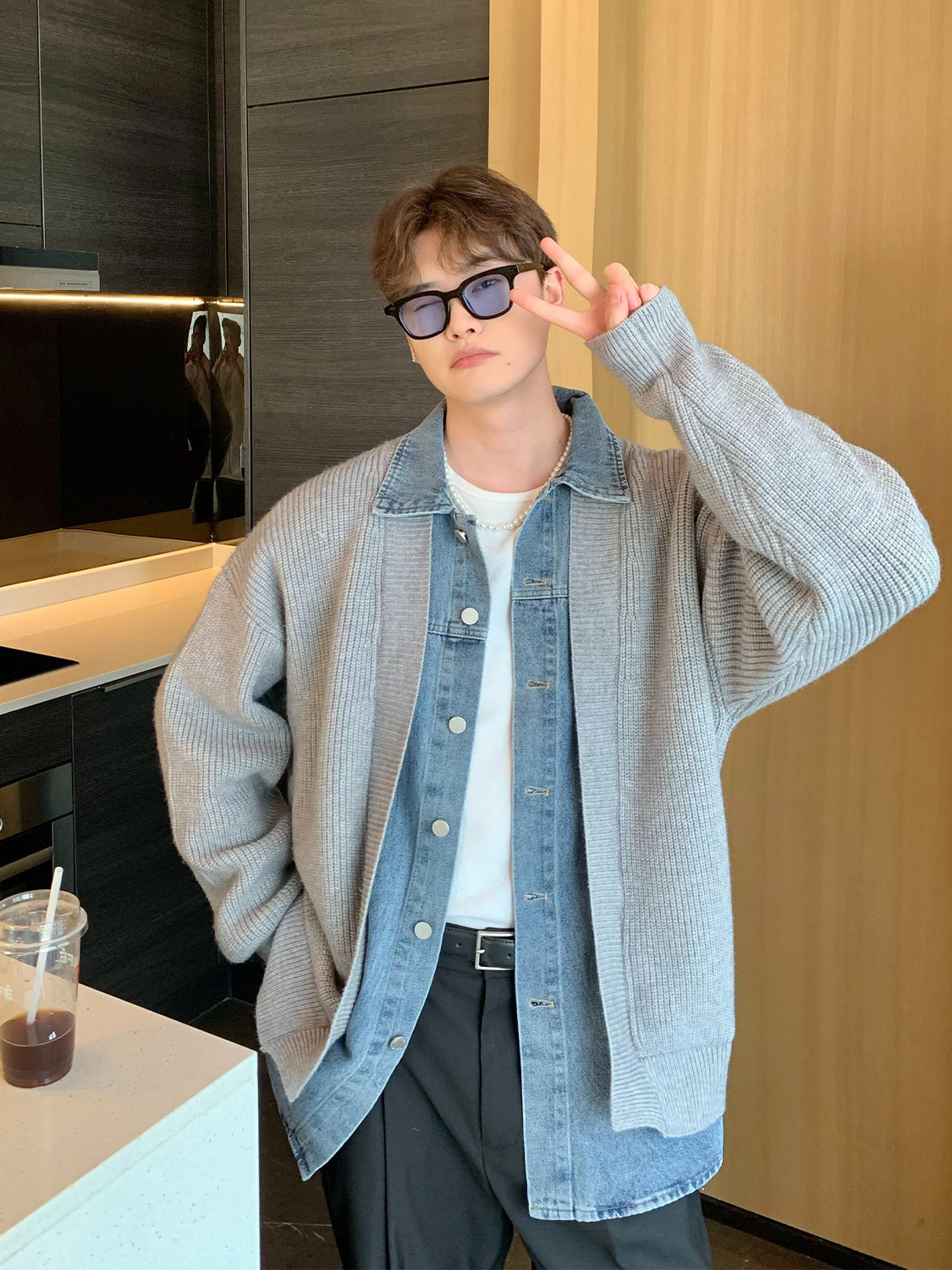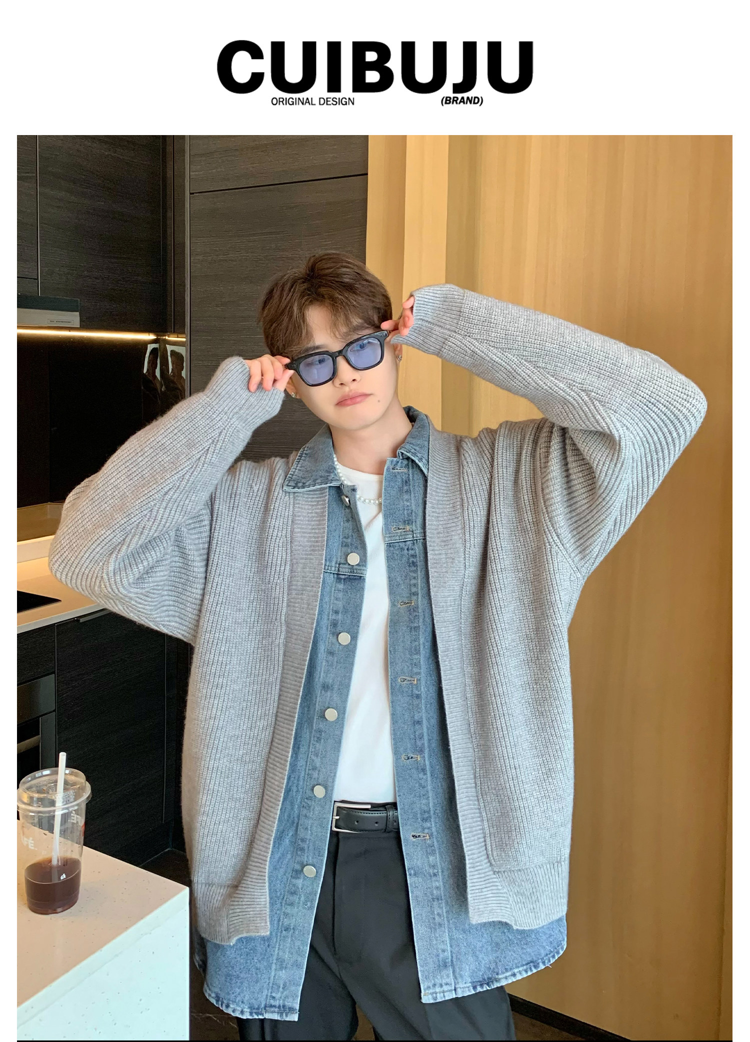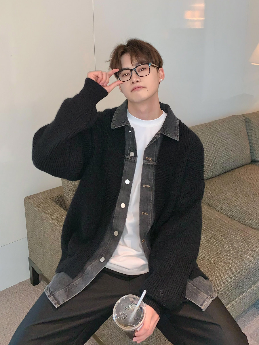 Дизайнерский комплект, кардиган, свитер для отдыха, джинсовая куртка, тренд сезона, оверсайз, в корейском стиле
