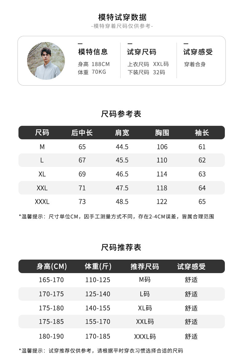 | Размер: | Рекомендация 170/м (110-125 кот), 175/L рекомендуется (125-140 кот), 180/xl рекомендуется (140-155 кот), 185/2xl рекомендуется (155-170 Catties), 190/3xl рекомендуется (170-185 кот |