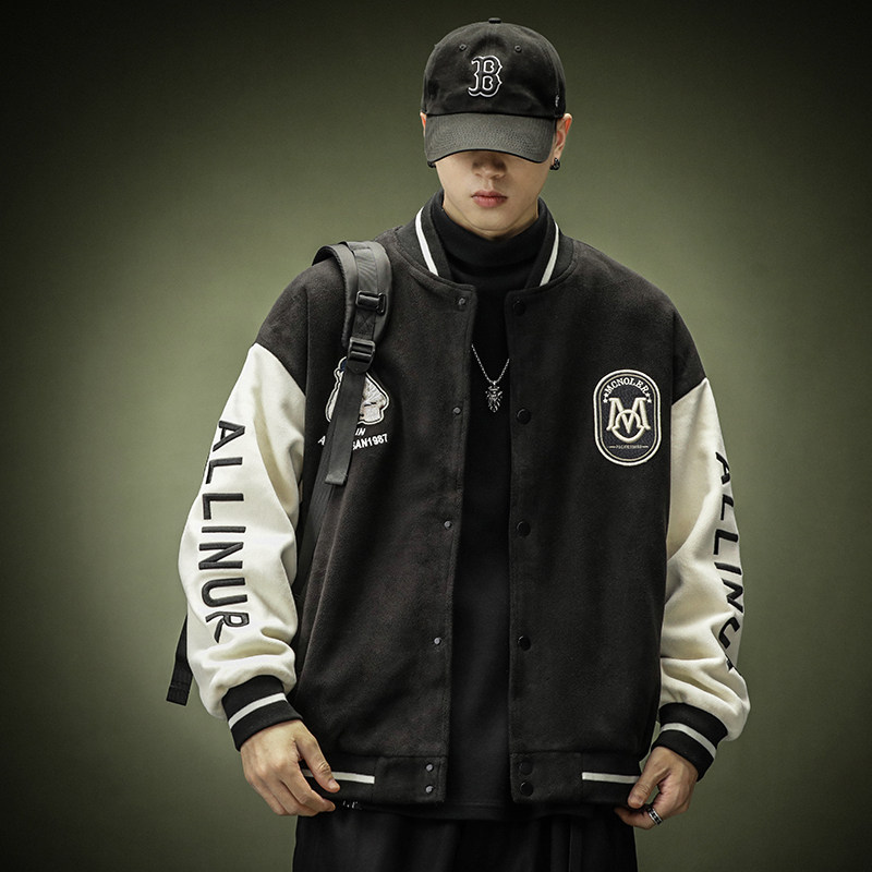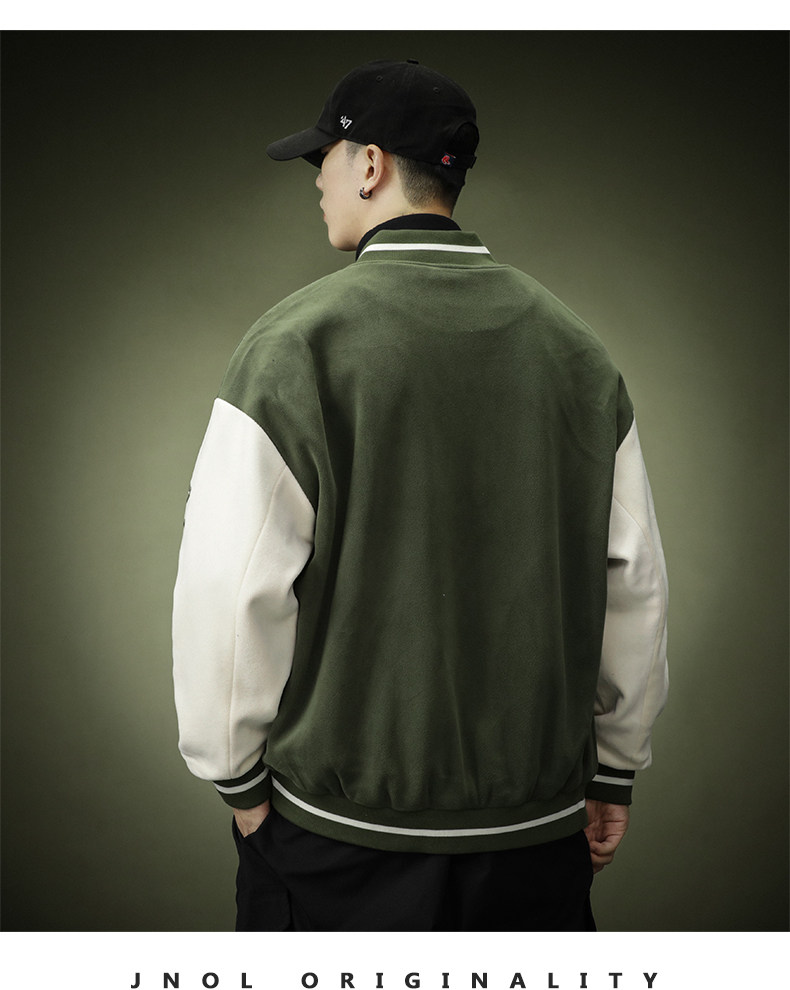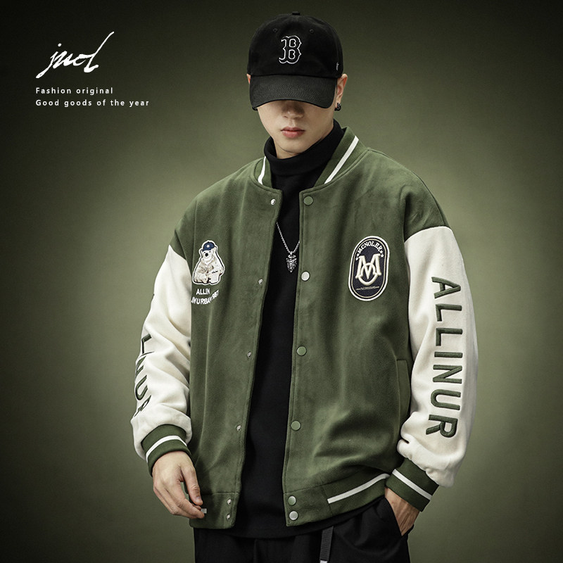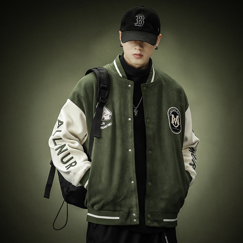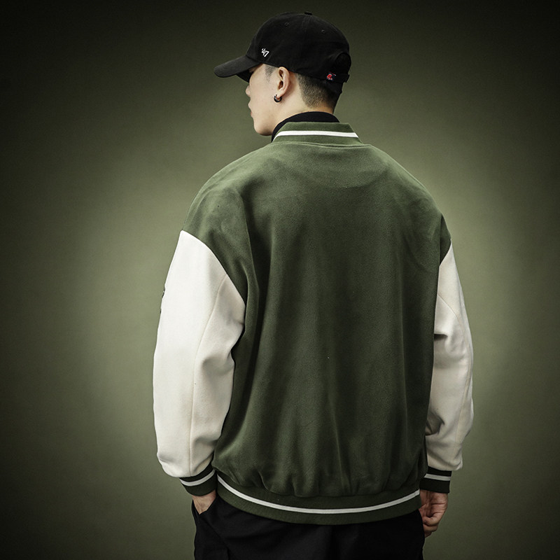 Зеленая бархатная бейсбольная демисезонная форма для отдыха, спортивная куртка, в американском стиле, оверсайз