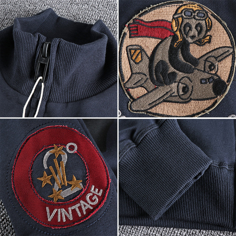 Ретро осенняя трикотажная трендовая куртка, толстовка для отдыха с молнией, в американском стиле, с вышивкой