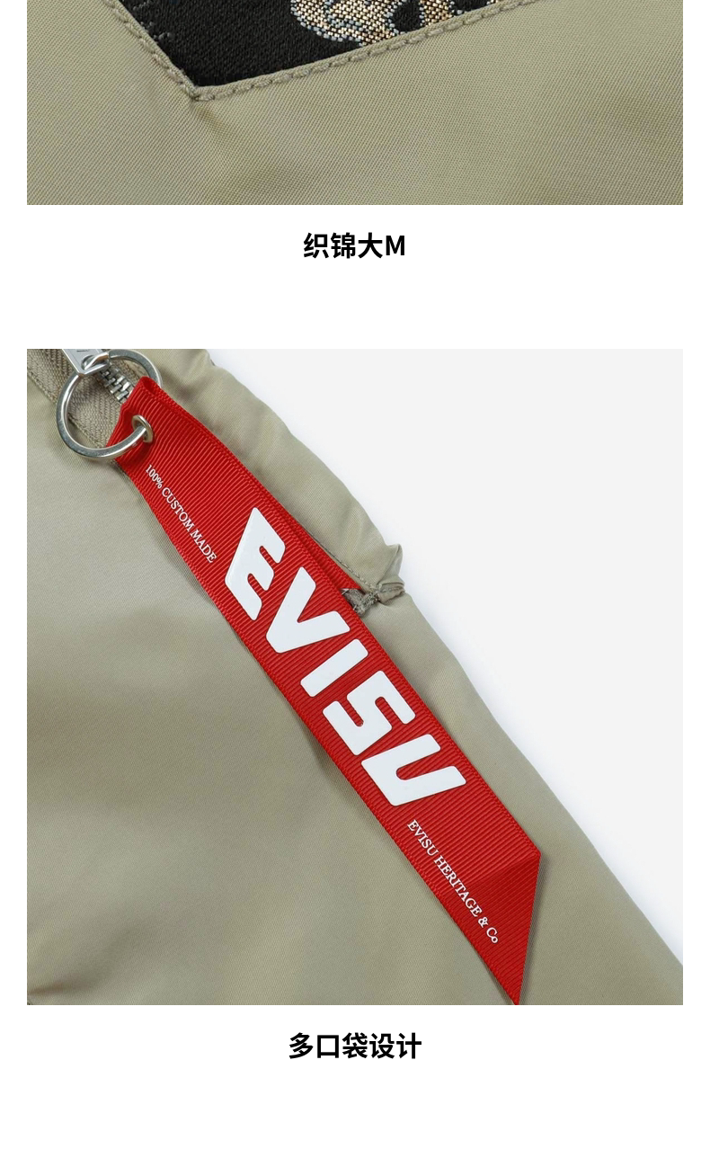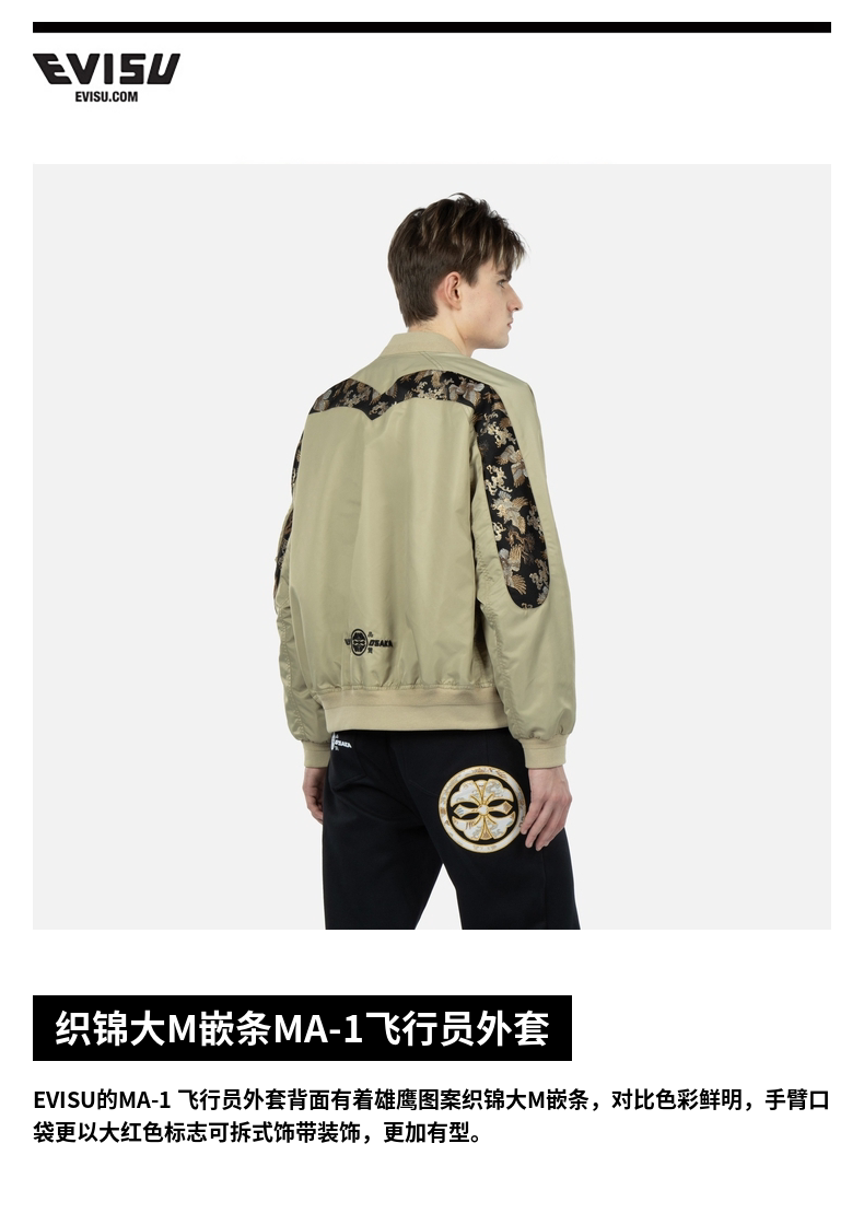 Мужская модная куртка-бомбер EVISU с большой вставкой M и бейсбольным воротником 2ESHTM3JK105RXNY