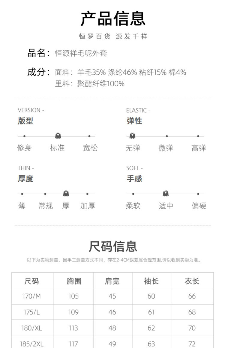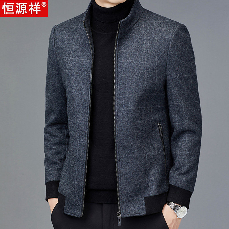 恒源祥 Демисезонная куртка, шерстяное удерживающее тепло мужское шерстяное пальто, увеличенная толщина