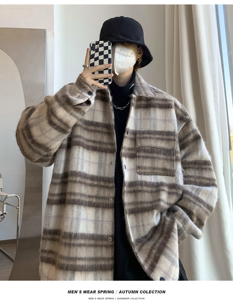Мужская осенняя демисезонная японская шерстяная куртка для отдыха, в стиле Шанель, стиль, оверсайз