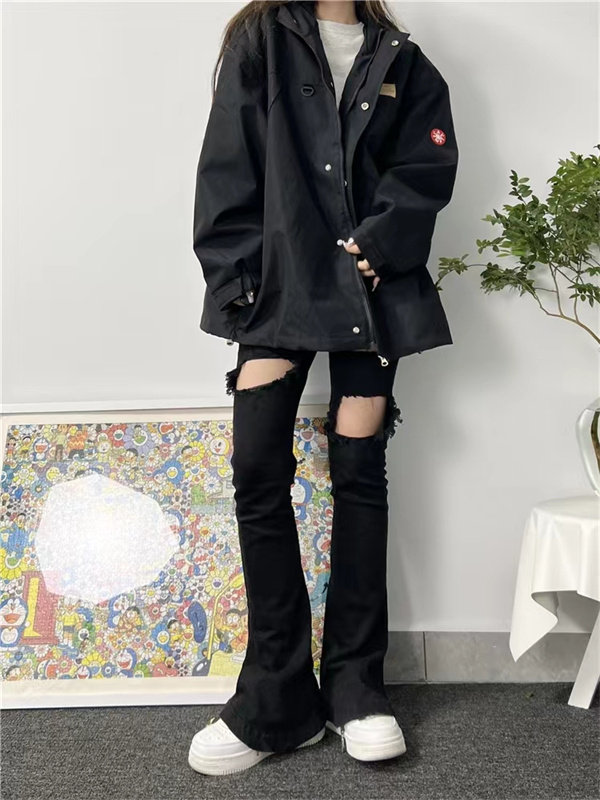 Трендовая куртка с капюшоном, оверсайз, с вышивкой, подходит для подростков
