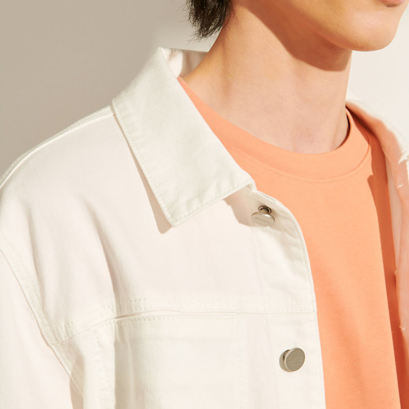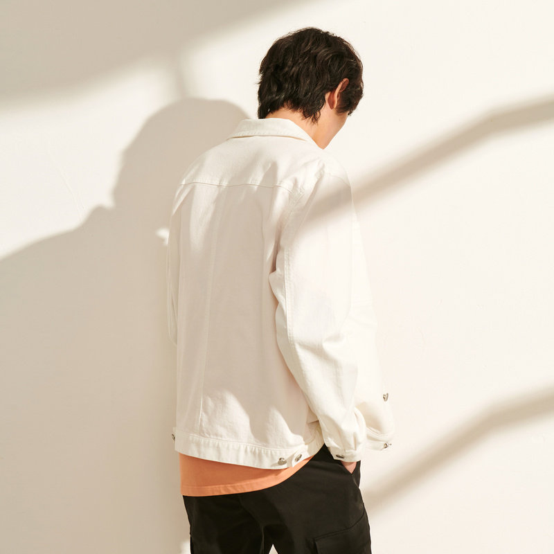 Летняя белая джинсовая мужская тонкая куртка для отдыха, облегающий крой