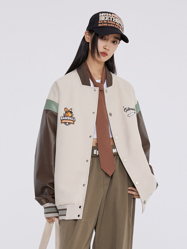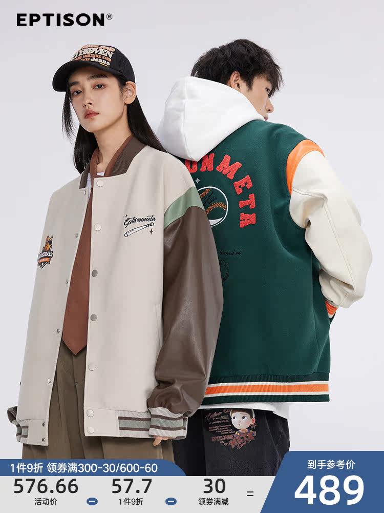 Eptison, весенний новый продукт, сращивание контрастных цветов, флокированная молодежная повседневная бейсбольная куртка для колледжа, красивая модная куртка