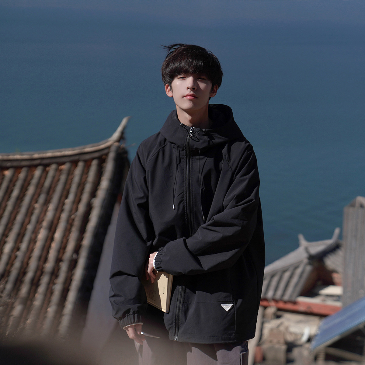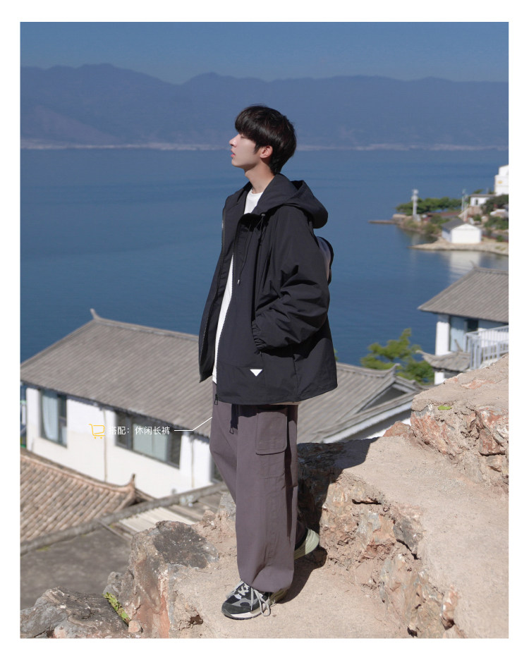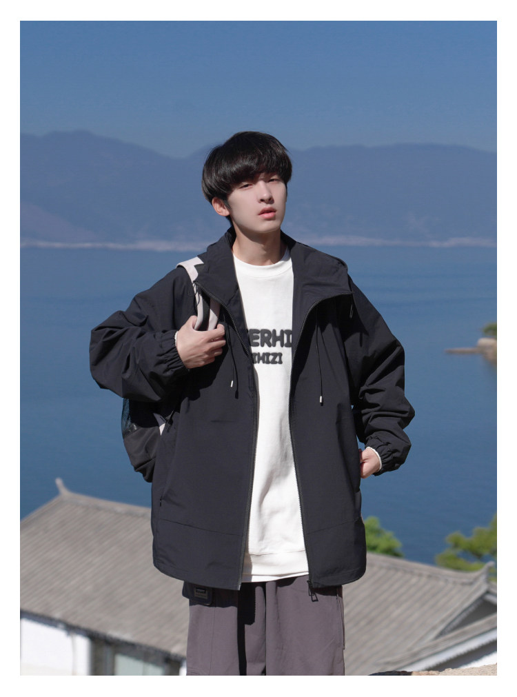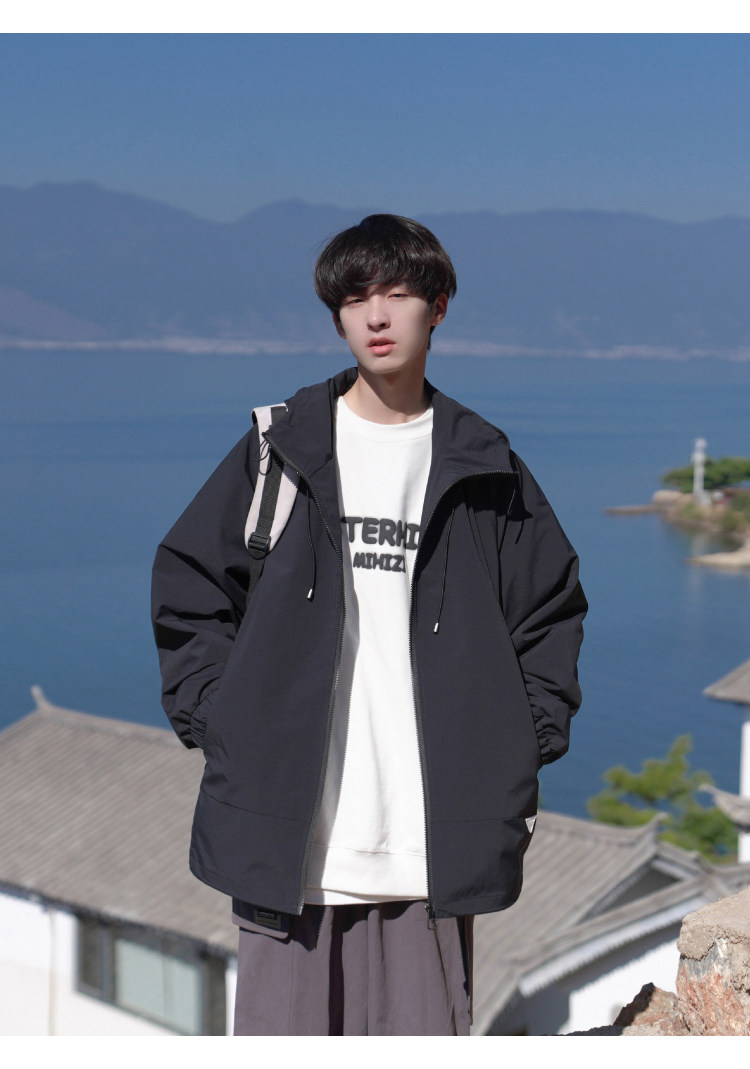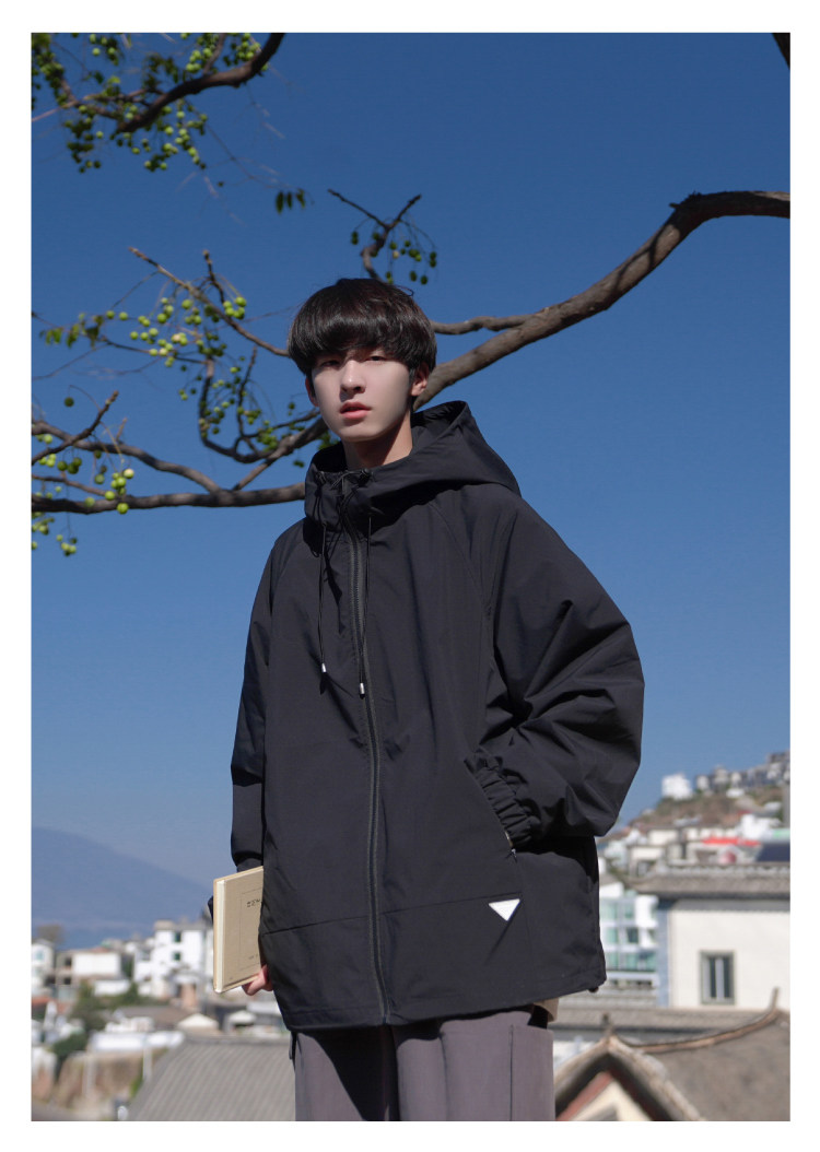 Осенняя черная универсальная дорожная куртка с капюшоном, подходит для подростков