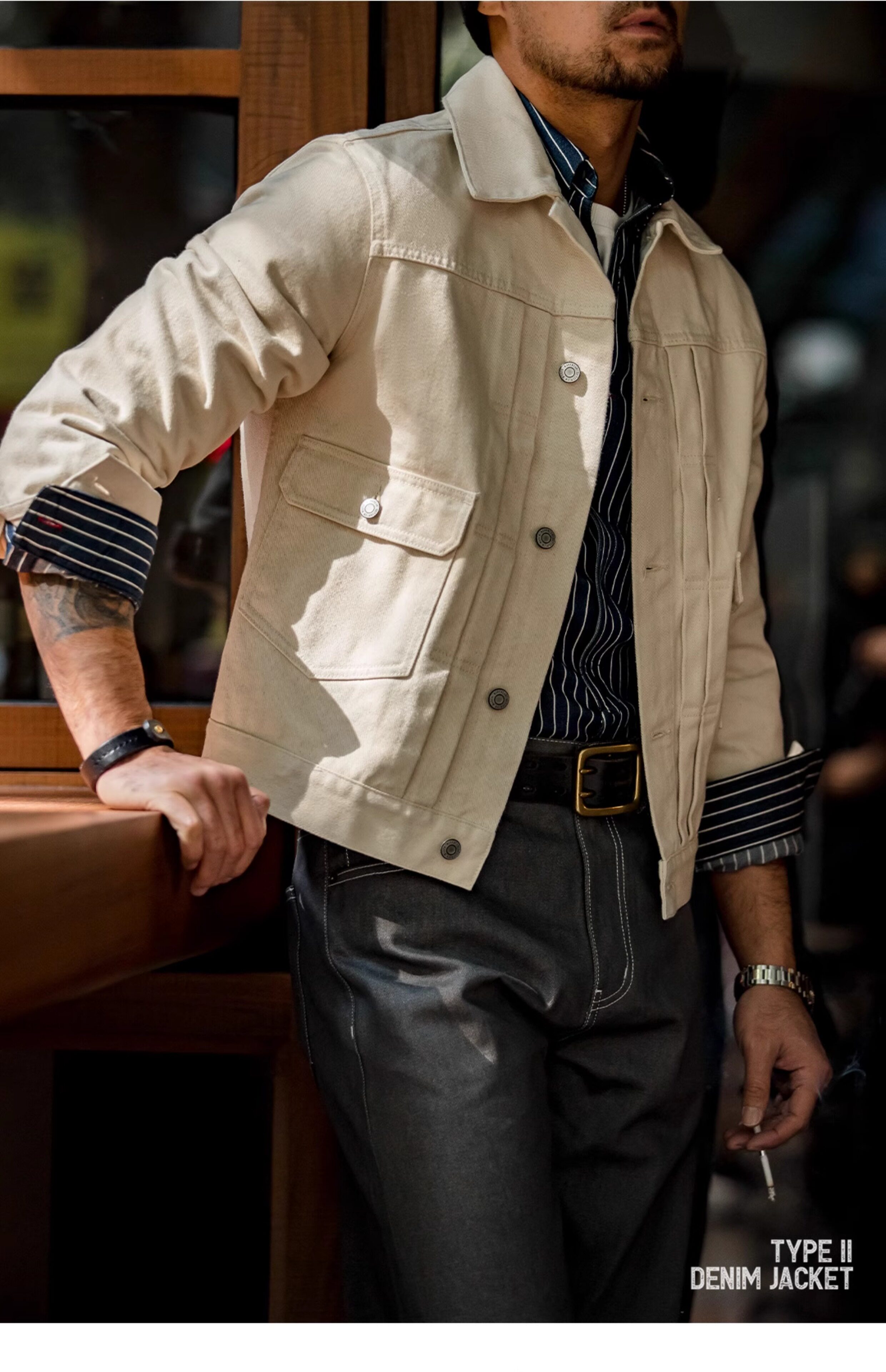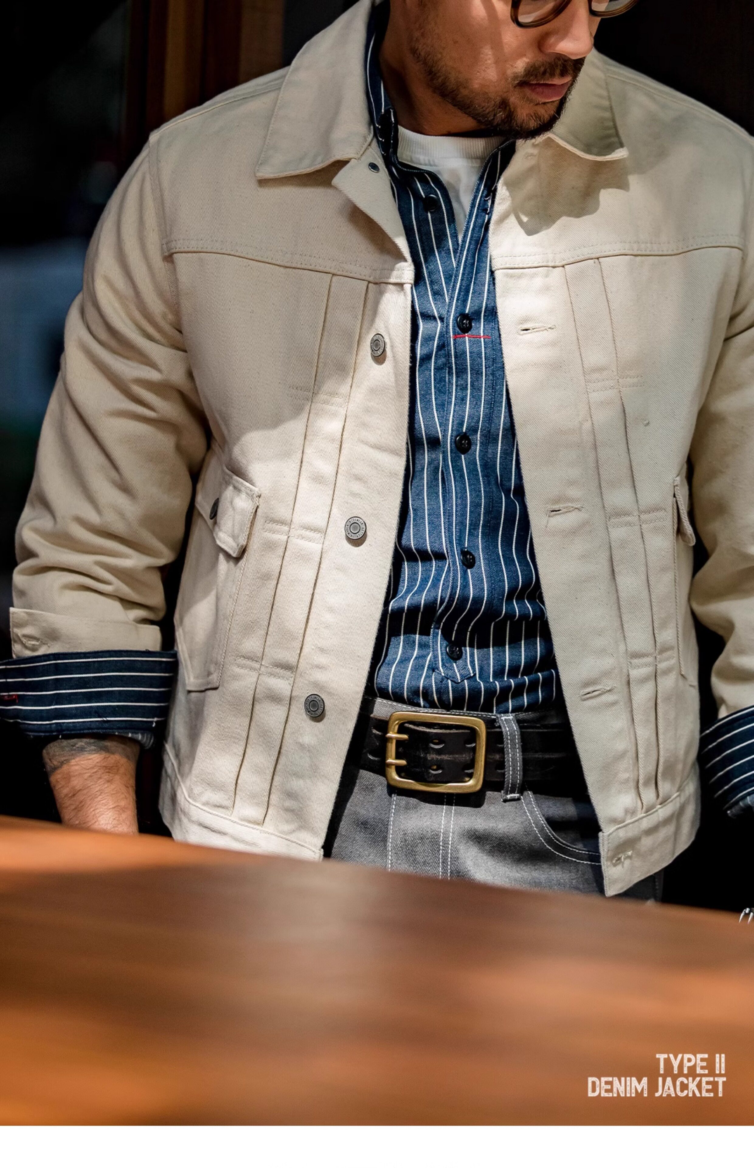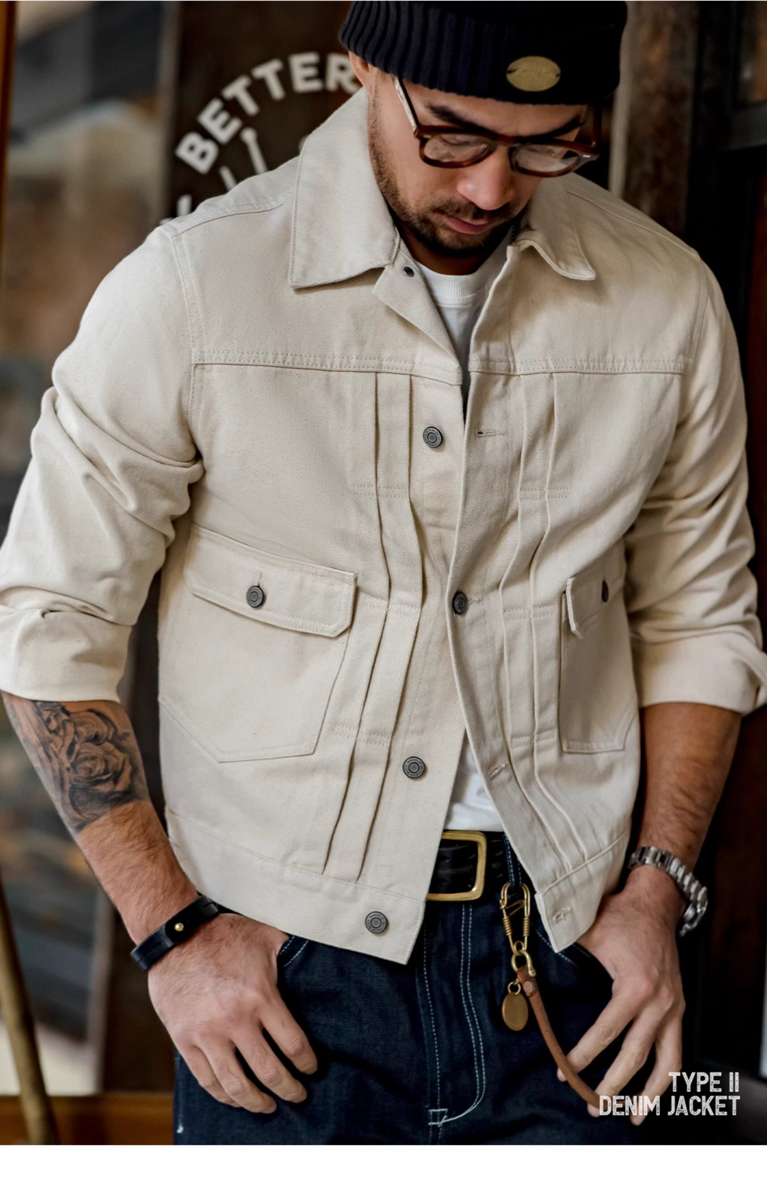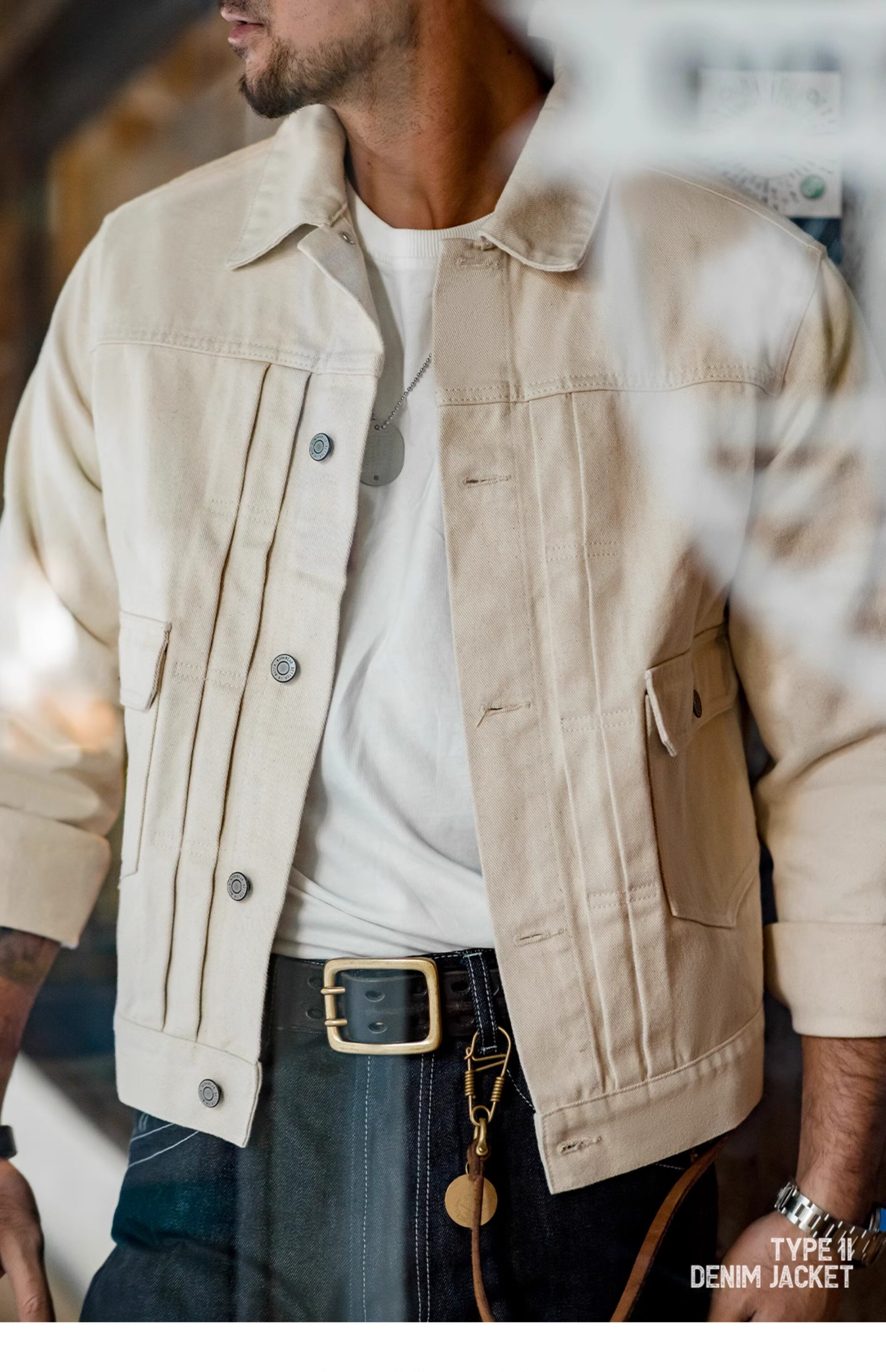 Джинсовая бежевая мужская куртка, в американском стиле