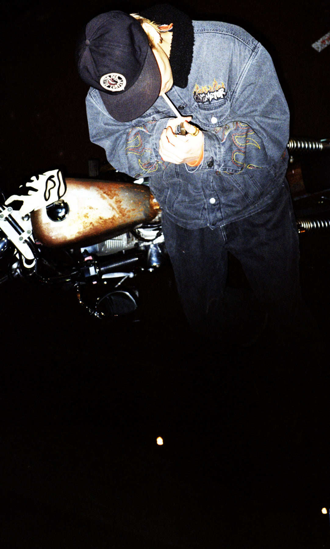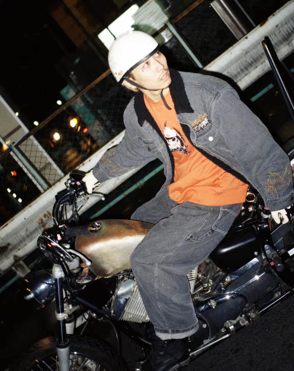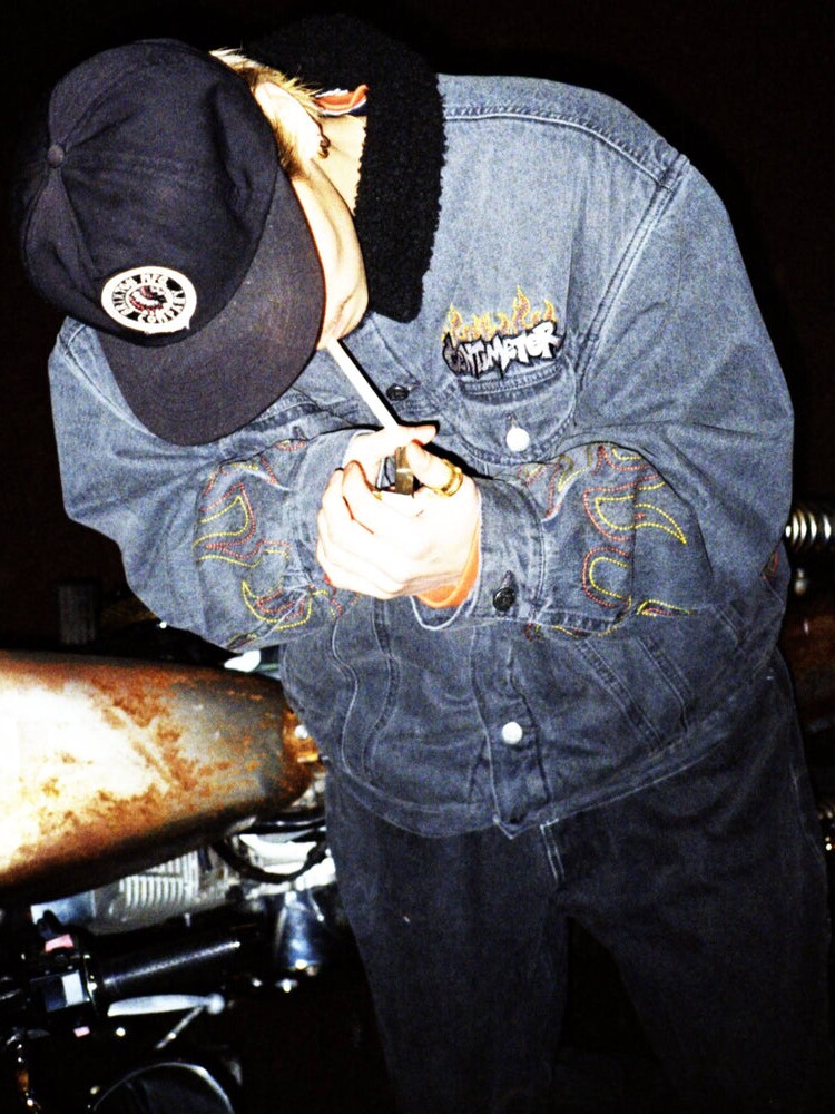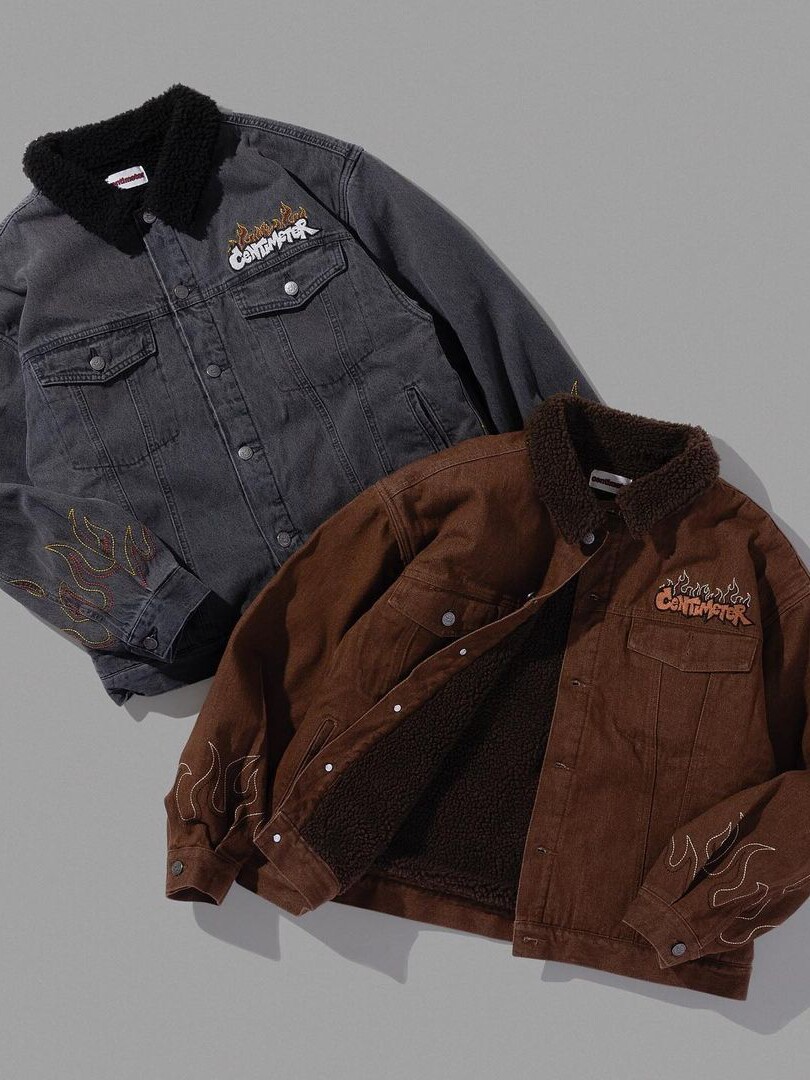 Японский скейтборд, бархатная удерживающая тепло джинсовая куртка, с вышивкой