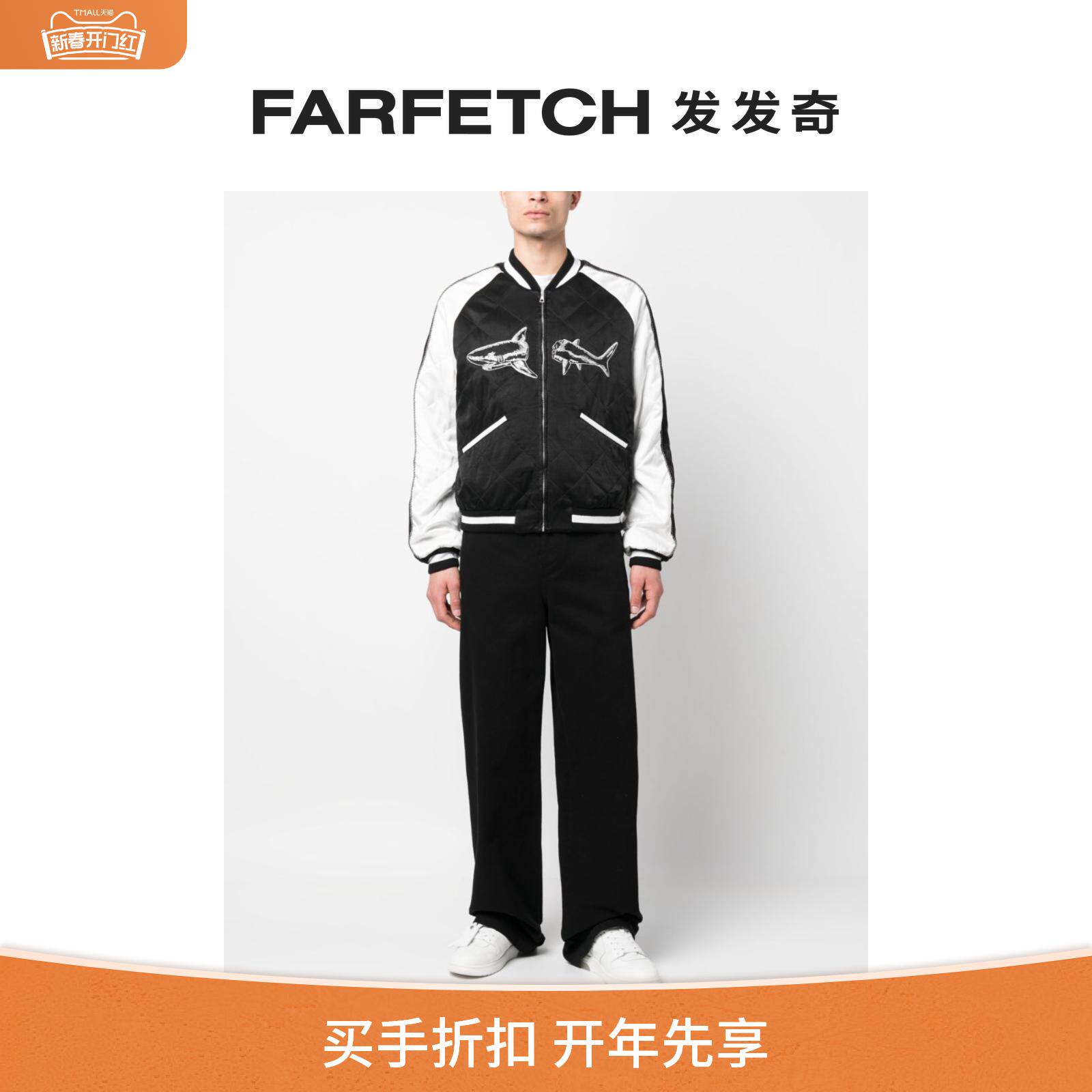 Palm Angels Мужчины сломанные акулы Sukajan Pilot Jacket Farbetch