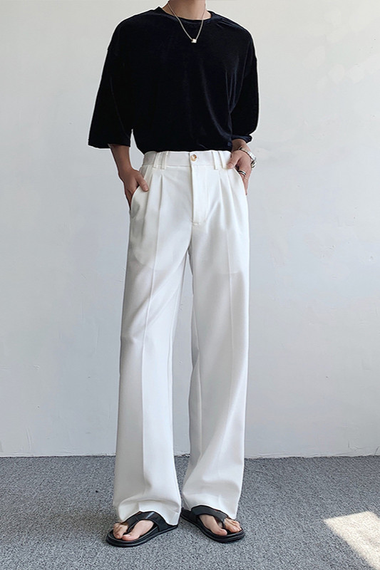 Летние приталенные штаны, изысканный стиль, в корейском стиле, высокая талия, свободный прямой крой