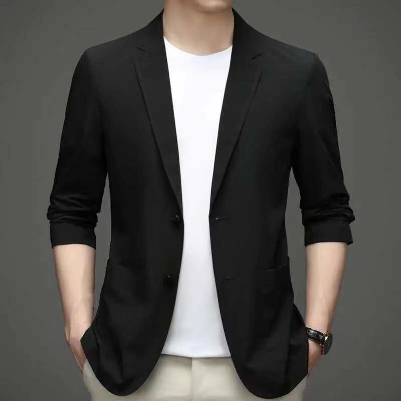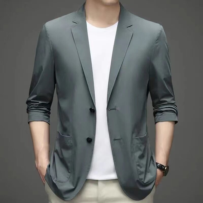 Летний ультратонкий тонкий шелковый быстросохнущий мужской пиджак классического кроя, защита от солнца