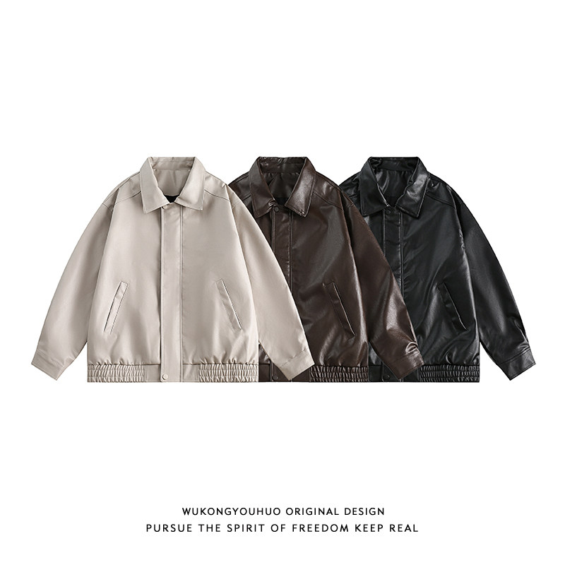 悟空有货 Цветная полиуретановая куртка подходит для мужчин и женщин, в американском стиле, оверсайз