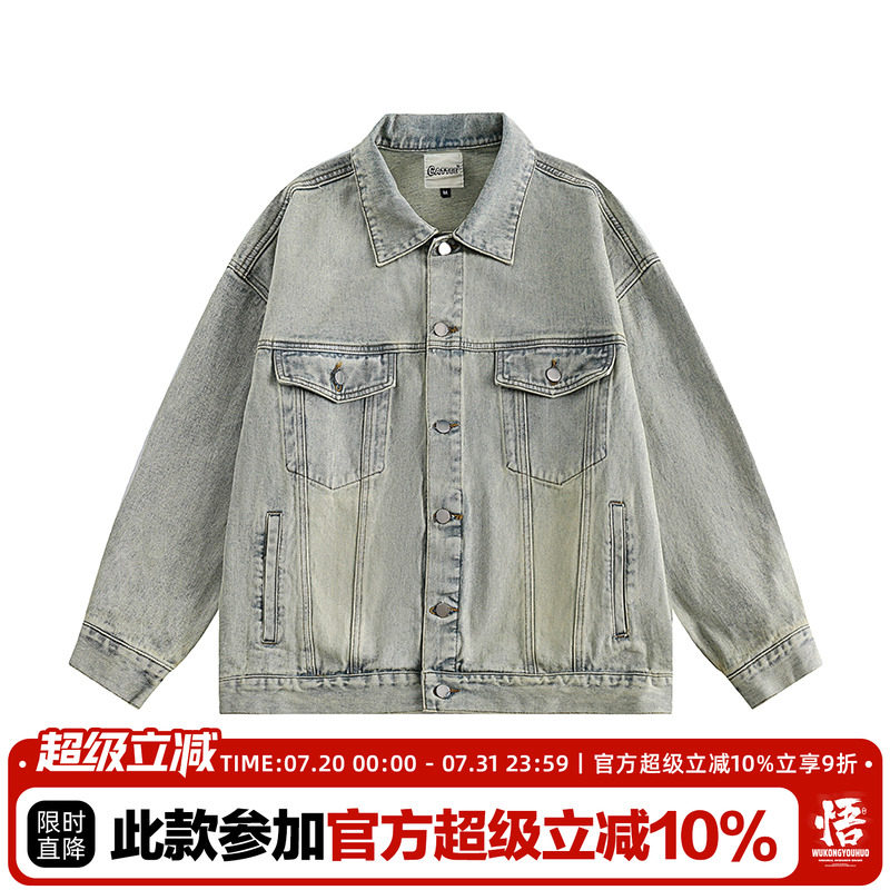 悟空有货 Джинсовая куртка подходит для мужчин и женщин для влюбленных, в американском стиле