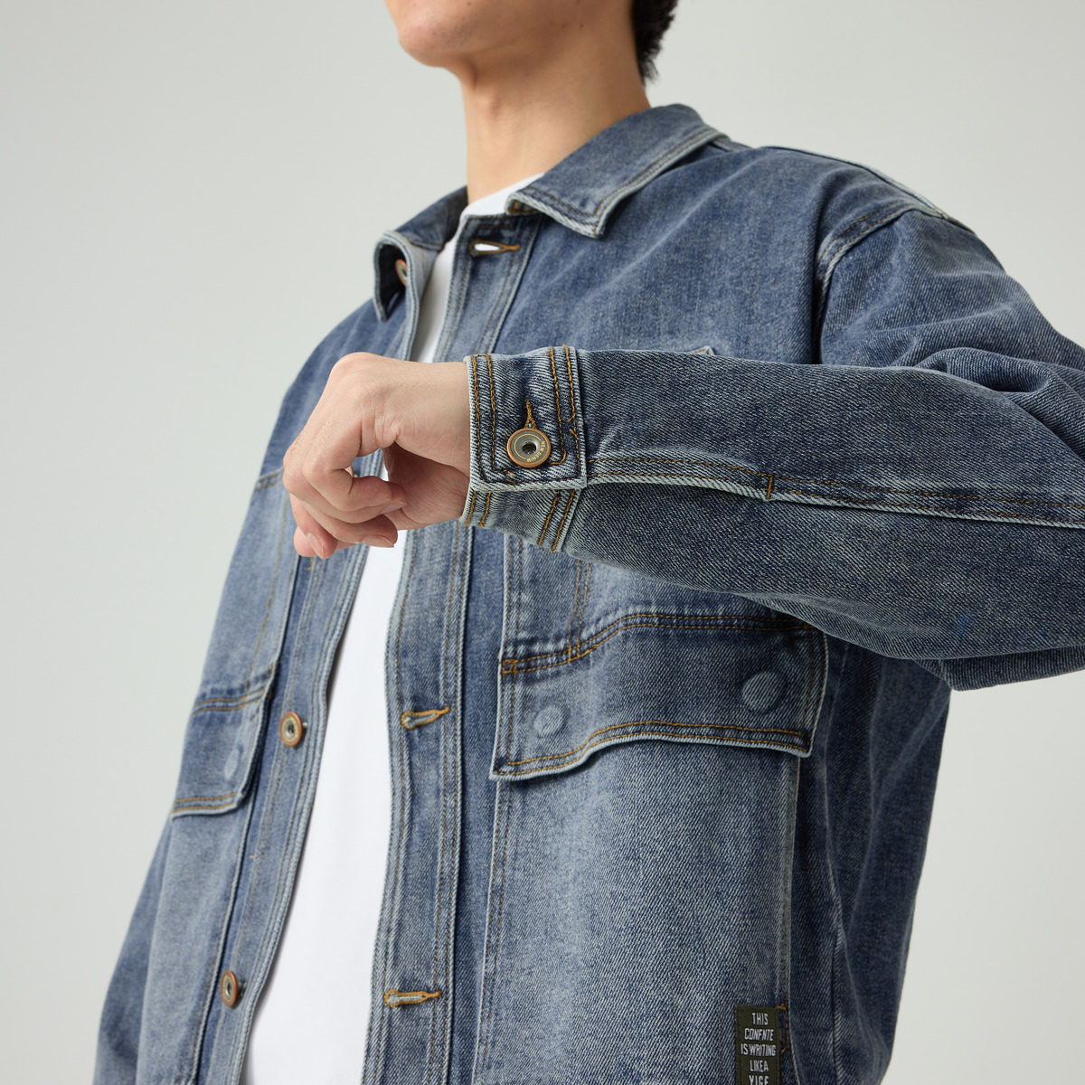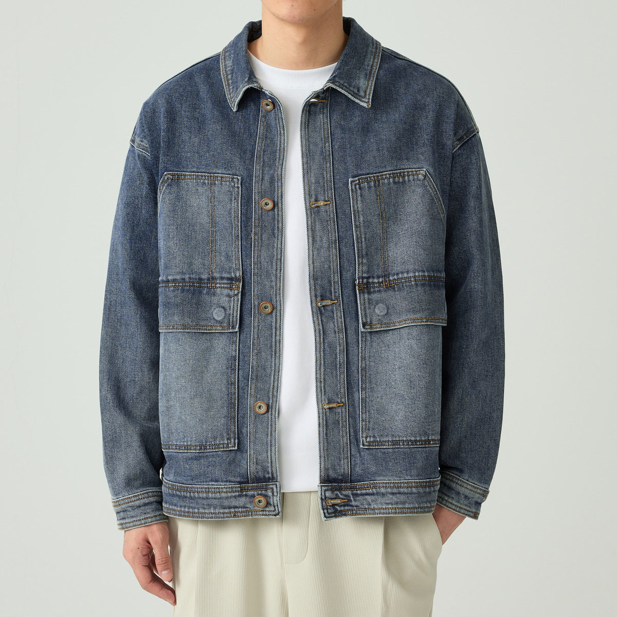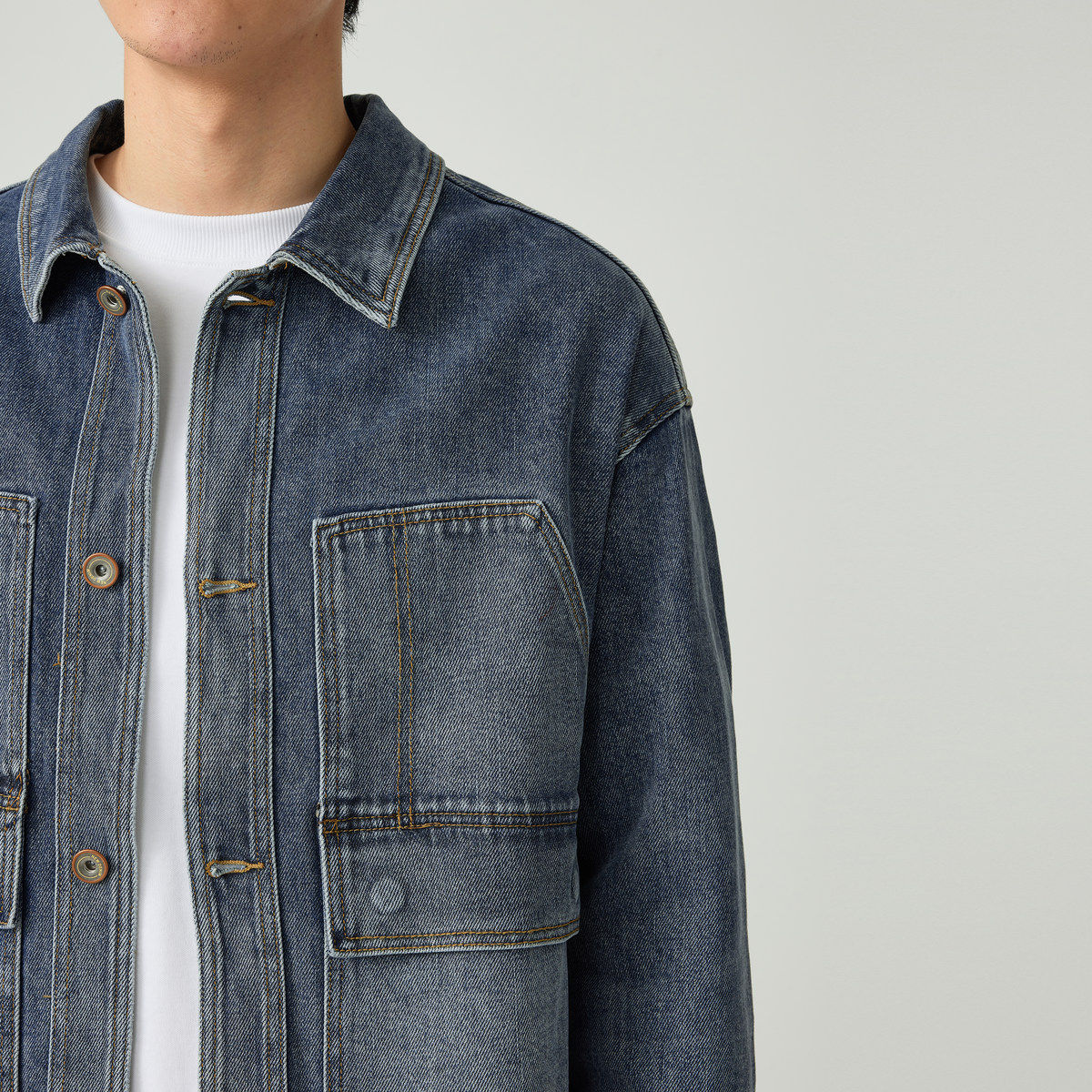 Джинсовая осенняя демисезонная куртка, рубашка, свободный крой