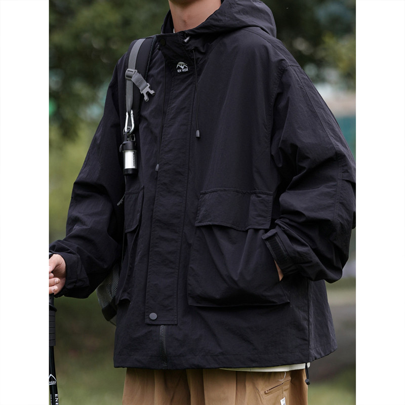 Tide, демисезонная спортивная ветрозащитная куртка с капюшоном, в американском стиле, свободный крой
