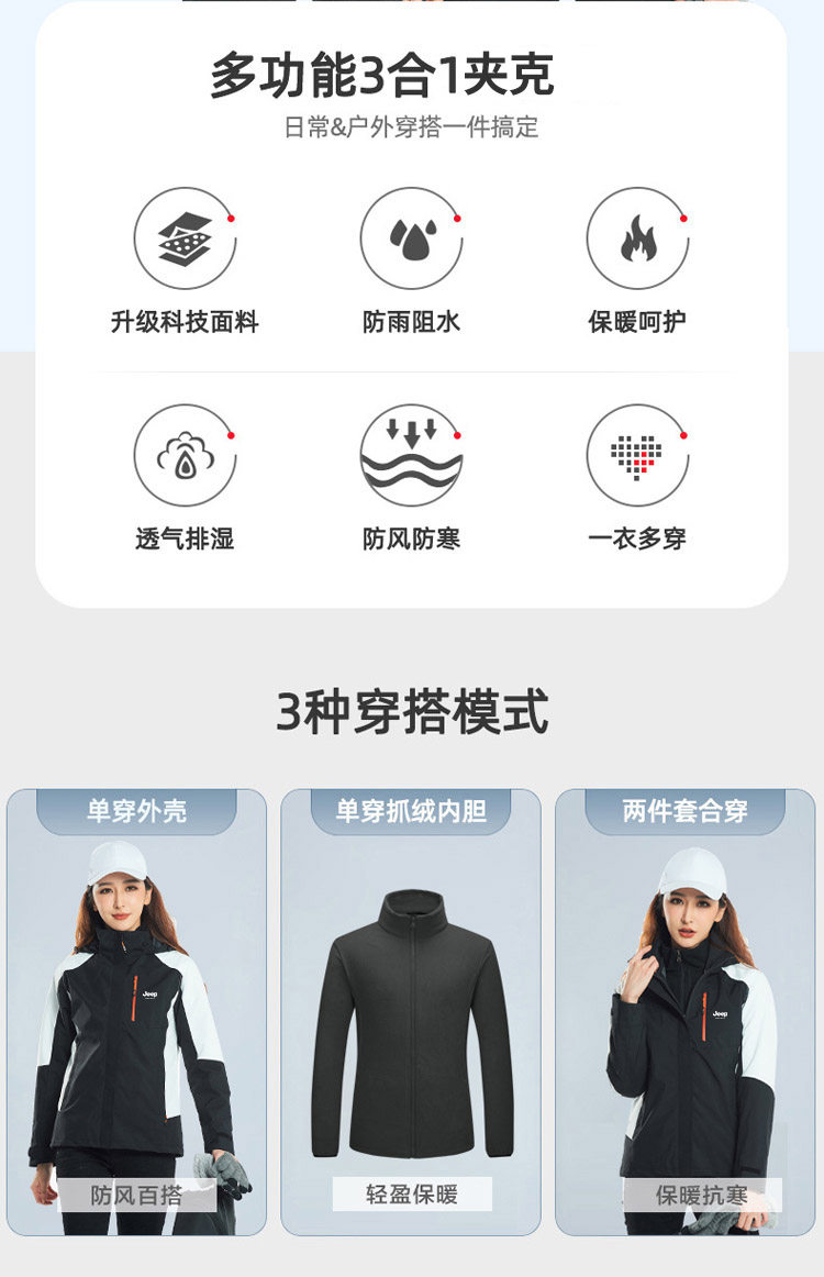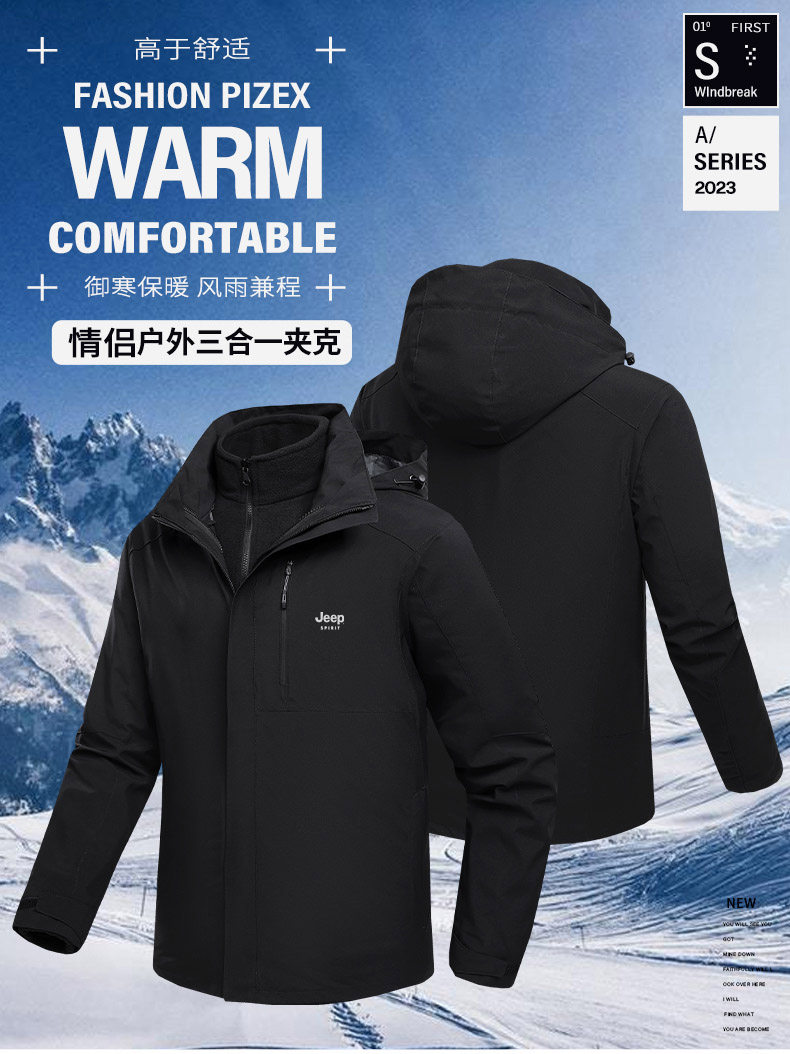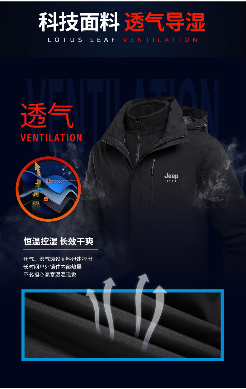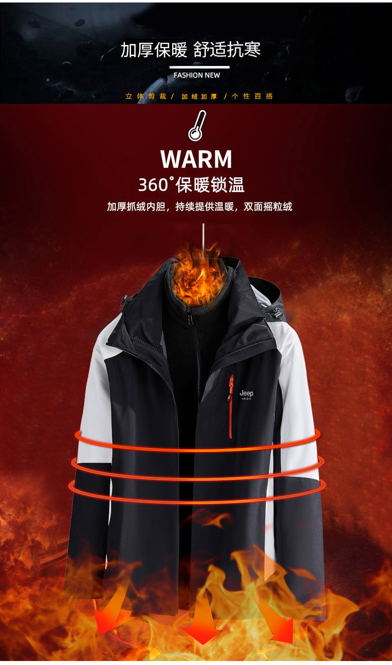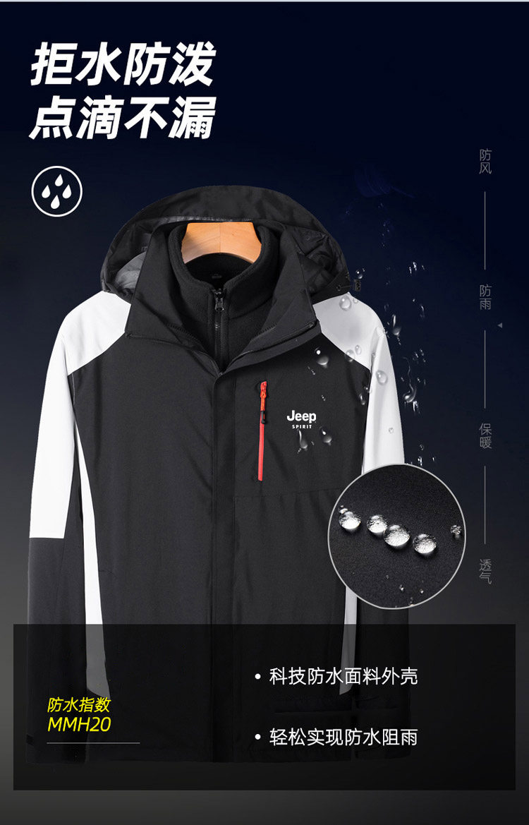 Джип, демисезонная ветрозащитная водонепроницаемая куртка, официальный флагманский магазин, «три в одном», увеличенная толщина