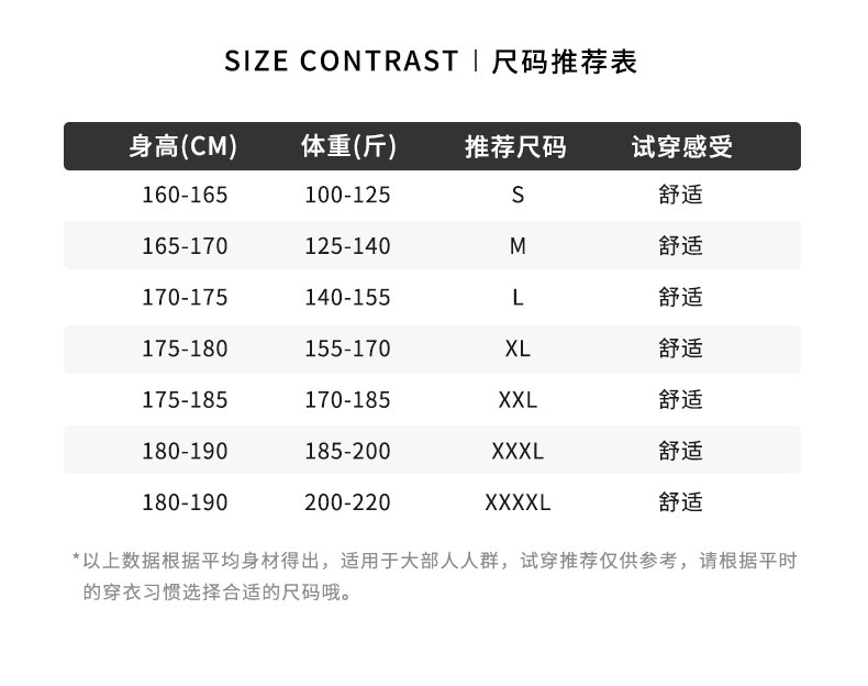 | Размер: | S (рекомендуется 90-105 кот), М (рекомендуется 105-120 кот), L (рекомендуется 120-135 кот), XL (рекомендуется 135-150 кот), 2xl (рекомендуется 150-165 Catties), 3xl (рекомендуется 165-180 кот), 4xl (рекомендуется 180-195 котлих) |