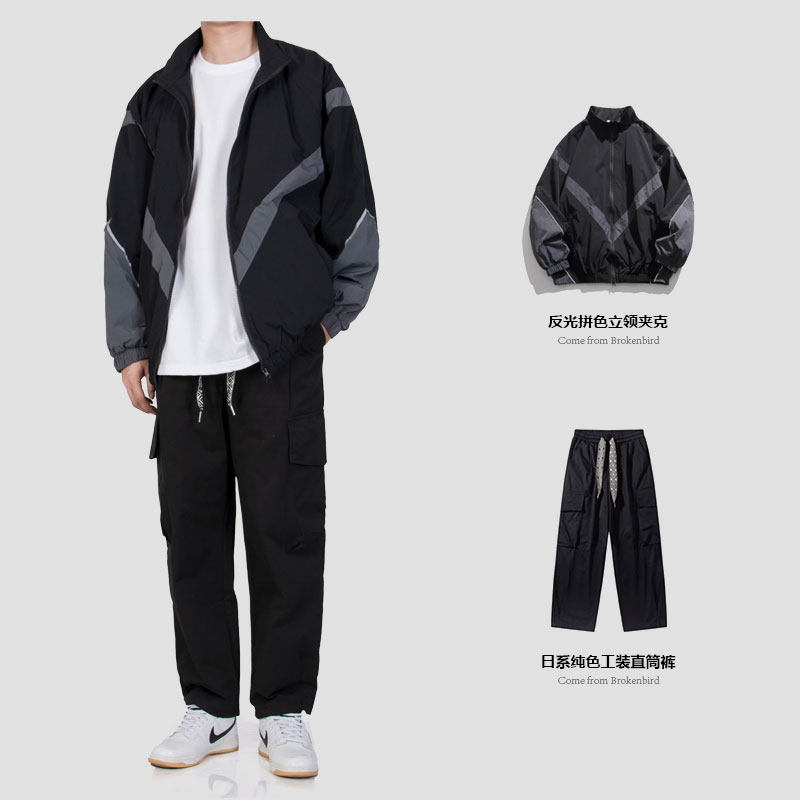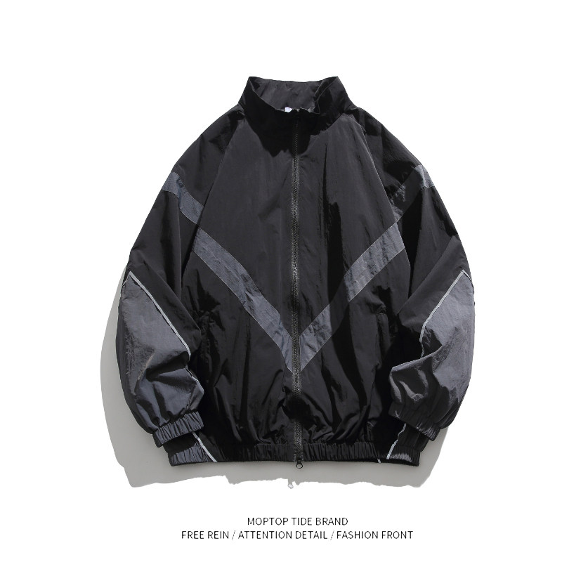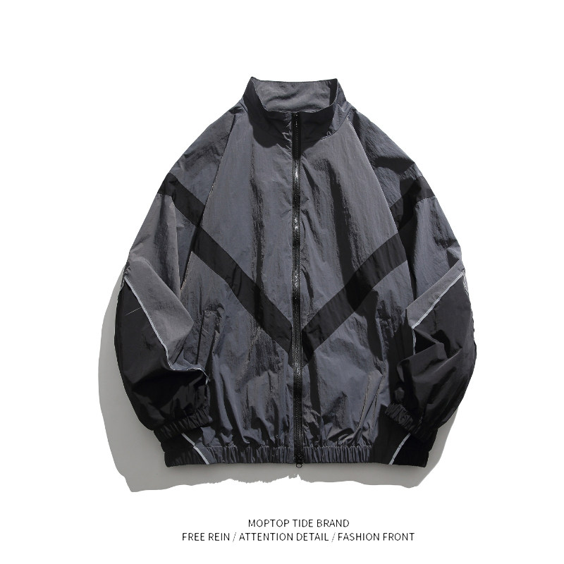 Светоотражающая демисезонная куртка с молнией для отдыха, в американском стиле, осенняя, оверсайз
