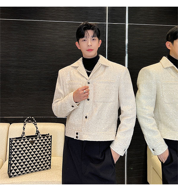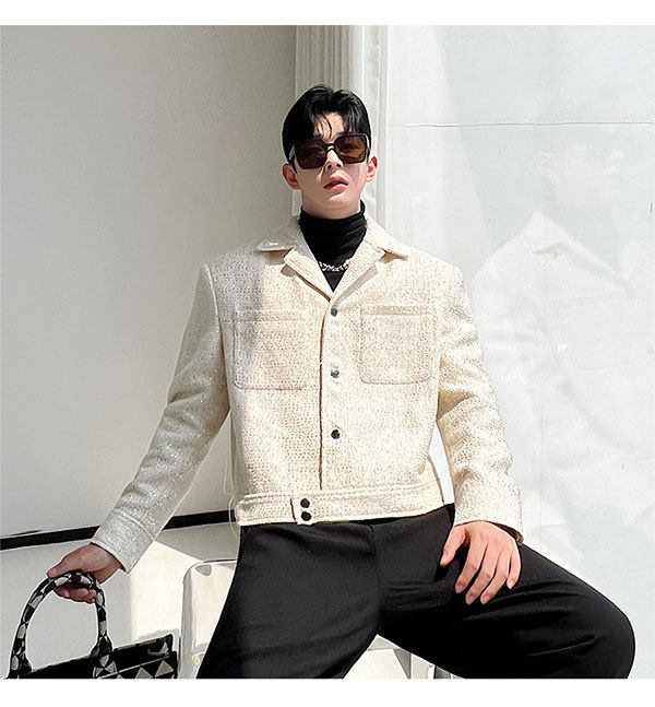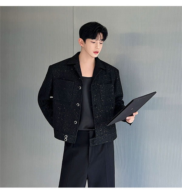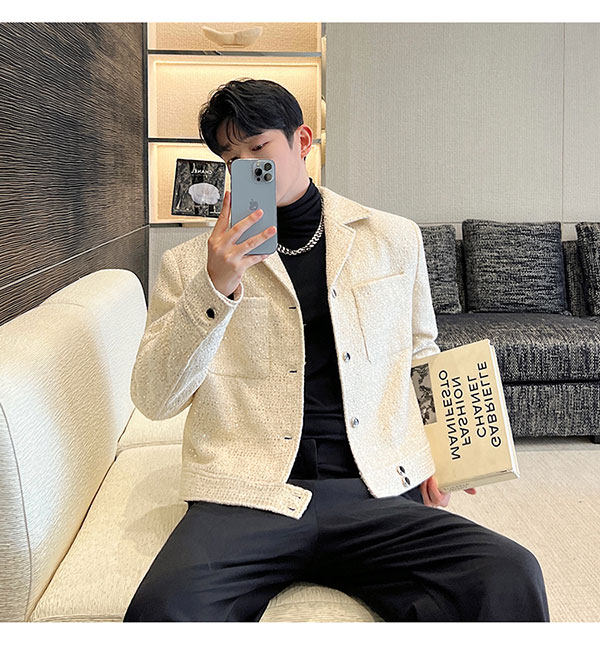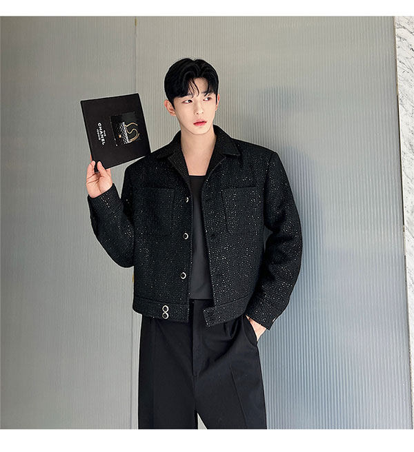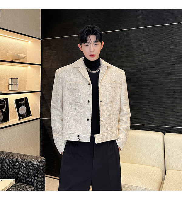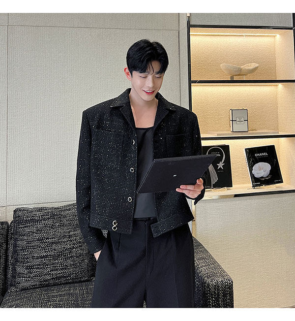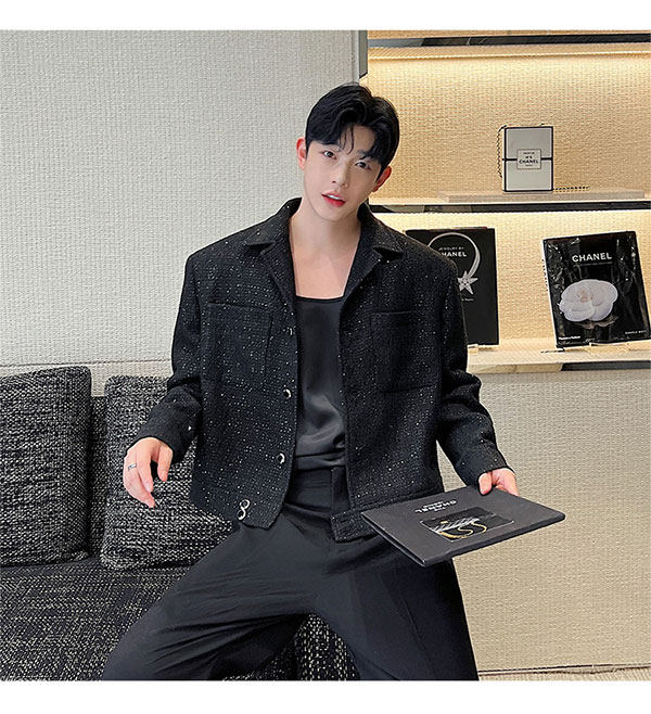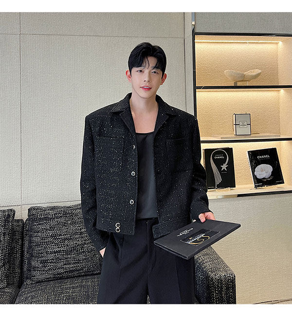 Ретро костюм, мужская куртка, блестки для ногтей, осенний, изысканный стиль, в стиле Шанель, легкий роскошный стиль