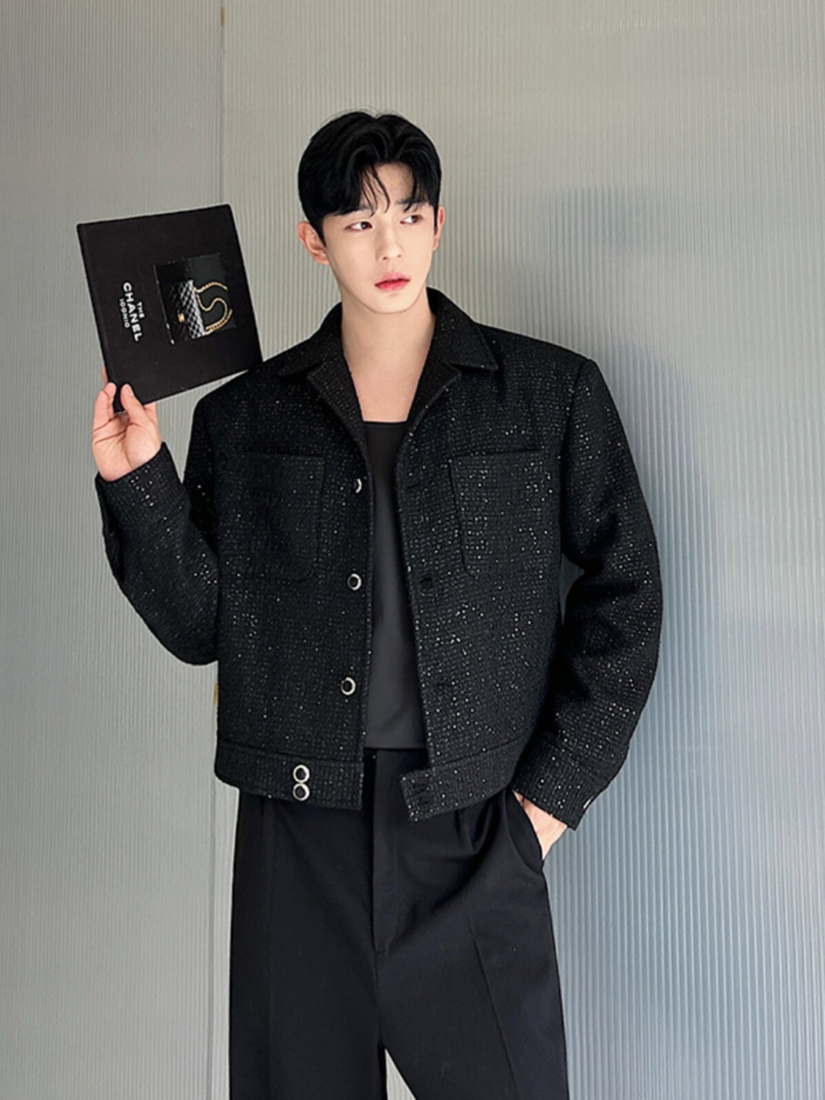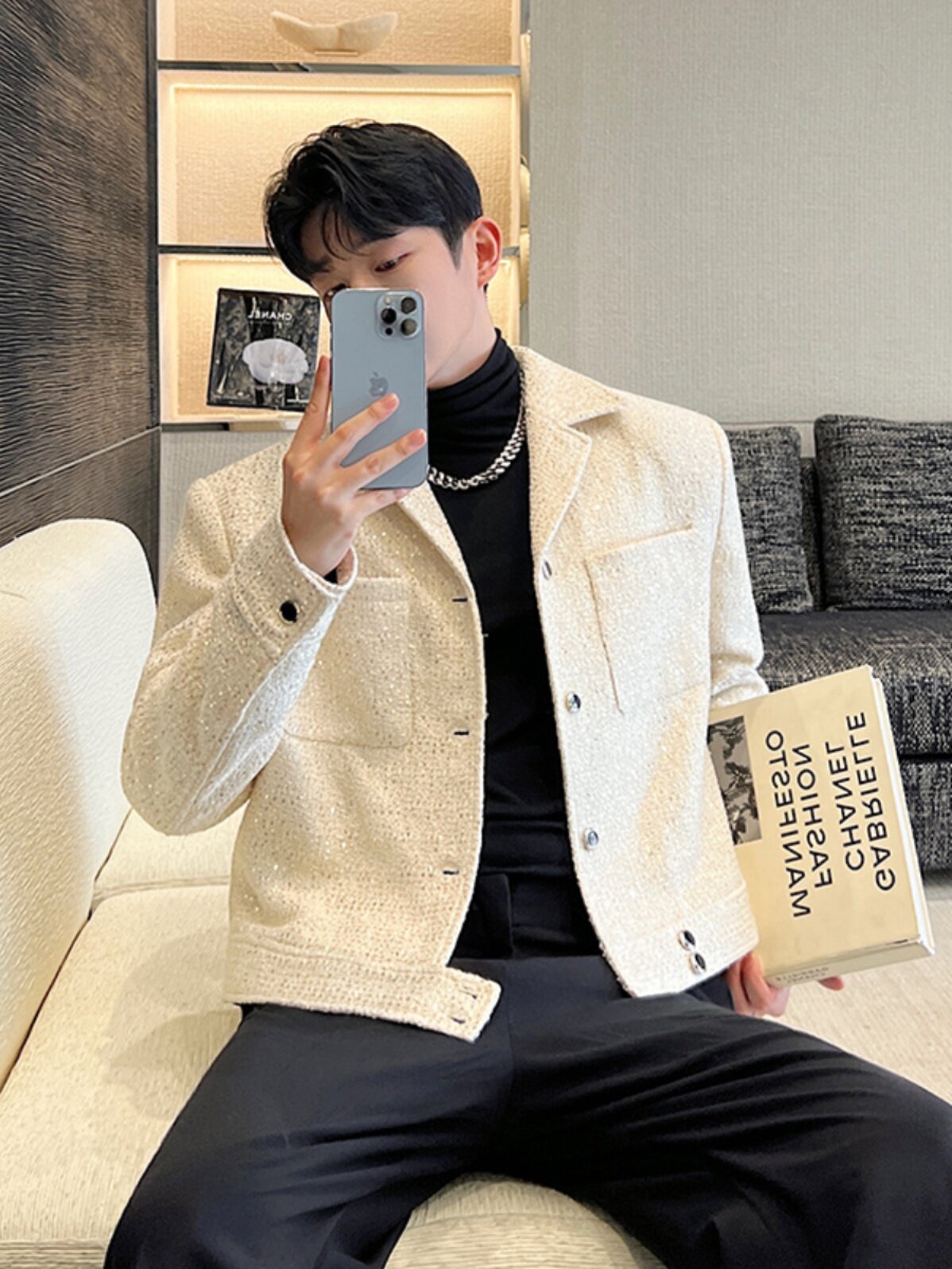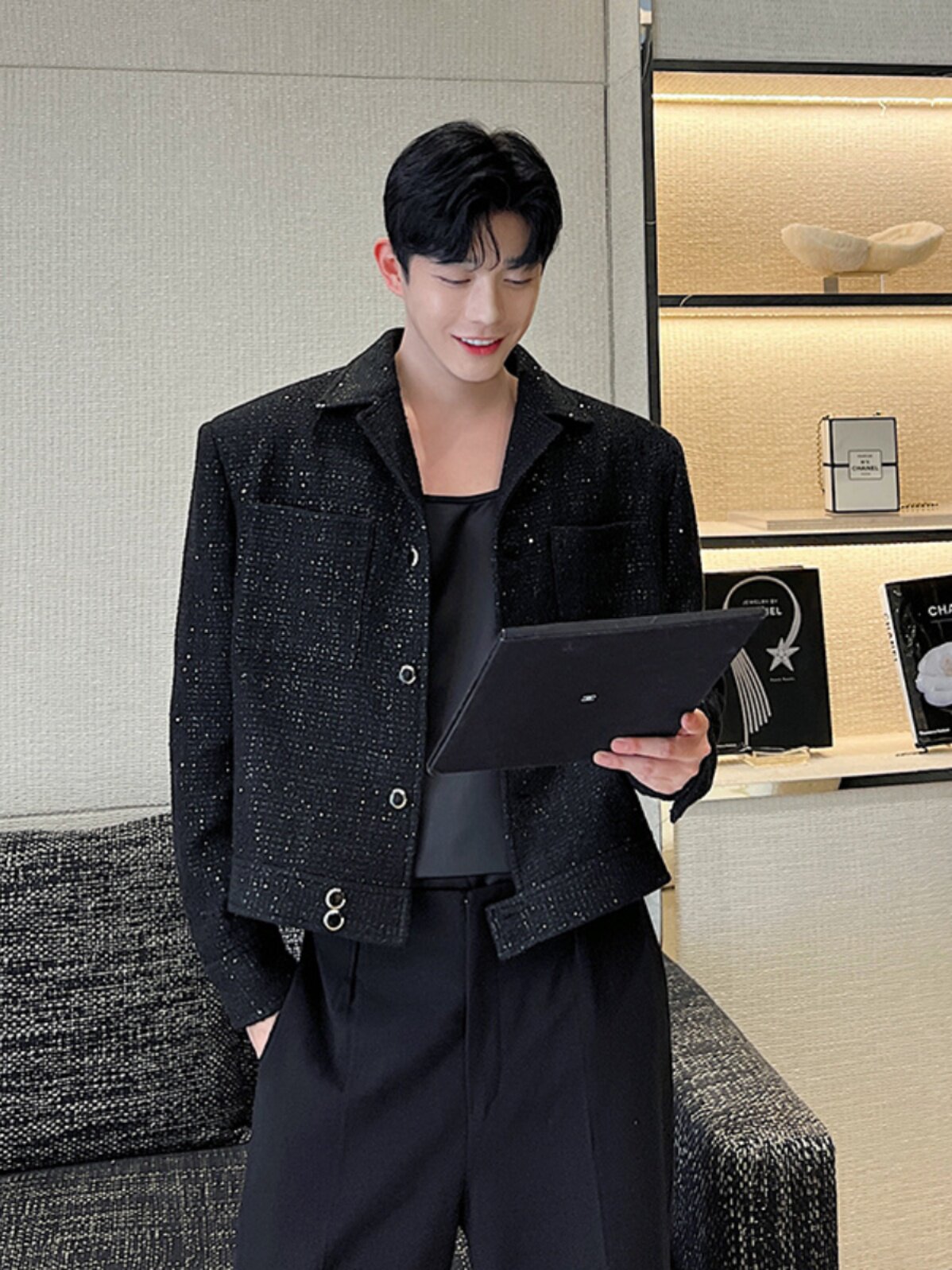 Ретро костюм, мужская куртка, блестки для ногтей, осенний, изысканный стиль, в стиле Шанель, легкий роскошный стиль