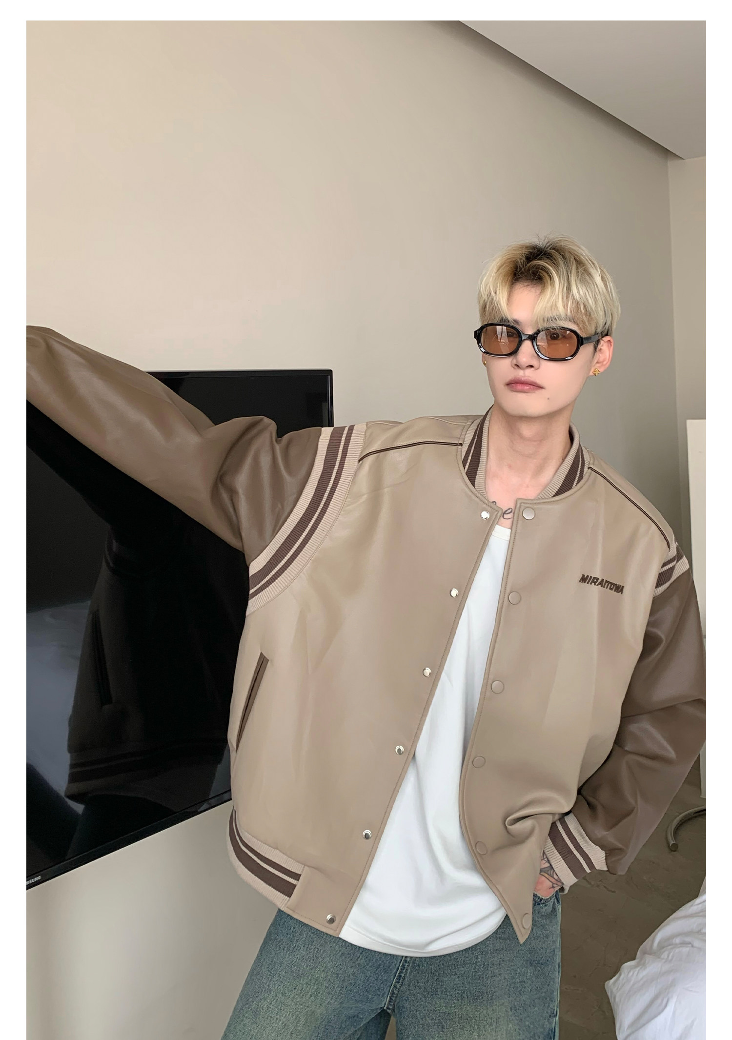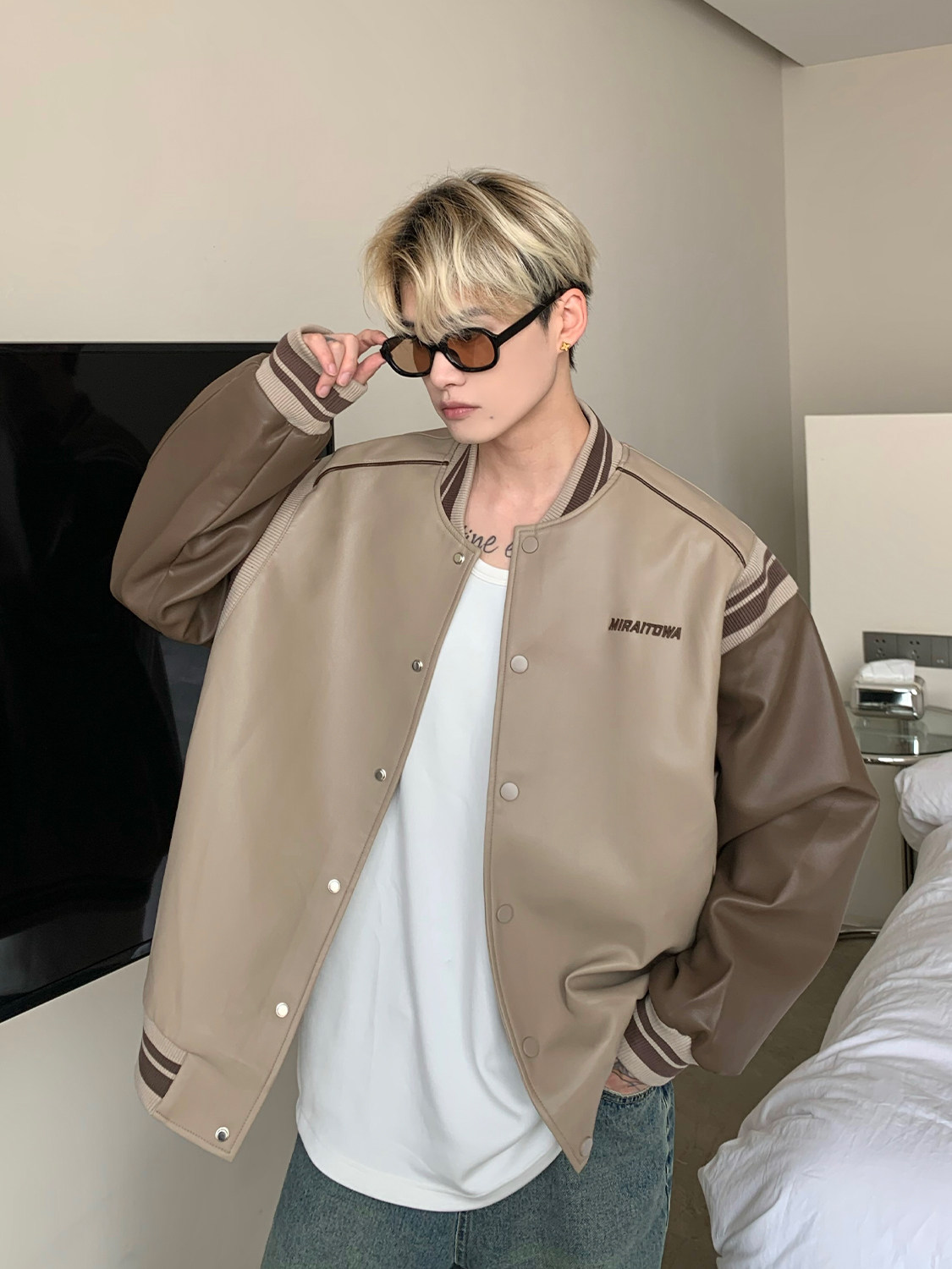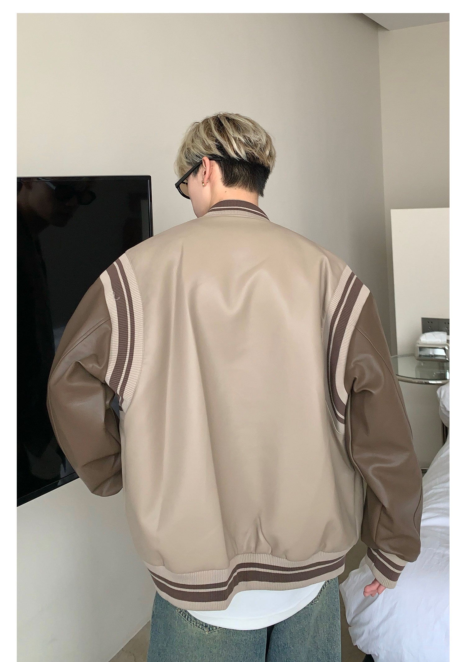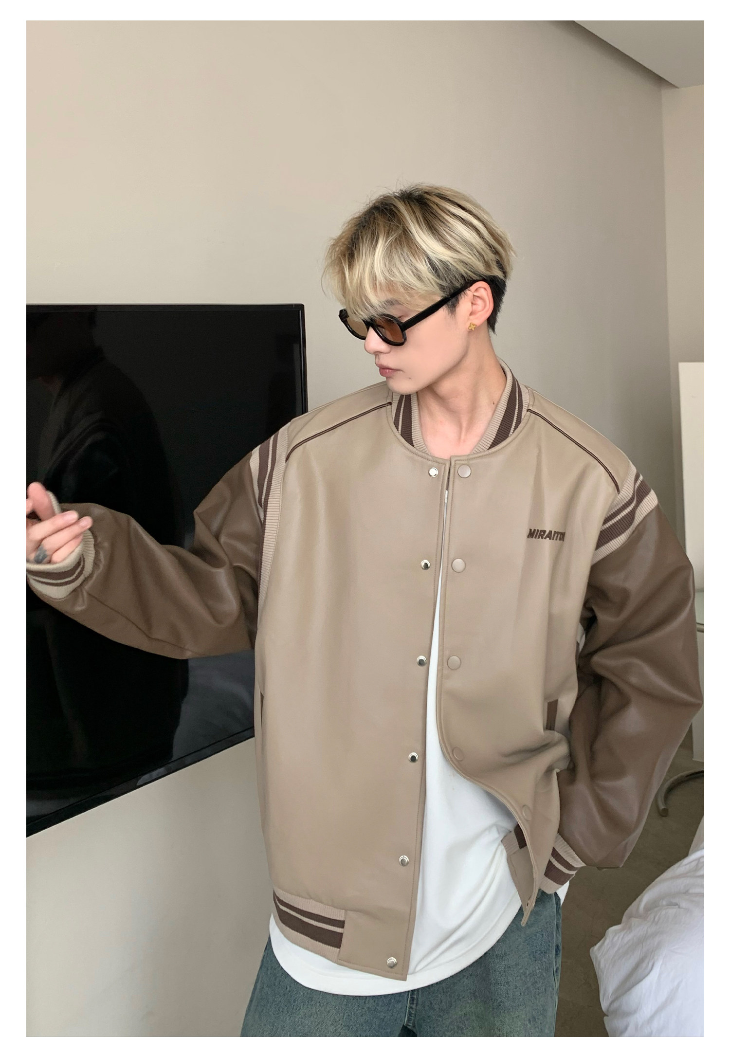 Ретро бейсбольная форма, полиуретановая куртка, в американском стиле, оверсайз