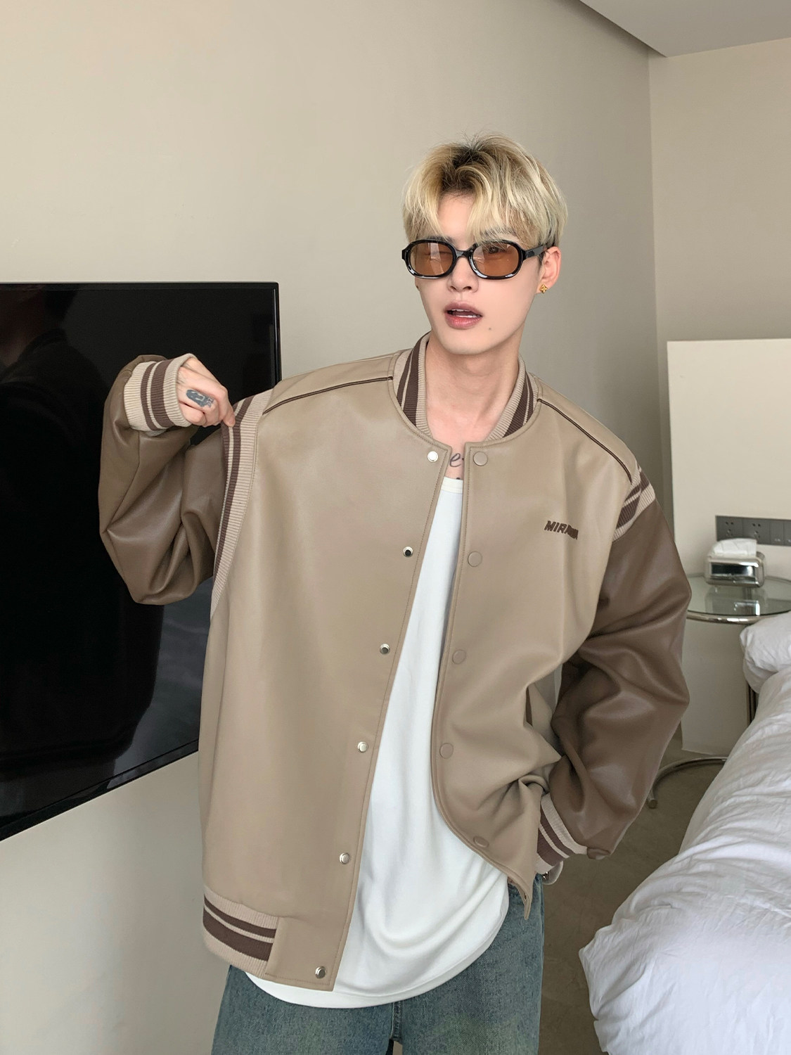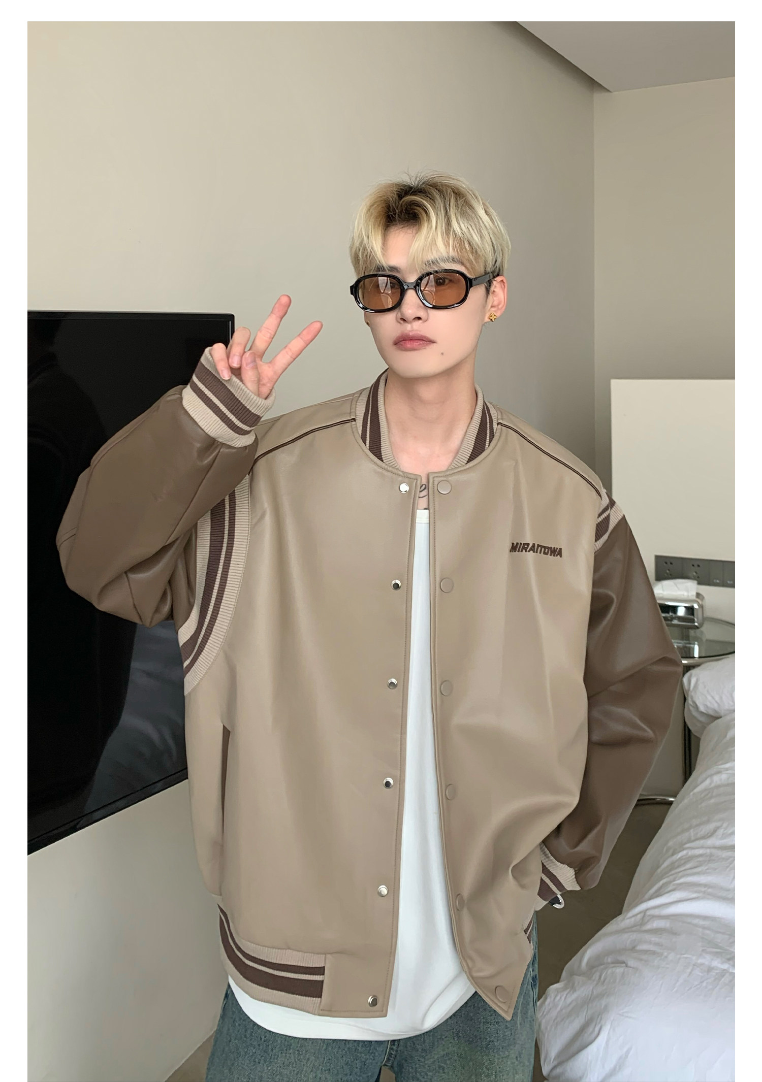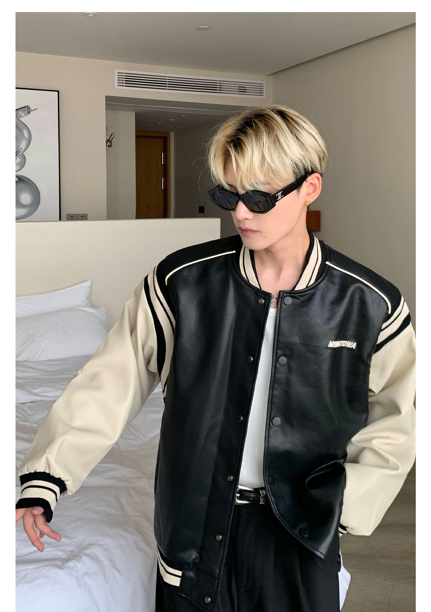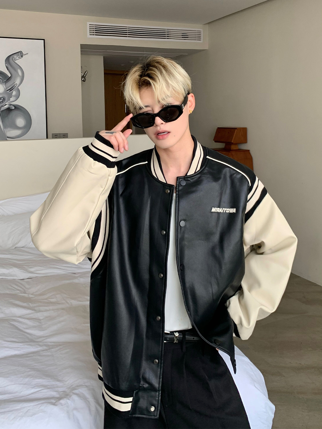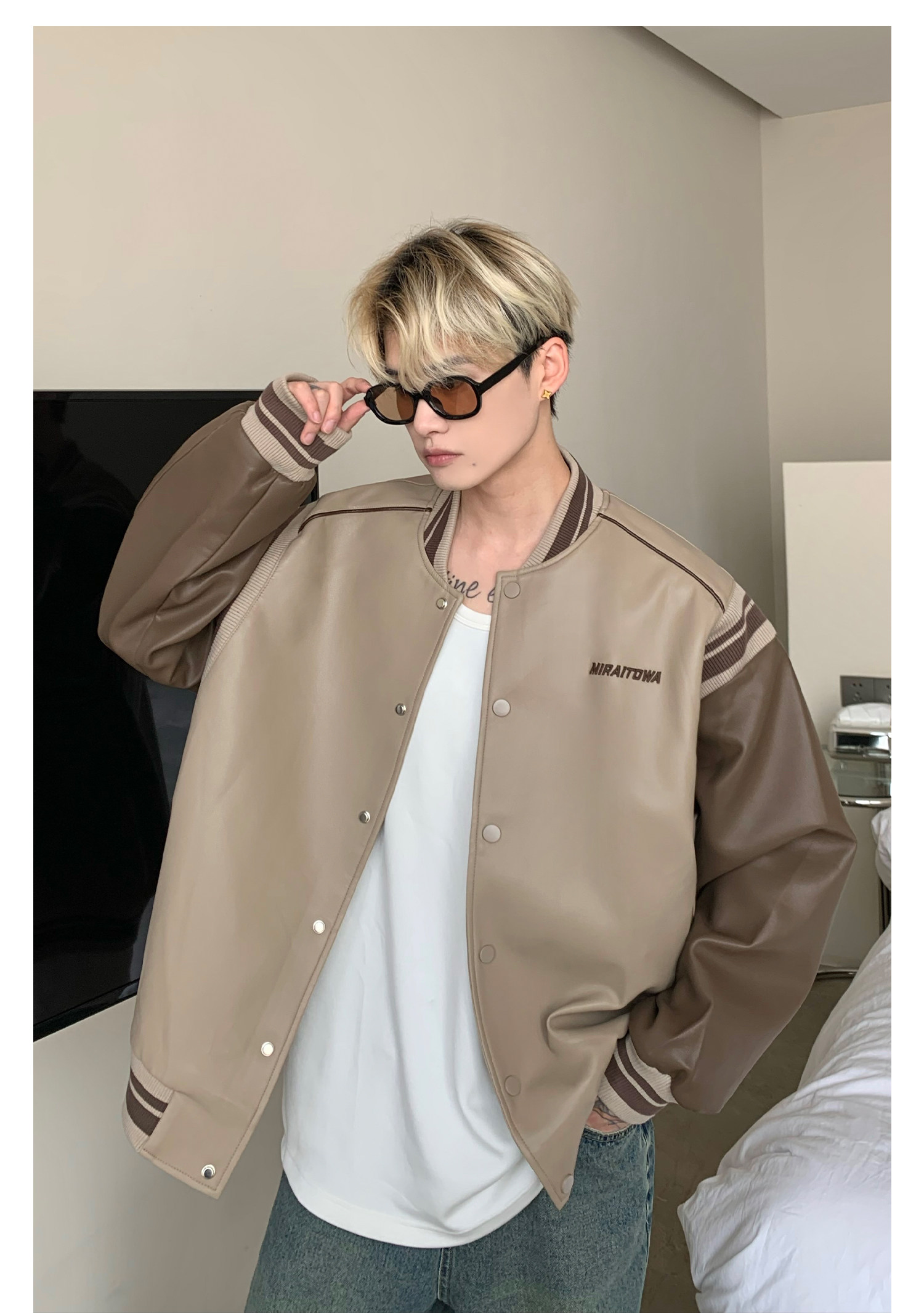 Ретро бейсбольная форма, полиуретановая куртка, в американском стиле, оверсайз