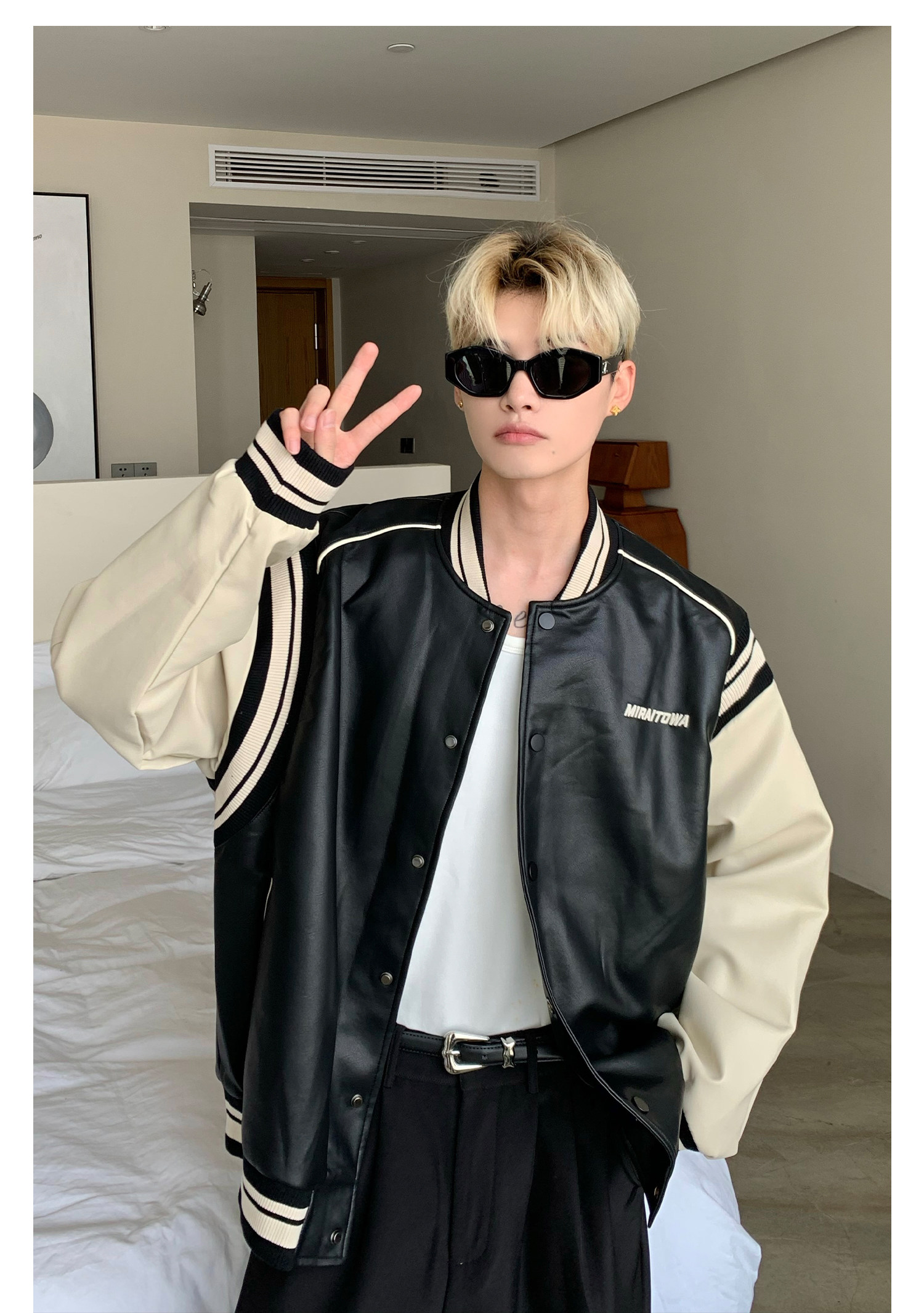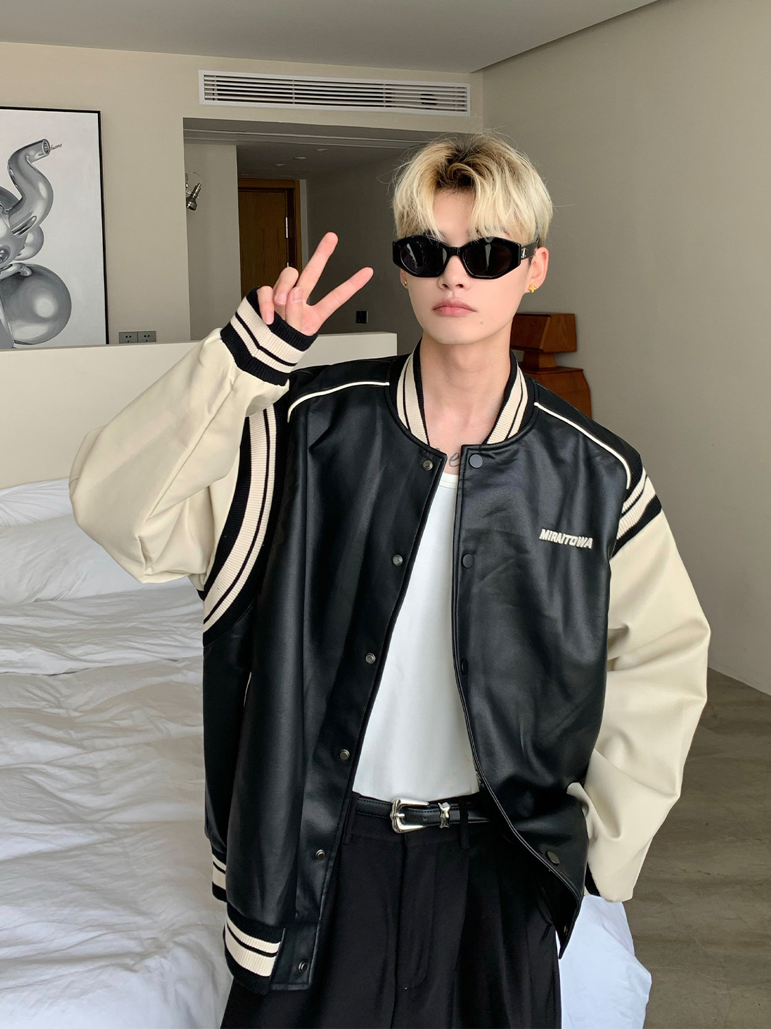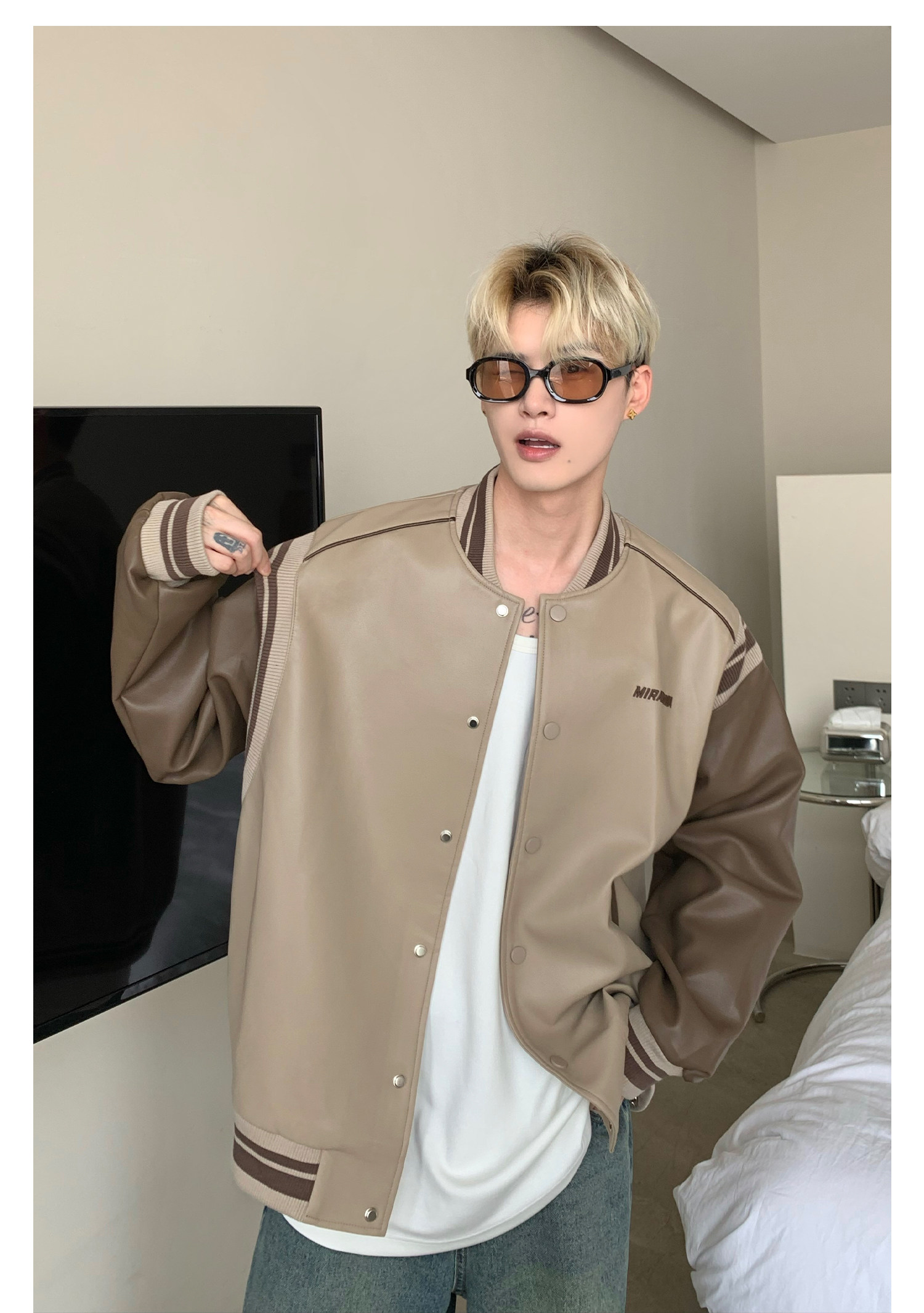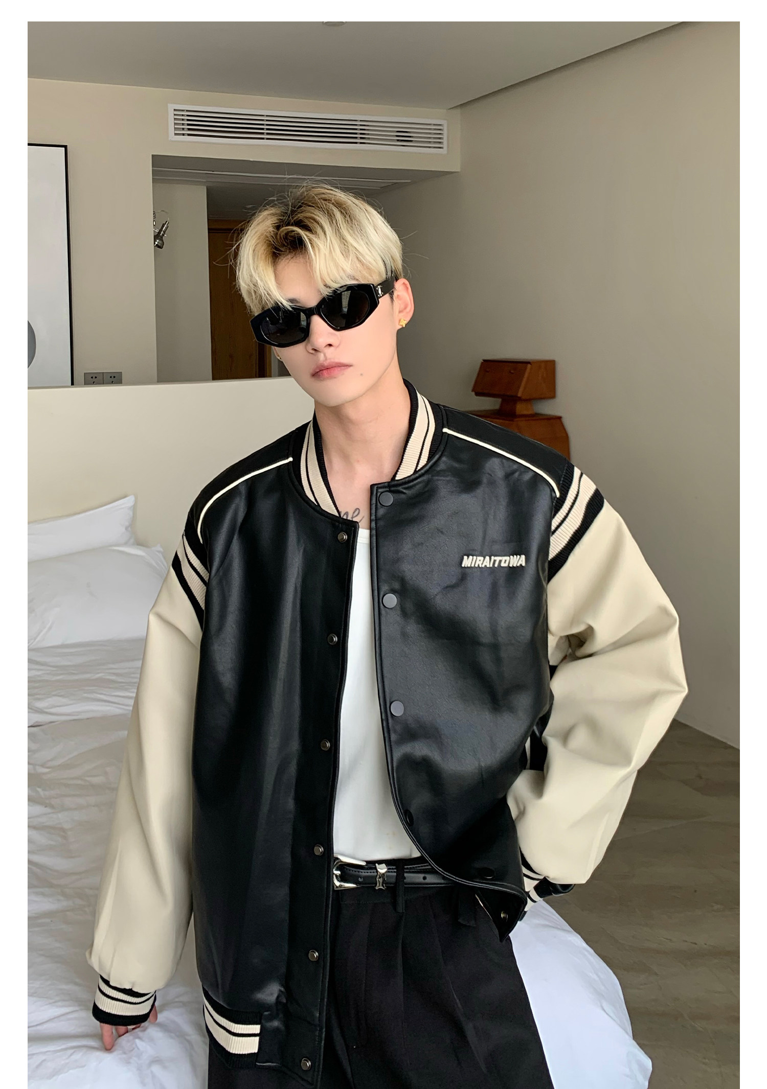 Ретро бейсбольная форма, полиуретановая куртка, в американском стиле, оверсайз