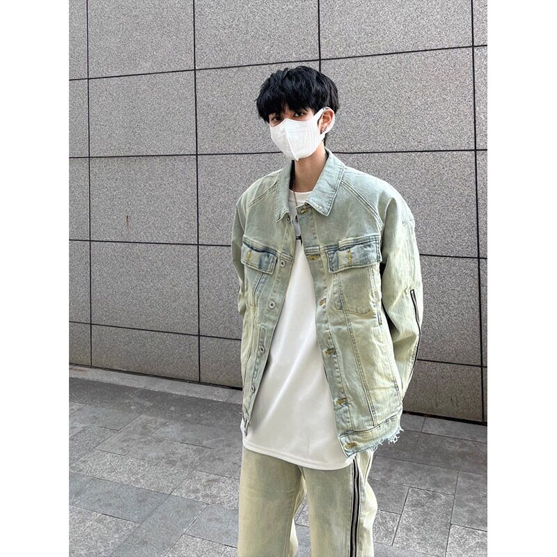 Ретро джинсовая мужская демисезонная осенняя ветрозащитная куртка, в американском стиле, изысканный стиль