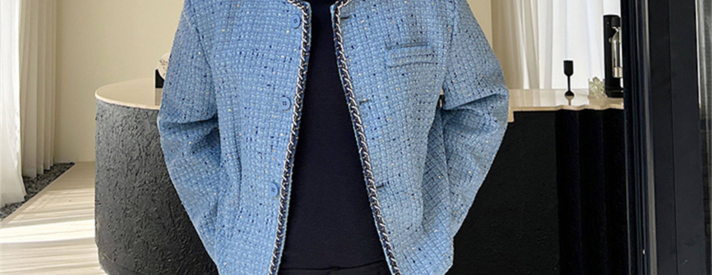 Модные блестки для ногтей, мужская куртка, короткий кардиган, осенние, в стиле Шанель, в корейском стиле, изысканный стиль