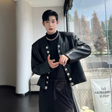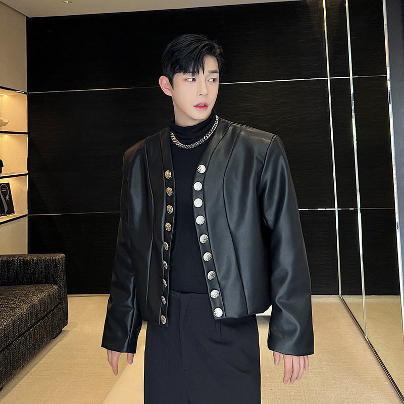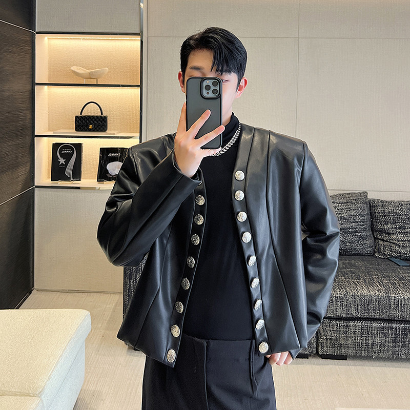 Демисезонный небольшой полиуретановый кардиган, короткая куртка, в стиле Шанель, V-образный вырез, в корейском стиле