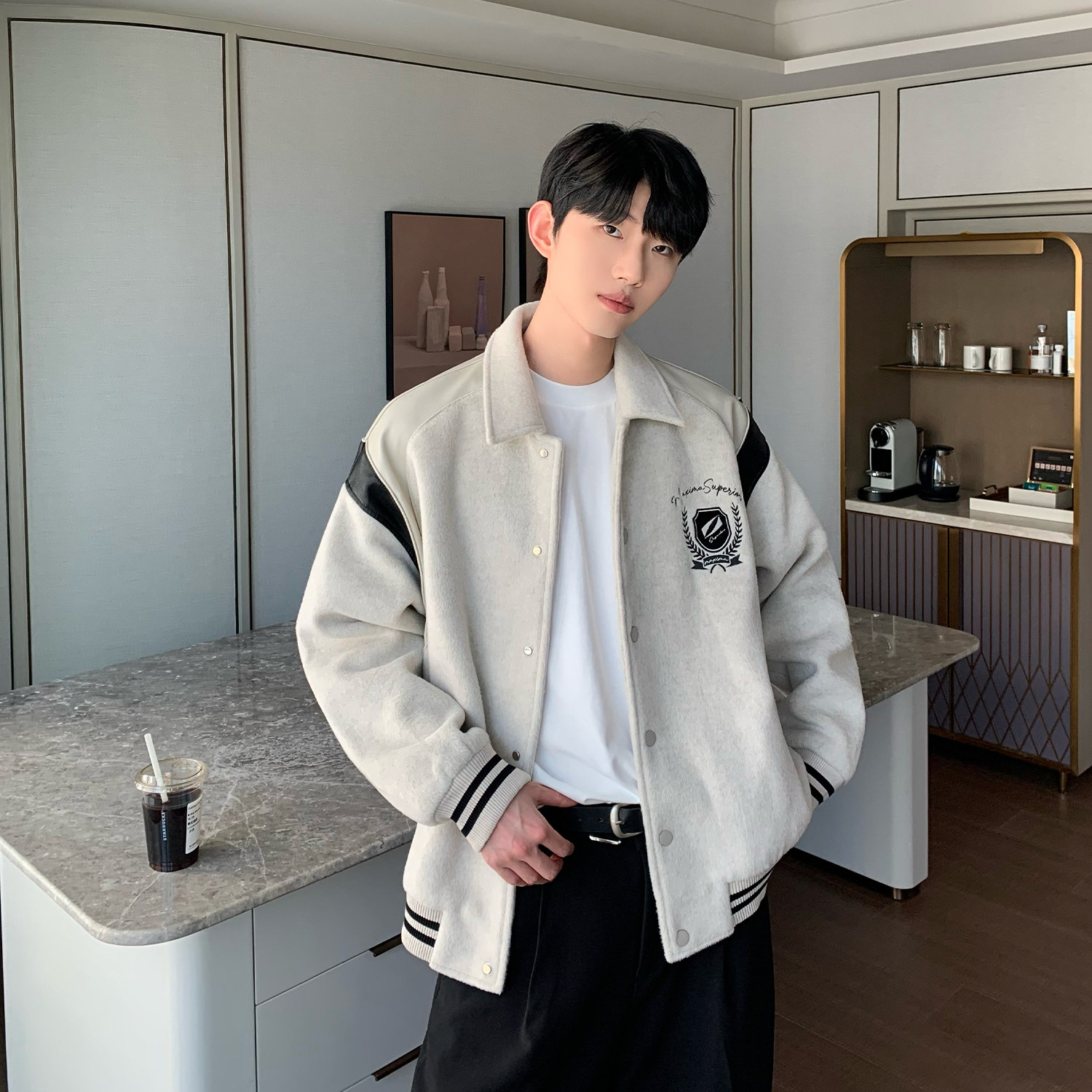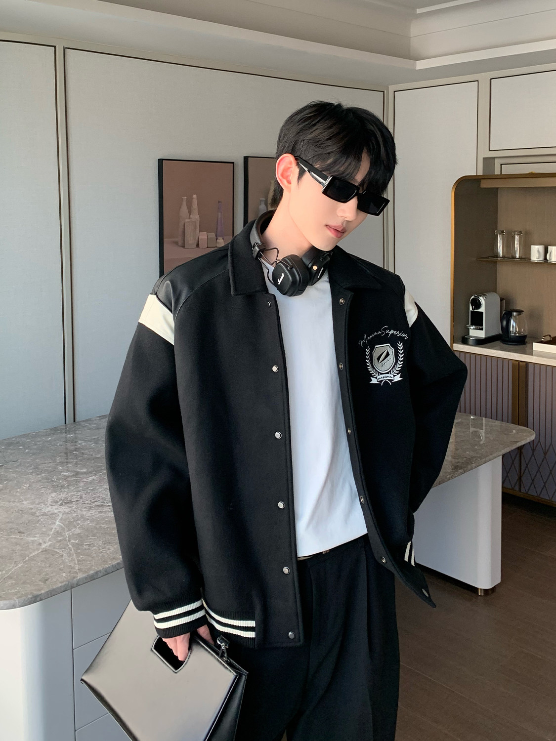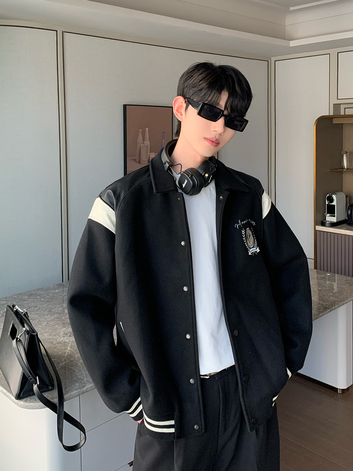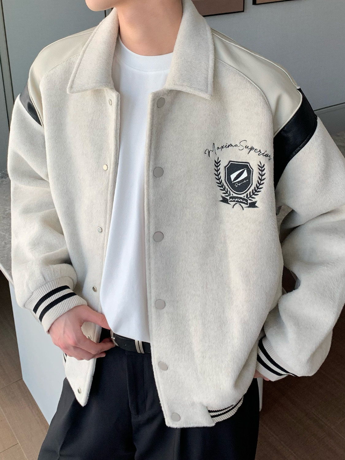 Дизайнерская мужская демисезонная куртка, ретро бейсбольная форма, тренд сезона, оверсайз, в американском стиле