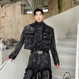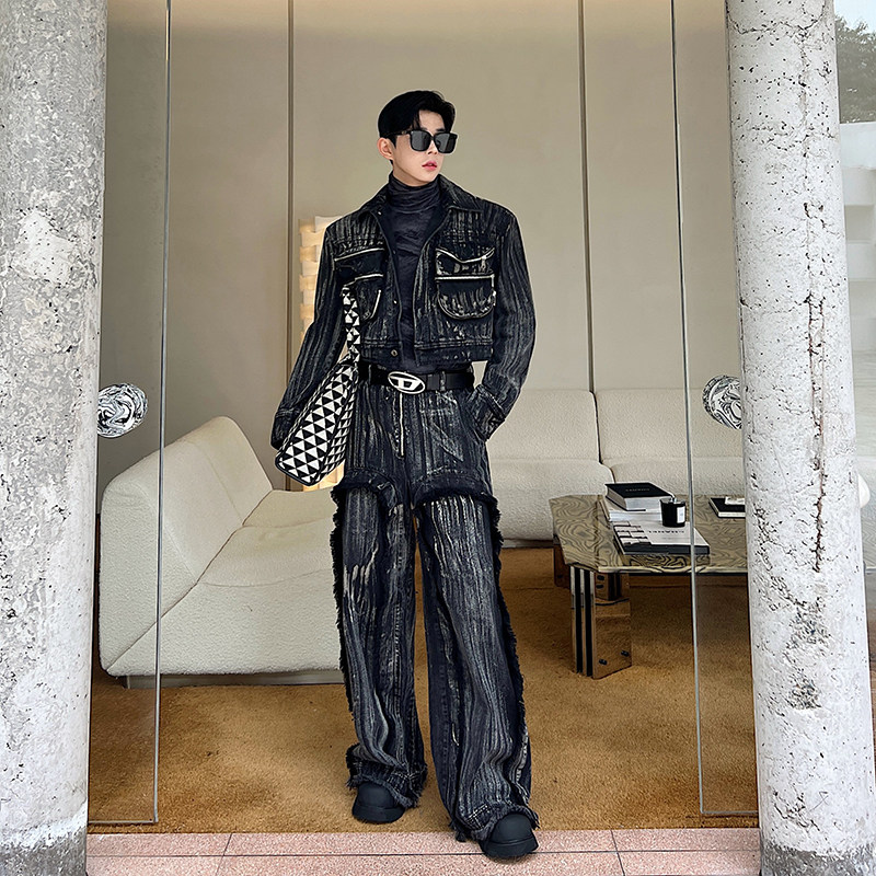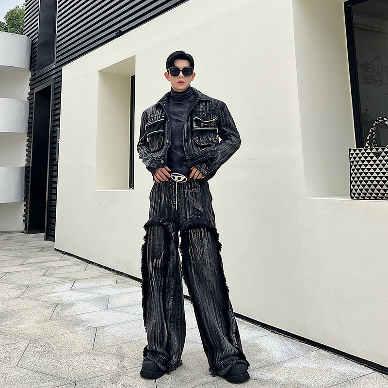 Ретро трехмерная короткая джинсовая юбка ручной работы, куртка, комплект, штаны с кисточками