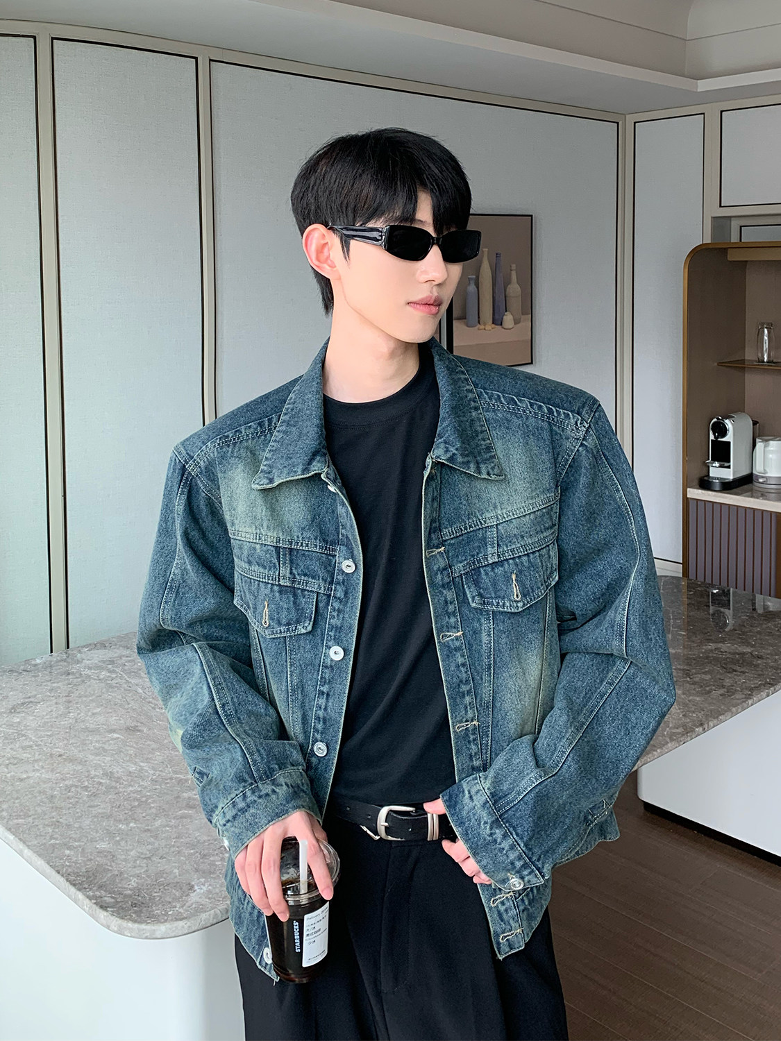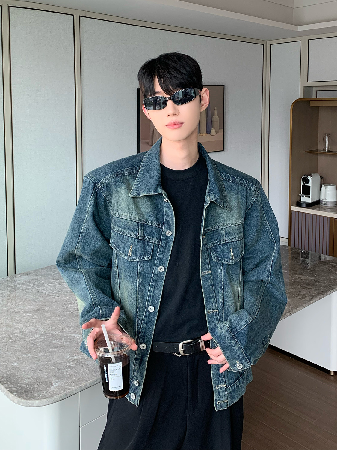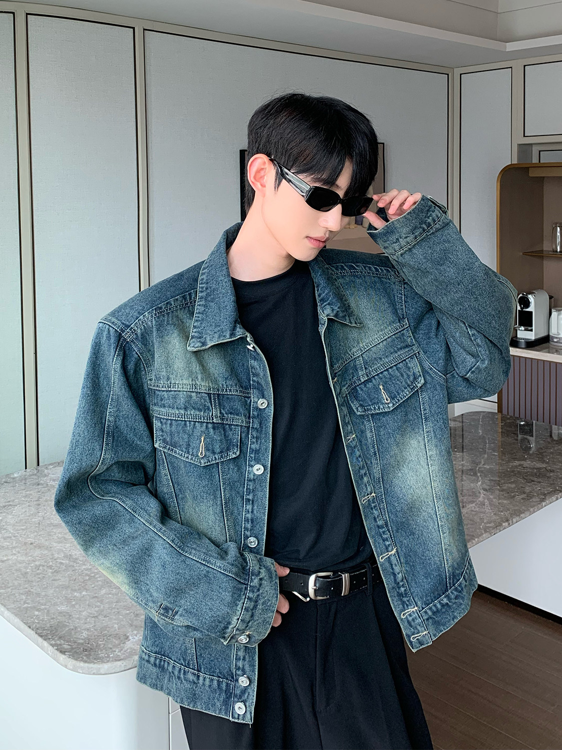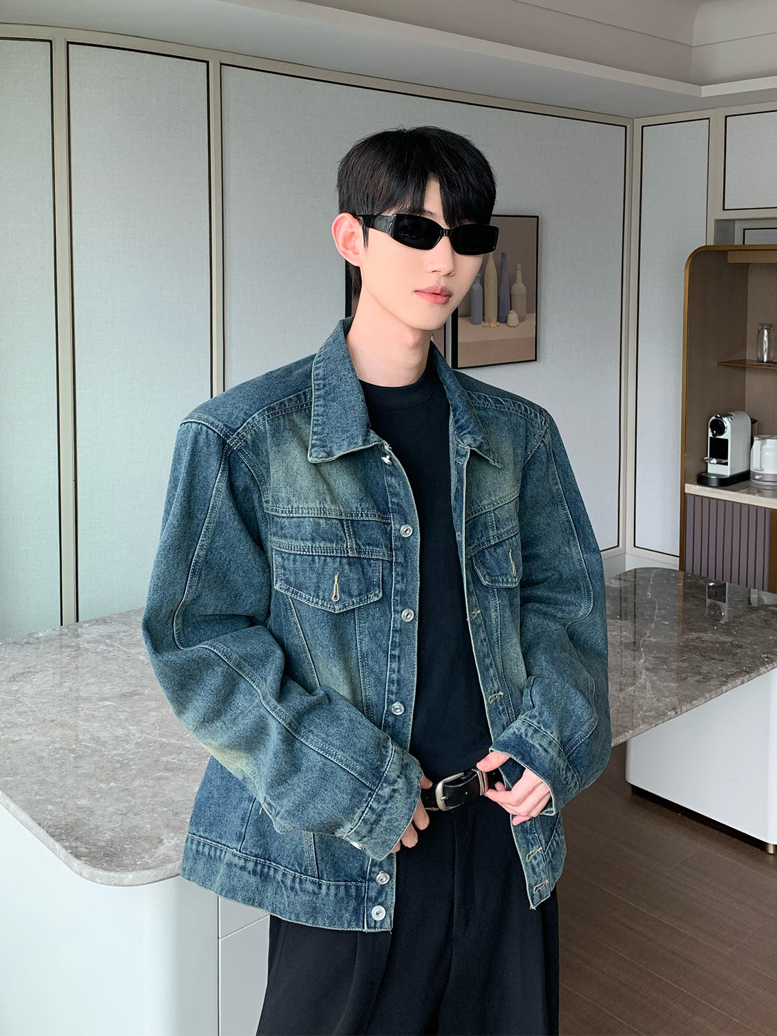 Ретро джинсовая куртка, демисезонные наплечники, кардиган, оверсайз