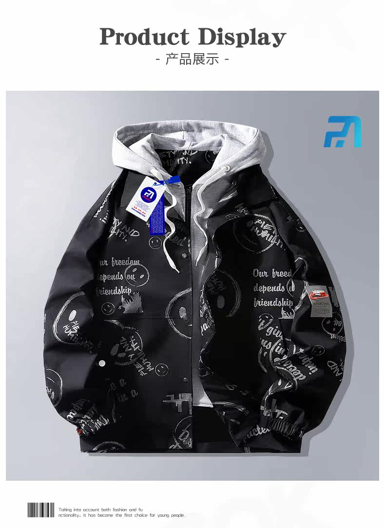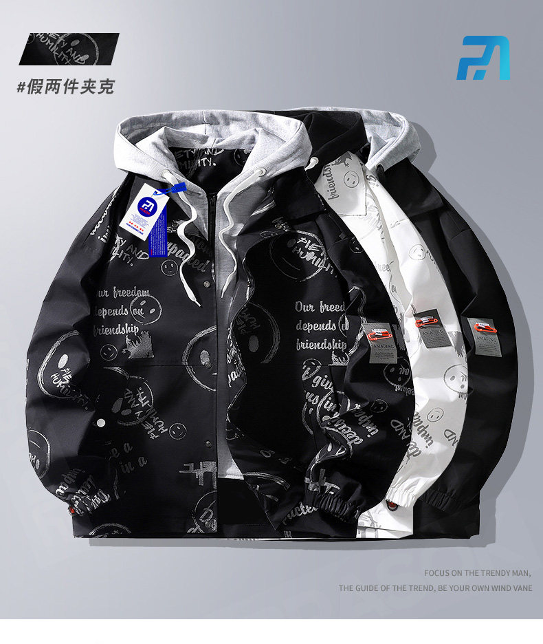 Комплект, мужская куртка, осенняя толстовка с капюшоном, оверсайз, подходит для подростков