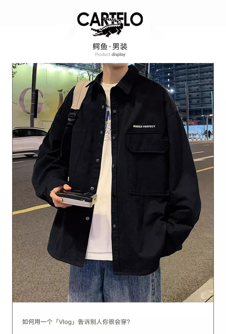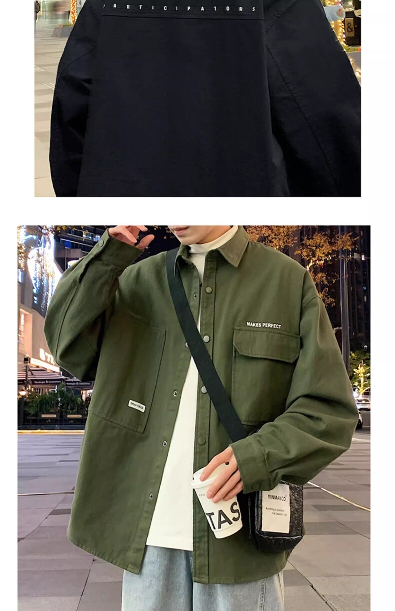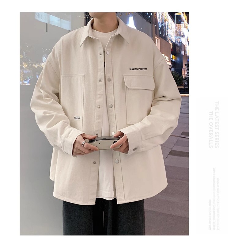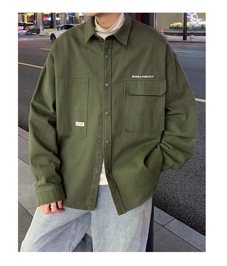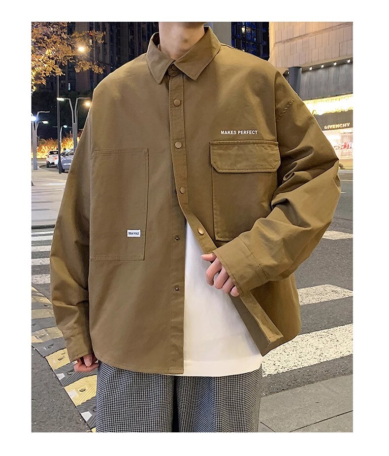 Рубашка, осенняя демисезонная брендовая куртка, свободный крой