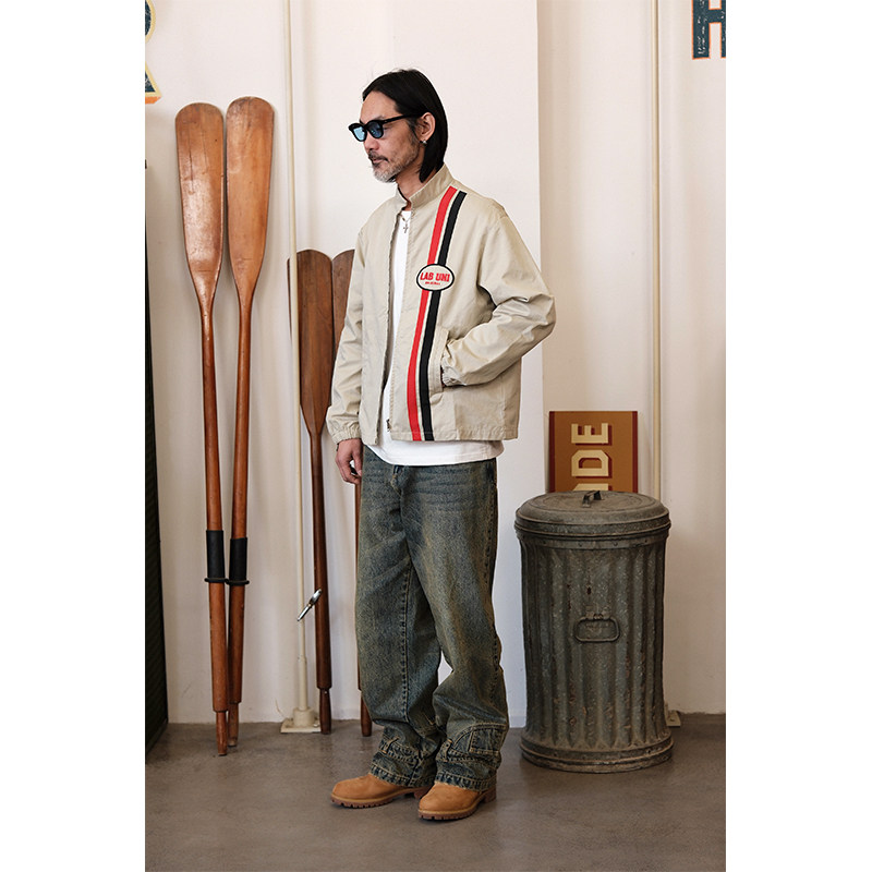 Ретро гоночный автомобиль с молнией, классическая куртка, с вышивкой, крой